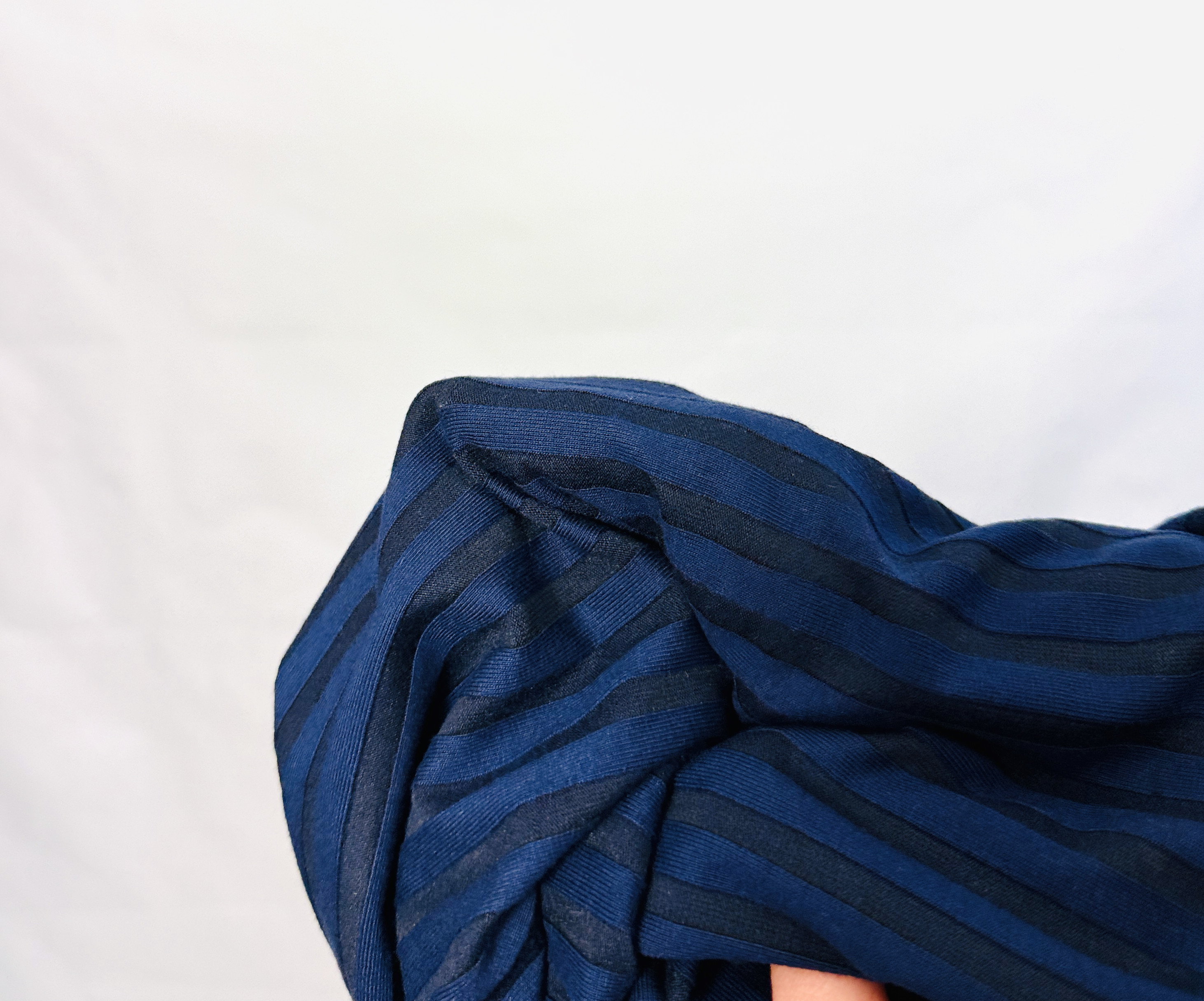 Materiał prezentuje się jako miękko układający się i lekko elastyczny; prążkowana struktura dodaje tkaninie wyraźnej tekstury, która ładnie reaguje na ruchy ciała. Dzięki temu bluzka przylega w sposób komfortowy, modelując sylwetkę, a jednocześnie zachowuje naturalny, gładki wygląd bez sztywnego usztywnienia. Pionowe prążki optycznie wydłużają i wysmuklają linię tułowia, tworząc elegancki efekt wysmuklenia.