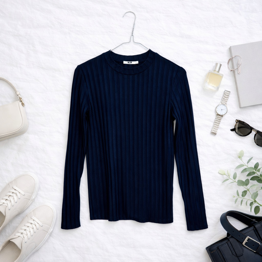 W stylizacjach bluzka jest niezwykle uniwersalna: na co dzień noś ją z ulubionymi jeansami i sneakersami lub z dopasowanymi spodniami oraz loafersami dla miejskiego, eleganckiego looku; do pracy zestaw z cygaretkami i klasycznymi półbutami, tworząc stonowany, profesjonalny zestaw; na wieczór połącz z ołówkową spódnicą lub dopasowanymi spodniami i szpilkami, podkreślając minimalizm subtelną biżuterią. Granat pięknie współgra z kremem, beżem, czernią, bordo oraz z odcieniami camel i butelkowej zieleni, co ułatwia komponowanie zarówno stonowanych, jak i bardziej wyrazistych zestawów.