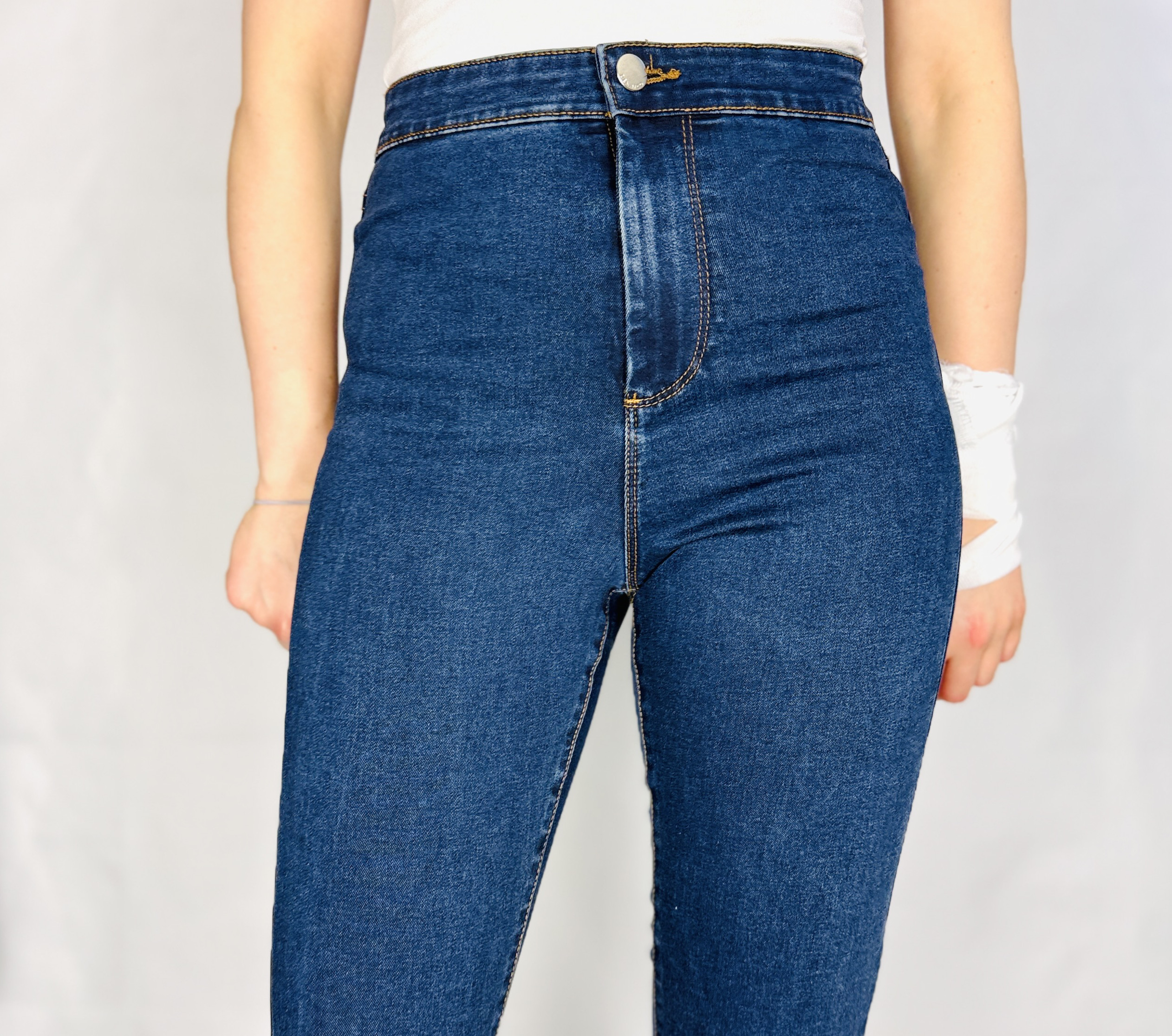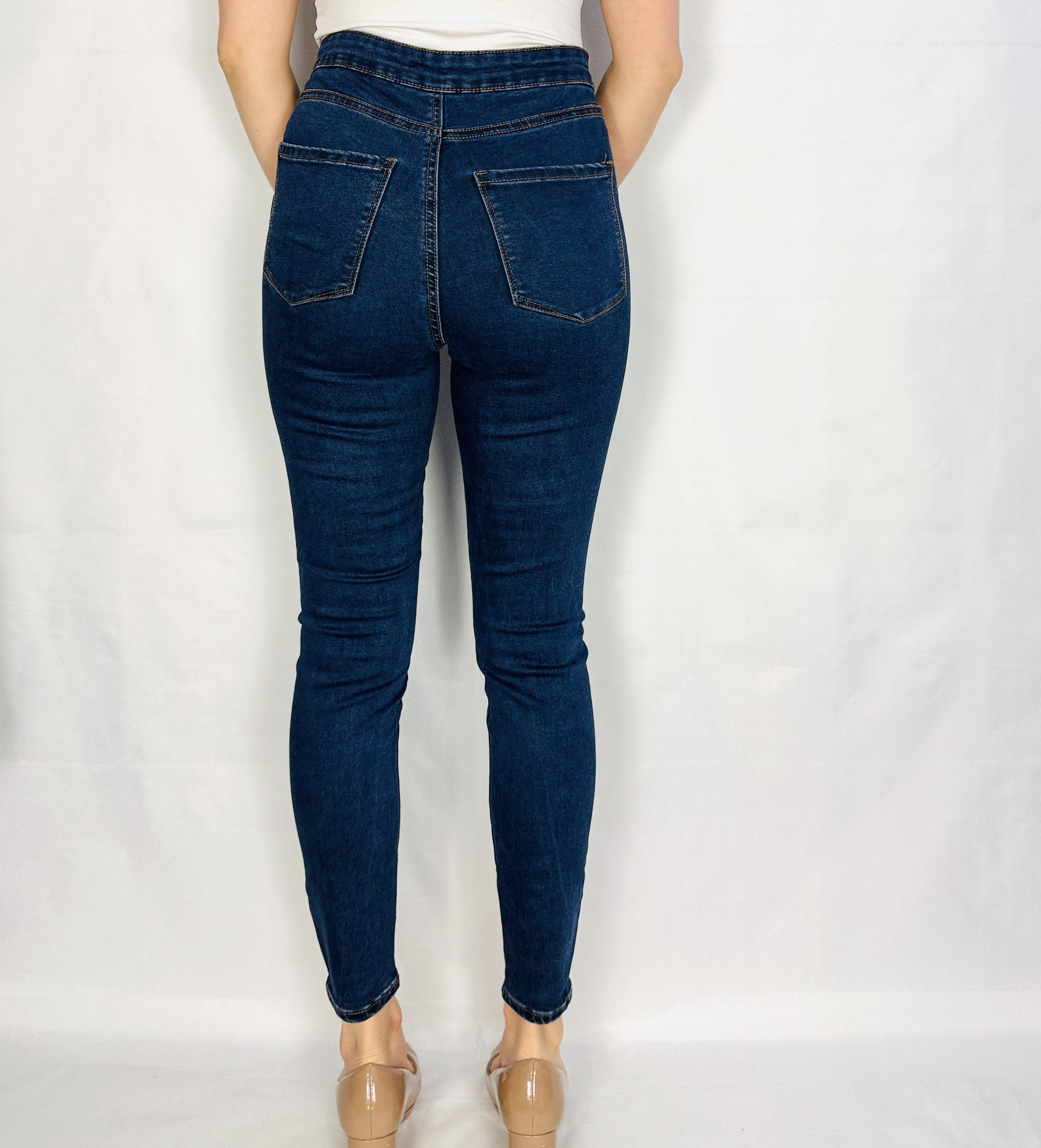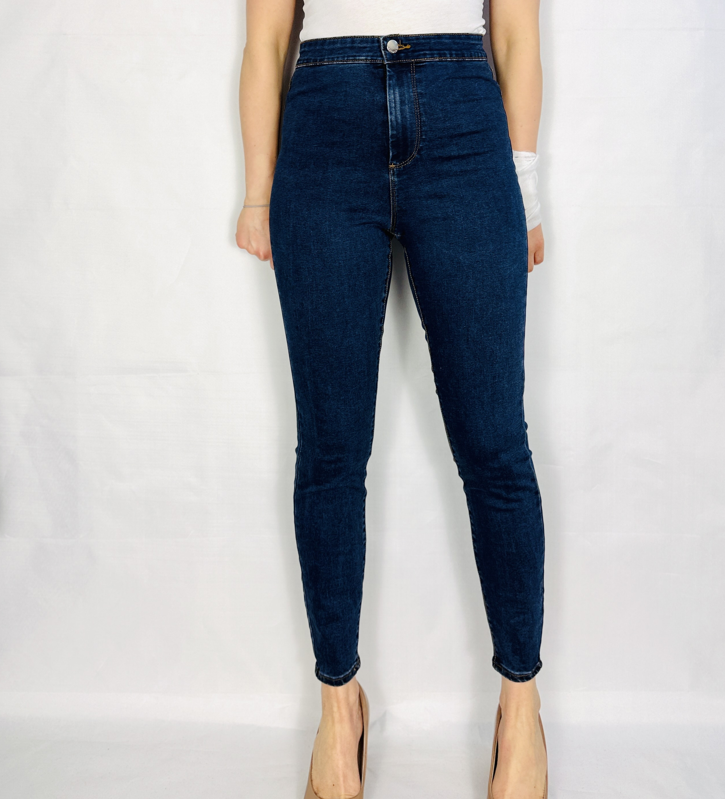 W stylizacjach jeansy sprawdzą się w wielu rolach: na co dzień zestaw je z białym topem i białymi sneakersami lub z miękkim swetrem i płaskimi botkami dla komfortowego, miejskiego looku; do pracy połącz z gładką koszulą i minimalistycznymi półbutami, tworząc nowoczesny biurowy zestaw; na wieczór wybierz dopasowany top i szpilki, by wydobyć kobiecy charakter stylizacji. Granat świetnie łączy się z kremem, beżem, bielą, butelkową zielenią i bordo oraz z klasyczną czernią, dzięki czemu te jeansy stanowią niezwykle elastyczną bazę do tworzenia zarówno stonowanych, jak i bardziej wyrazistych stylizacji na co dzień, do pracy, na spotkanie i na wieczór.