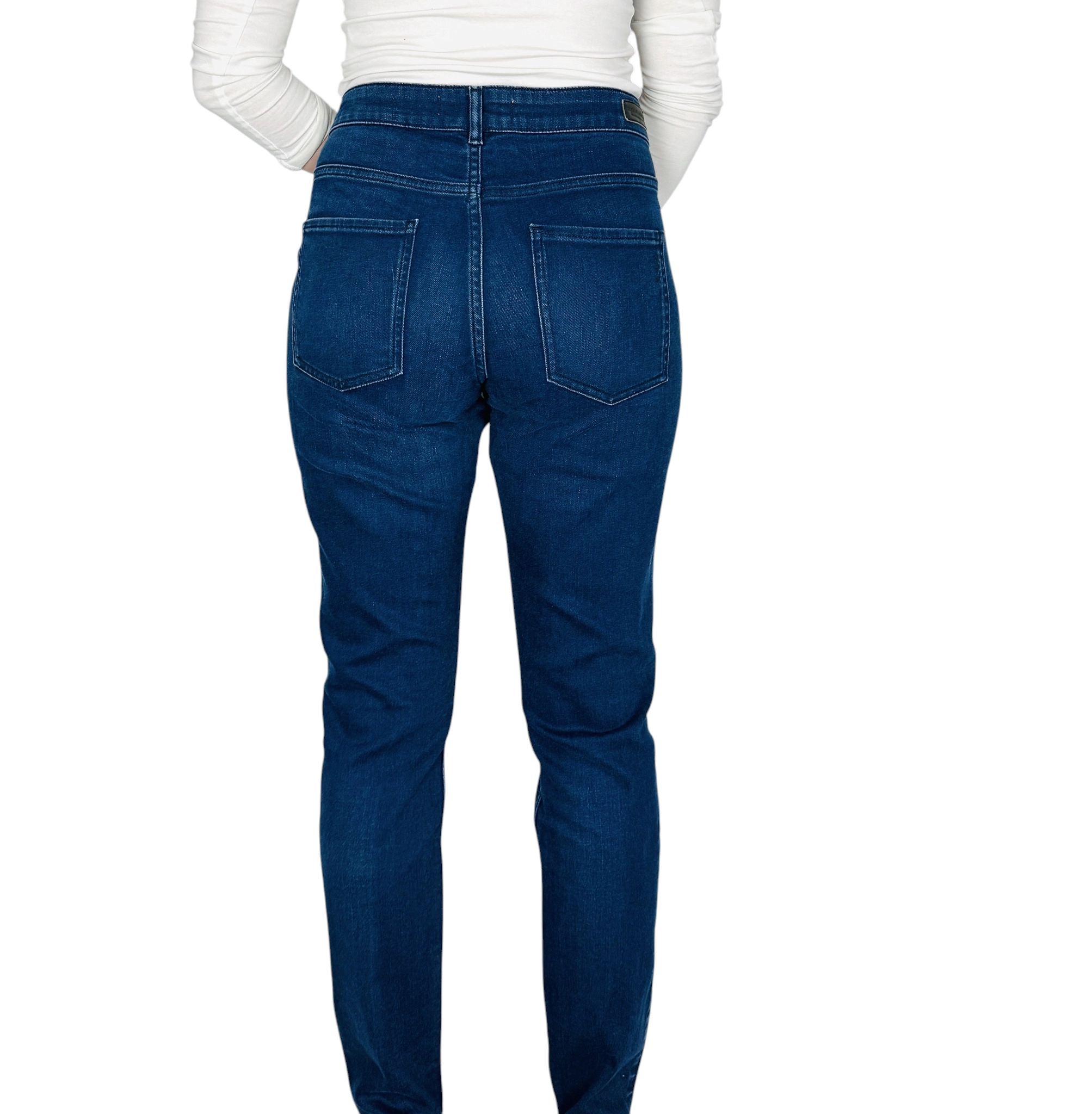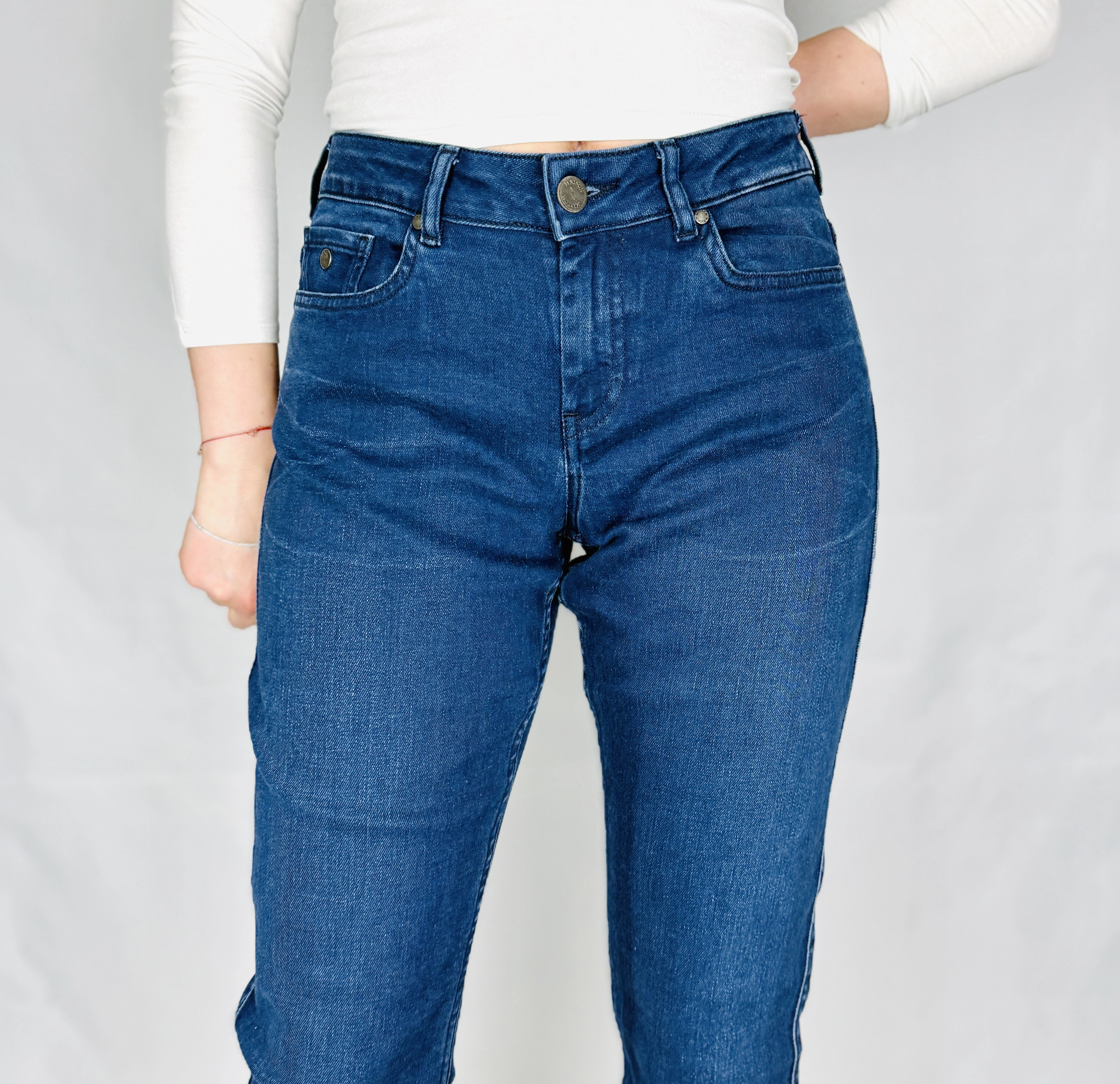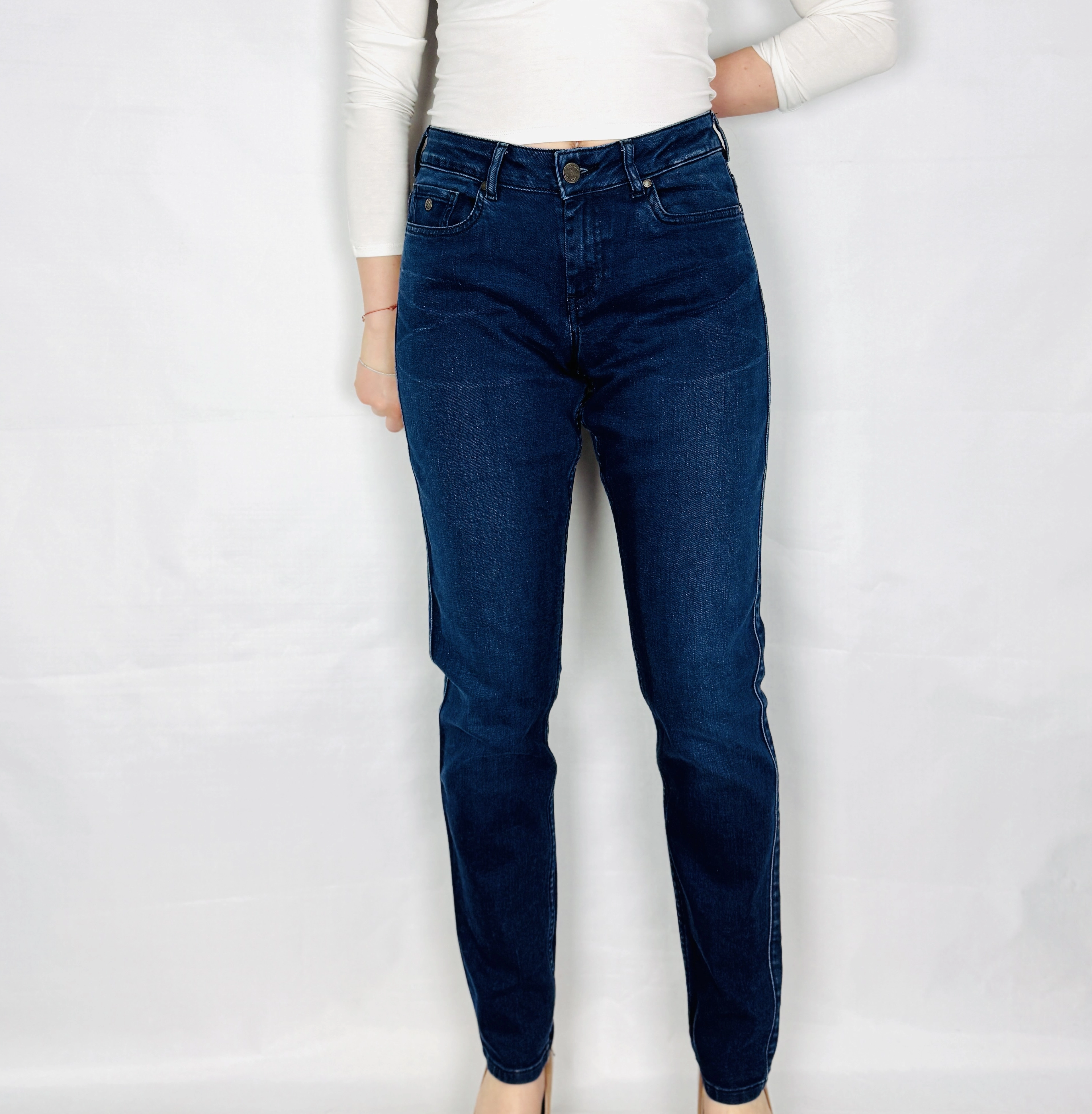 Te jeansy to kwintesencja ponadczasowego stylu i radosnej wygody, która nastrojowo wprowadzi Cię w świat codziennej elegancji w najlepszym wydaniu. Głęboki, nasycony odcień granatowego denimu został subtelnie ożywiony delikatnie jaśniejszymi przetarciami, co nadaje spodniom unikalnego, szlachetnego charakteru. To ubiór, który emanuje spokojną pewnością siebie i radosnym autentyzmem, stając się niezawodnym fundamentem dla wielu kobiecych stylizacji. Jeansy te są nastrojową interpretacją klasycznego denimu, oferując wyrafinowany wygląd, który nienachalnie podkreśla kobiecą sylwetkę, zapewniając nienaganny styl w każdej radosnej chwili Twojego dnia.