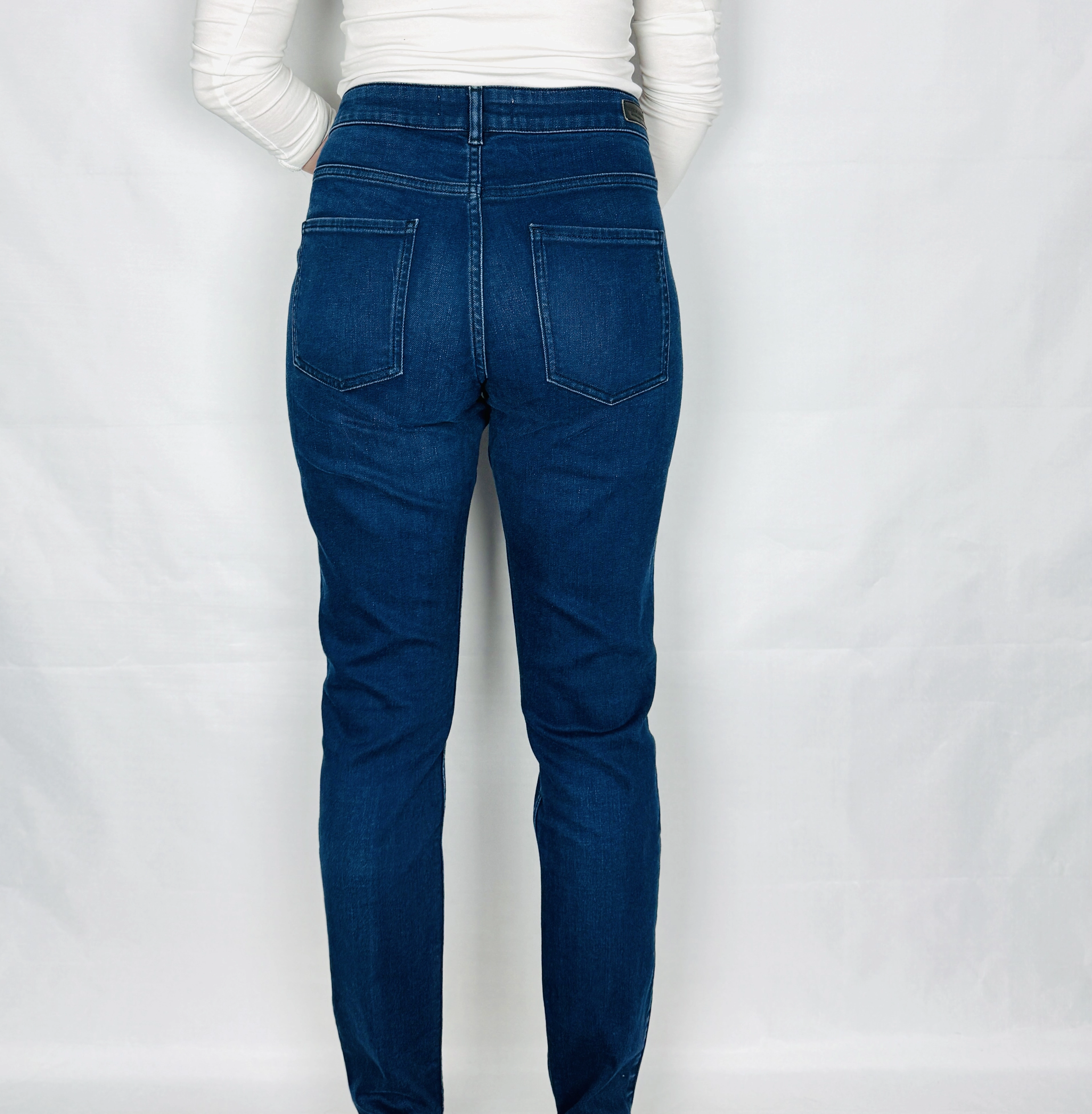 Materiał, z którego wykonano ten model, to solidny, nieznacznie grubszy denim o nastrojowej, gładszej strukturze, który jest jednocześnie wyjątkowo miękki i przyjemny dla skóry. Tkanina charakteryzuje się nastrojową elastycznością, dzięki czemu spodnie nienagannie pracują przy każdym ruchu, zachowując przy tym swoją pierwotną formę przez cały radosny i intensywny dzień. Matowe wykończenie granatu ze szlachetnymi przejściami tonalnymi świadczy o wysokiej jakości wykonania i nastrojowej dbałości o detal. To ubiór, który otula ciało w radosny sposób, dbając o Twój nastrojowy komfort i poczucie swobody niezależnie od radosnej okazji.