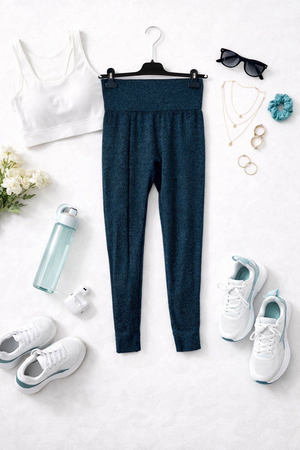 Te legginsy emanują spokojną, nowoczesną elegancją — głęboki granat w połączeniu z subtelną melanżową fakturą tworzy wyrafinowany, a zarazem swobodny efekt. Projekt ma w sobie kobiecą prostotę i funkcjonalność; to model, który łączy sportowy charakter z estetyką, dzięki czemu pasuje zarówno do energetycznych treningów, jak i do codziennych, miejskich stylizacji. Ich minimalistyczny wygląd sprawia, że stają się bazą, na której można budować różne nastroje — od zdecydowanego, aktywnego stylu po stonowaną elegancję.