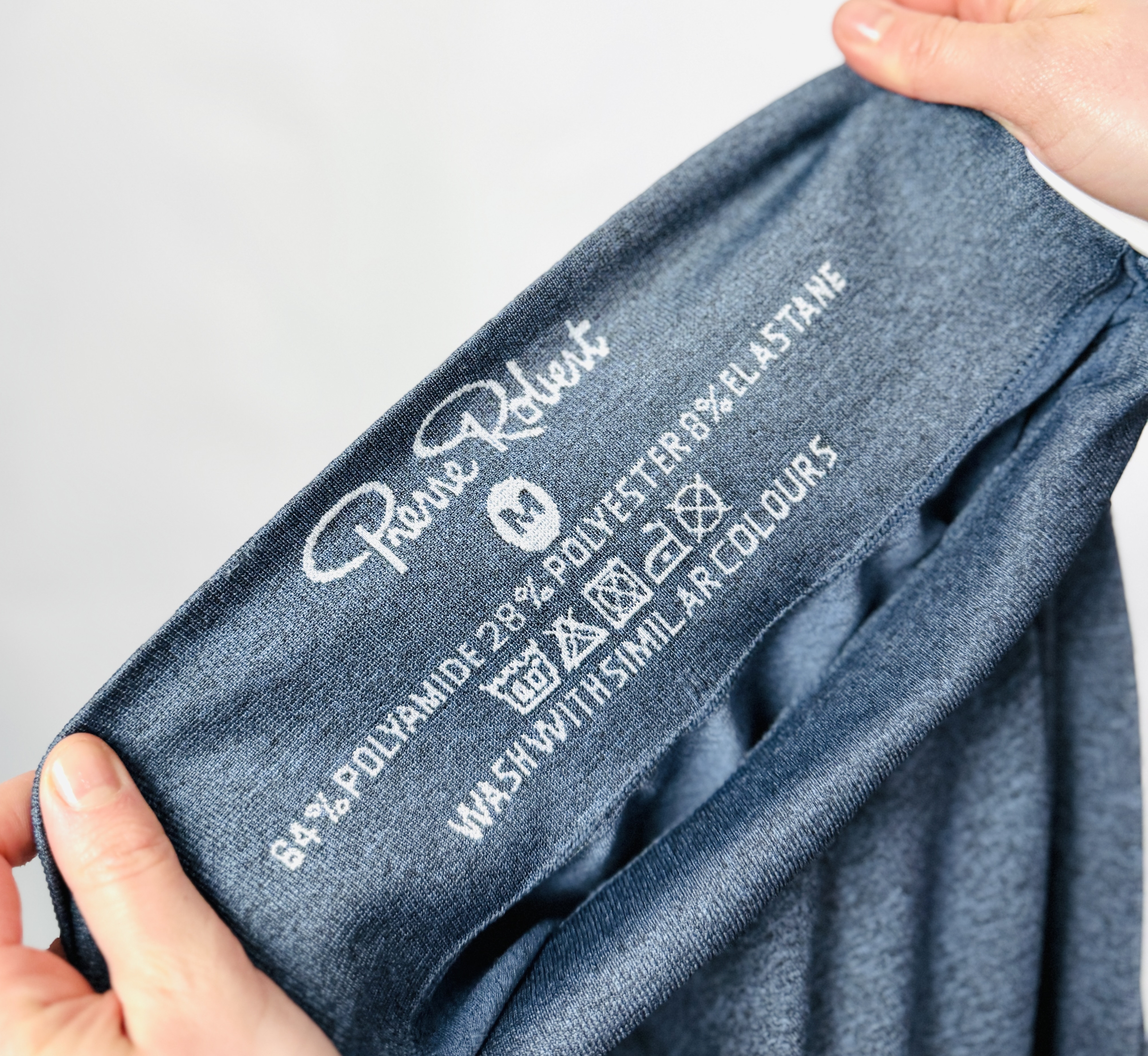 Materiał prezentuje się jako elastyczny i gładko układający się, o lekko strukturalnej powierzchni; tkanina wydaje się sprężysta, dająca uczucie podtrzymania i komfortu ruchu. Dzięki zastosowanej strukturze legginsy płynnie dopasowują się do sylwetki, jednocześnie zachowując kształt i porządne wykończenie. Tekstura działa także kamuflująco — drobne różnice w splocie optycznie wygładzają powierzchnię, co sprzyja estetycznemu i uporządkowanemu wyglądowi podczas aktywności.