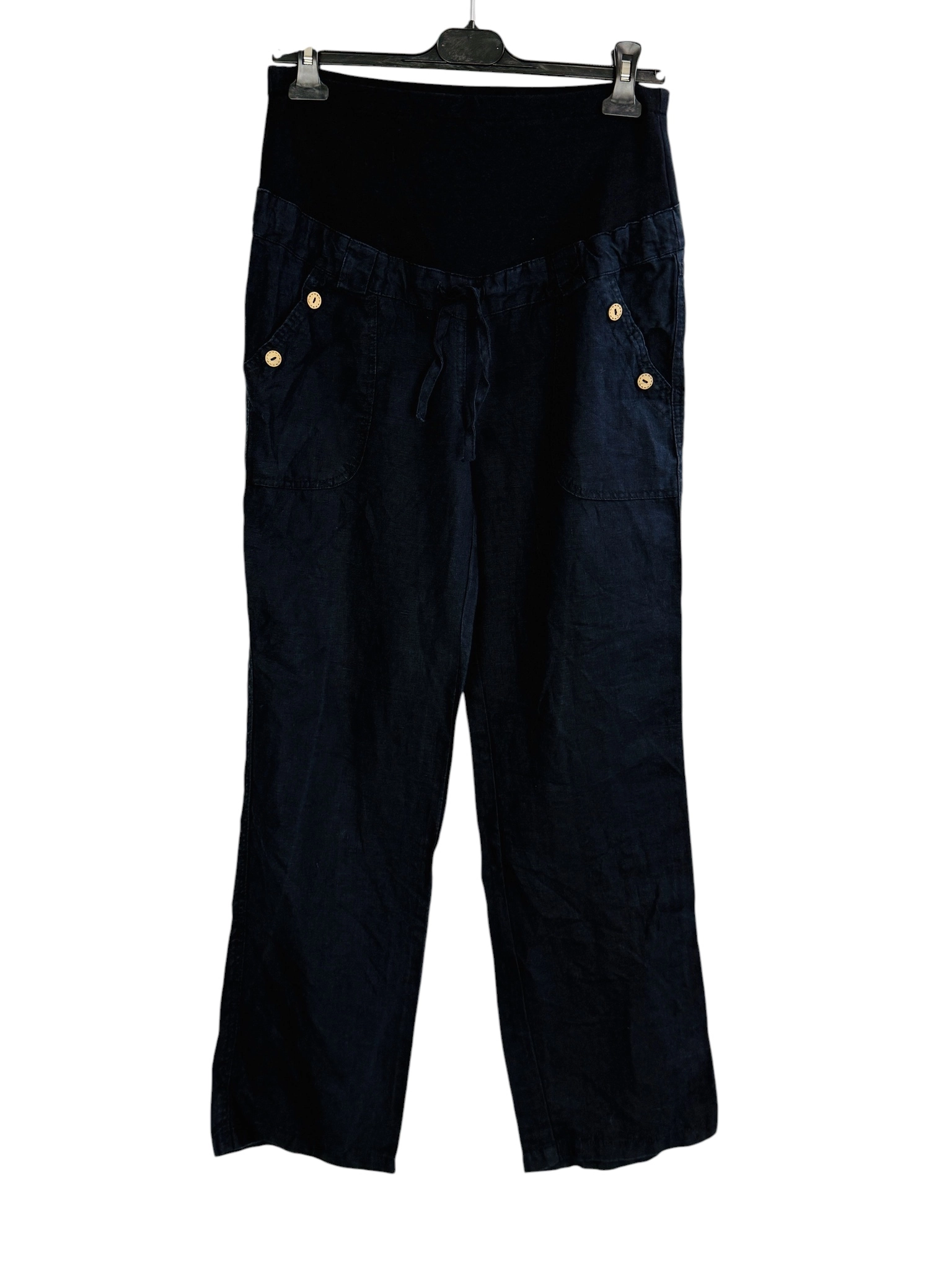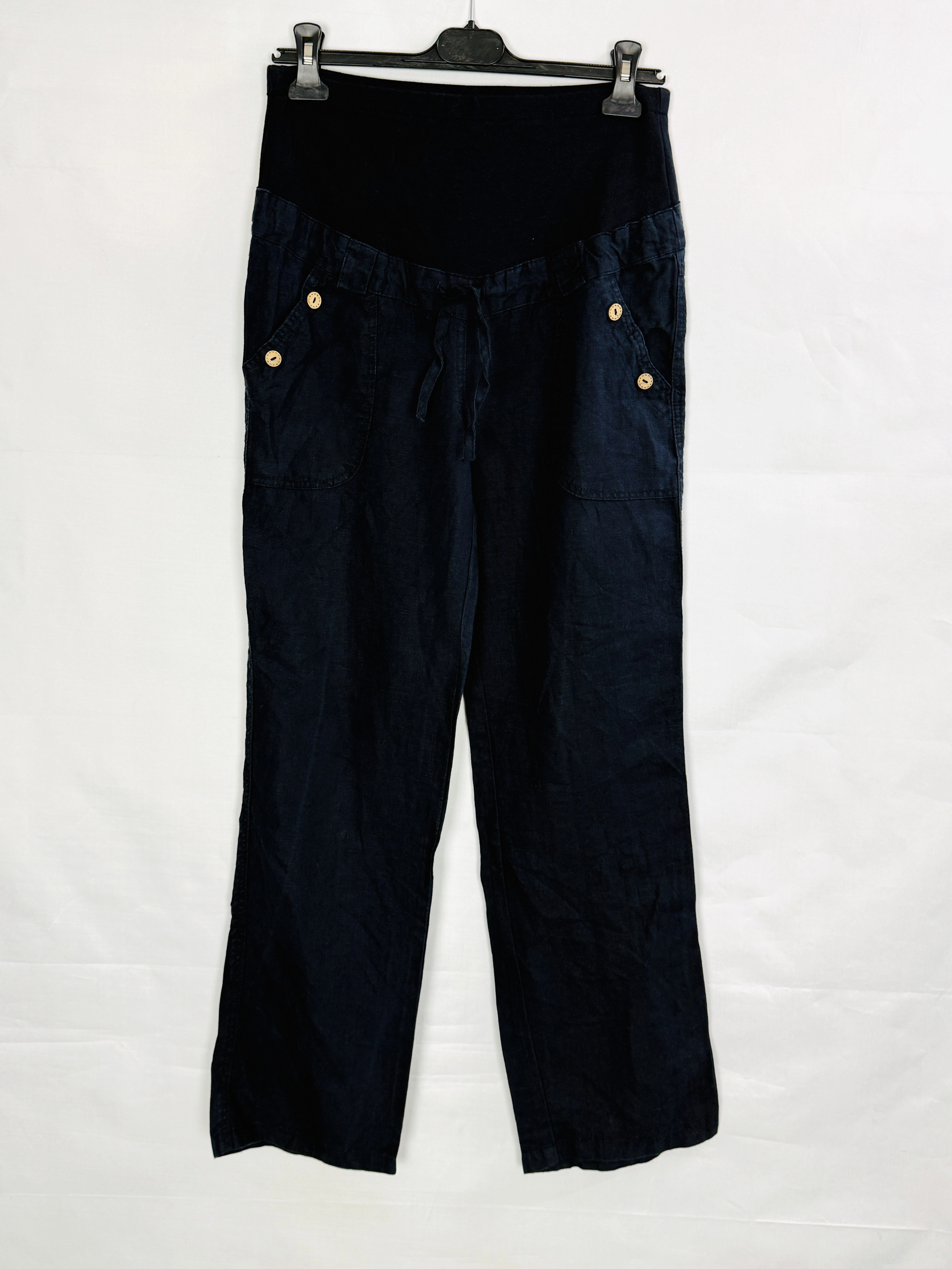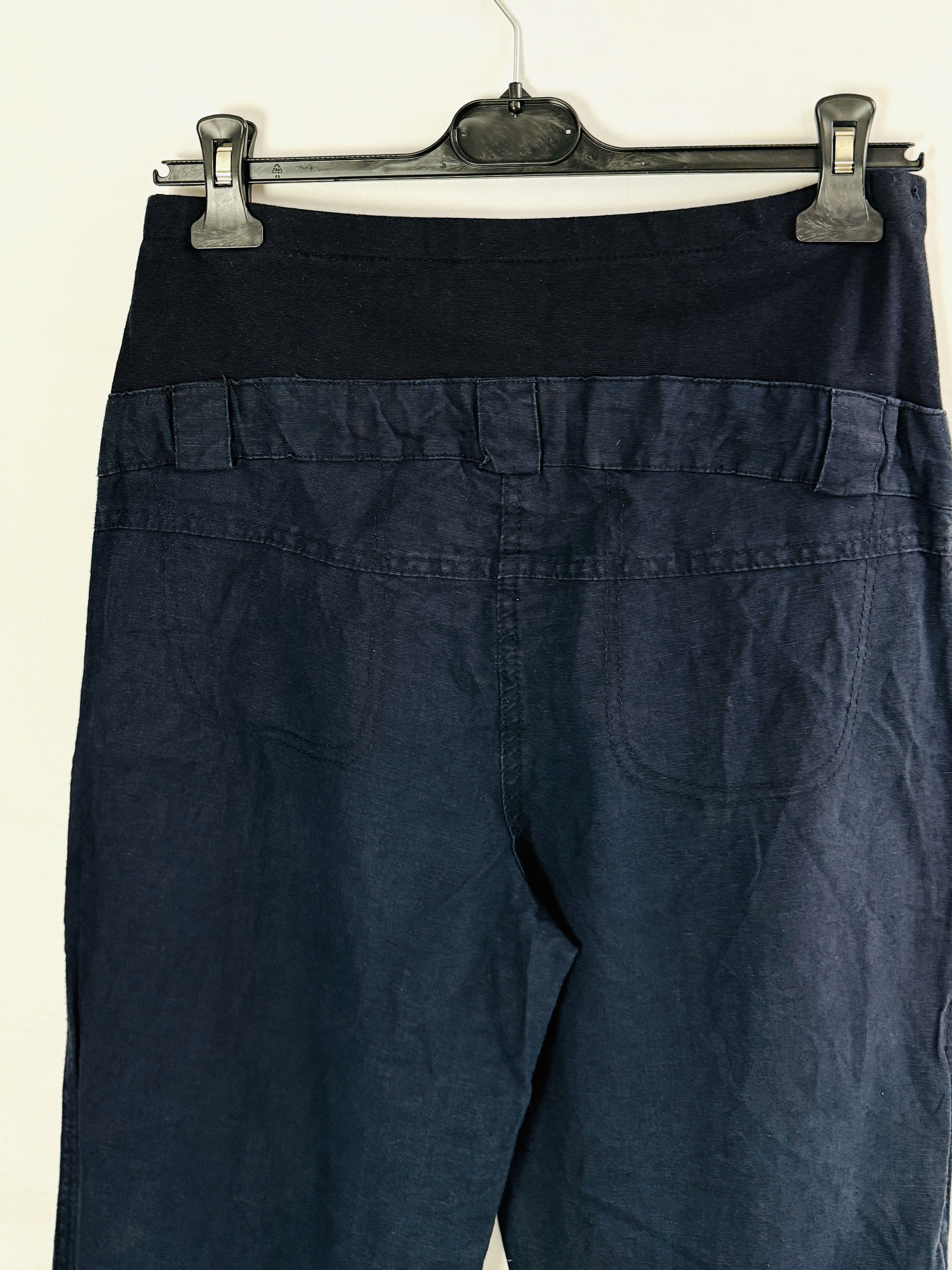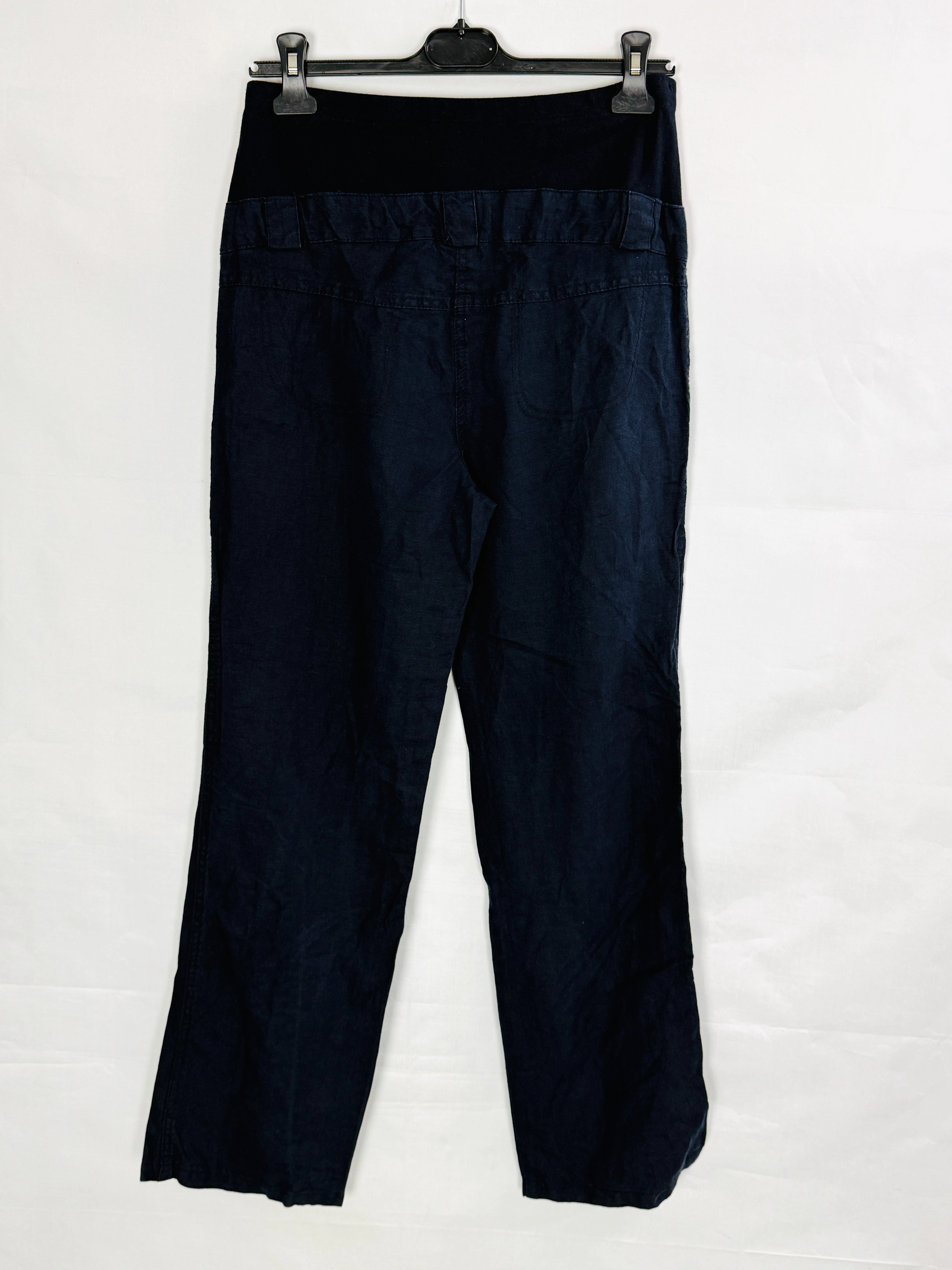 Granatowe lniane spodnie ciążowe z szeroką gumką L 40