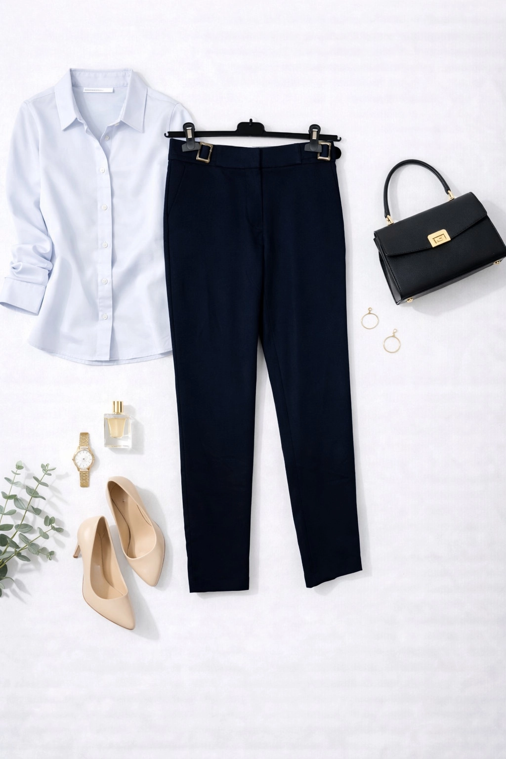 Granatowe spodnie można stylizować na wiele sposobów. W wersji do pracy świetnie komponują się z koszulą i marynarką, tworząc elegancki i profesjonalny zestaw. Na co dzień dobrze wyglądają z prostym topem lub lekkim swetrem oraz wygodnym obuwiem. Na spotkanie lub wieczorne wyjście można zestawić je z dopasowaną bluzką i butami na obcasie, uzyskując stylowy efekt. Granat pięknie łączy się z bielą, beżem, szarością oraz delikatnymi pastelami, co pozwala tworzyć spójne i eleganckie stylizacje.