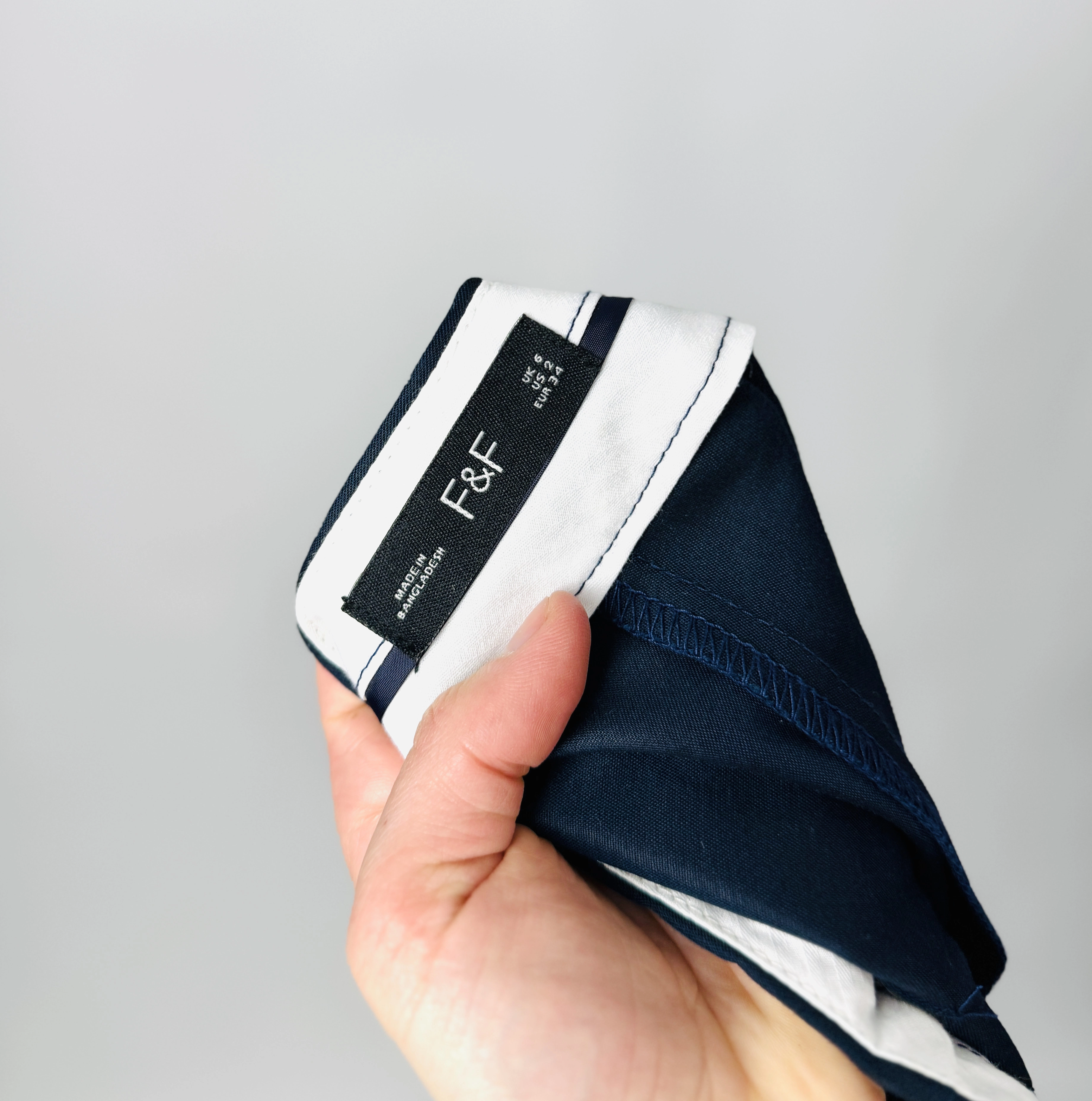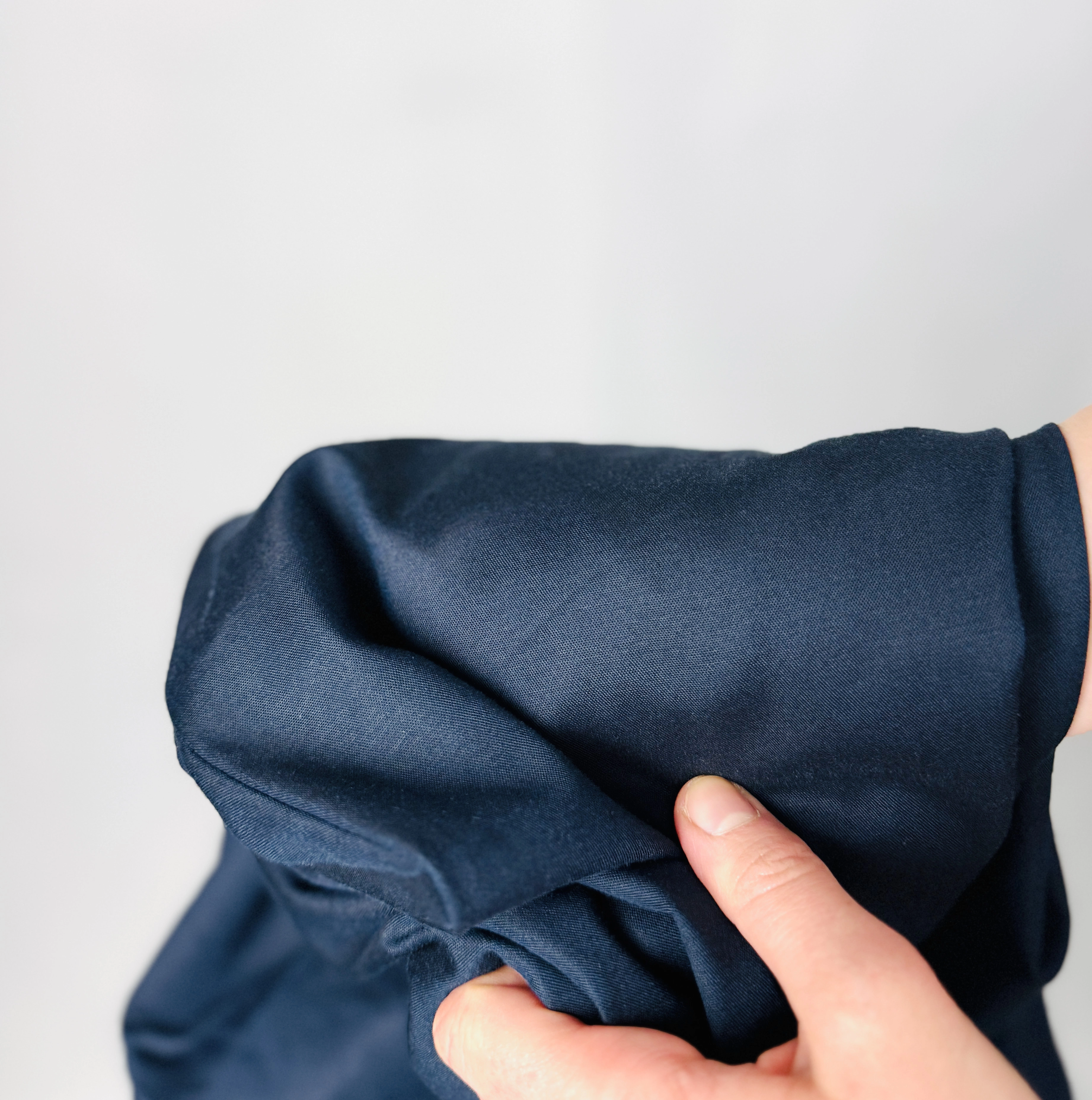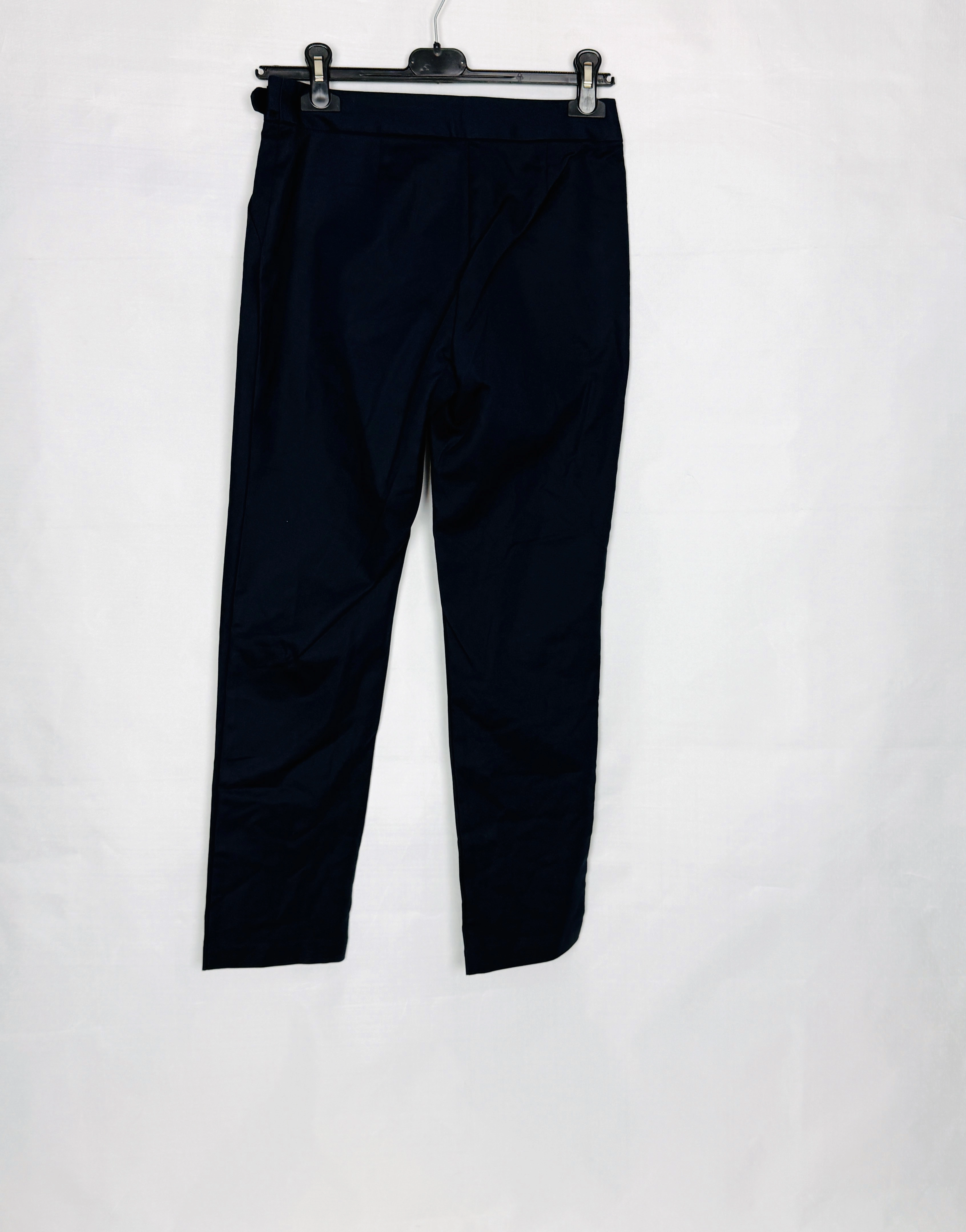 Te granatowe spodnie to połączenie klasycznej elegancji z nowoczesnym, subtelnym detalem, który przyciąga uwagę. Głęboki odcień granatu nadaje całości wyrafinowanego charakteru, jednocześnie pozostając niezwykle uniwersalnym i łatwym do stylizowania. To model, który sprawdzi się zarówno w codziennych, jak i bardziej formalnych zestawach, dodając im szyku i lekkości.