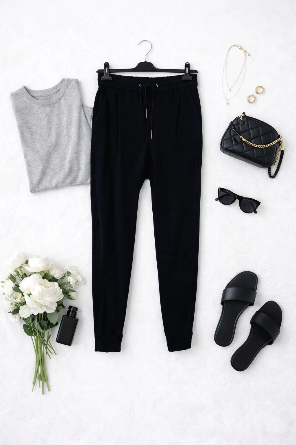 Propozycje stylizacji są bardzo szerokie: w codziennym wydaniu zestaw z prostym topem lub białą koszulką i sneakersami stworzy niezawodny, komfortowy look, do pracy można łączyć spodnie z gładką bluzką i lekką marynarką dla bardziej dopracowanego efektu, natomiast wieczorem połączone z eleganckim topem i szpilkami zyskają bardziej wyjściowy charakter. Granat świetnie komponuje się z bielą, kremem i beżem, ale również ze szaro i akcentami w kolorze bordo czy butelkowej zieleni, co daje dużo możliwości tworzenia stylowych, kobiecych zestawów na różne okazje.