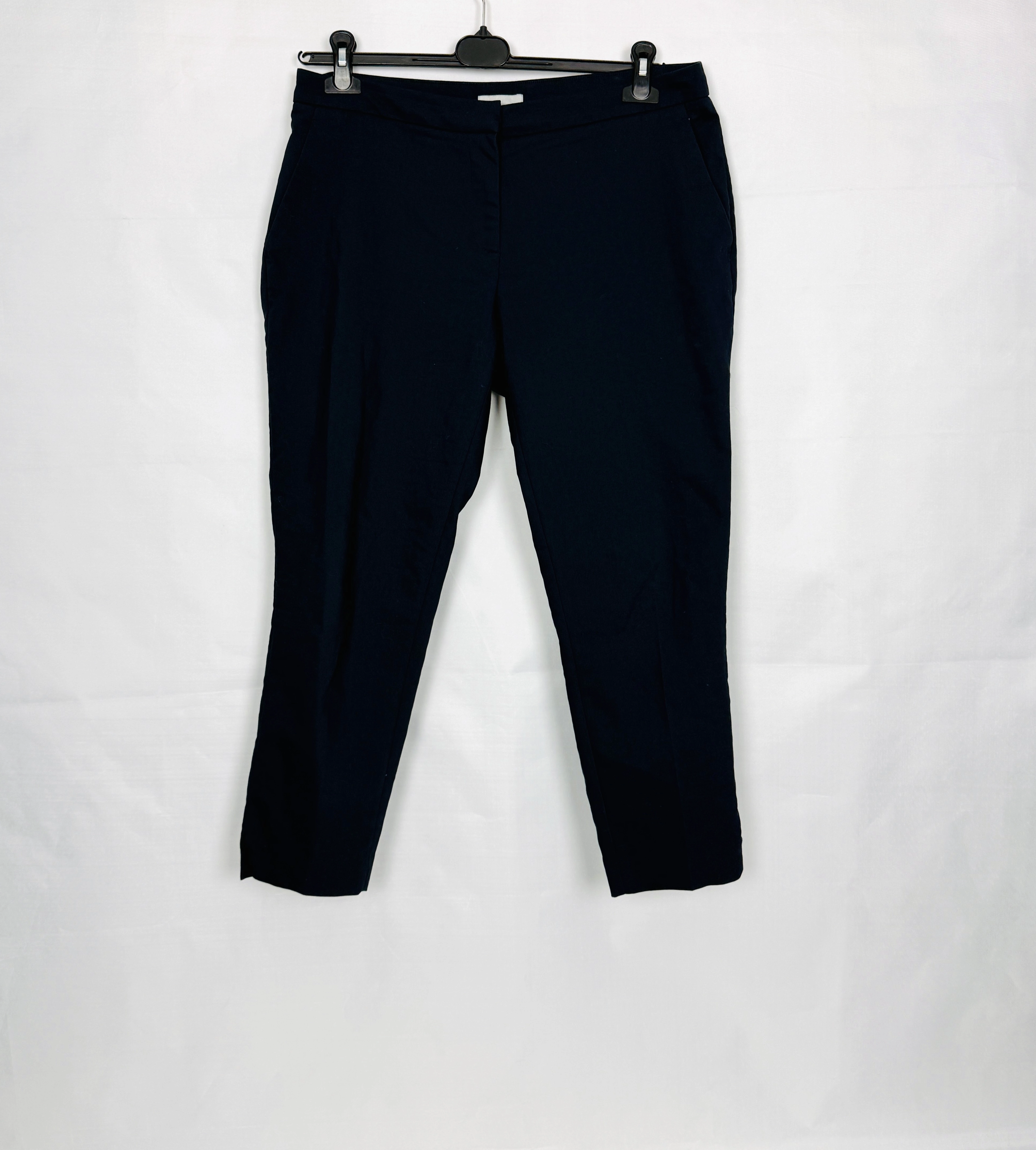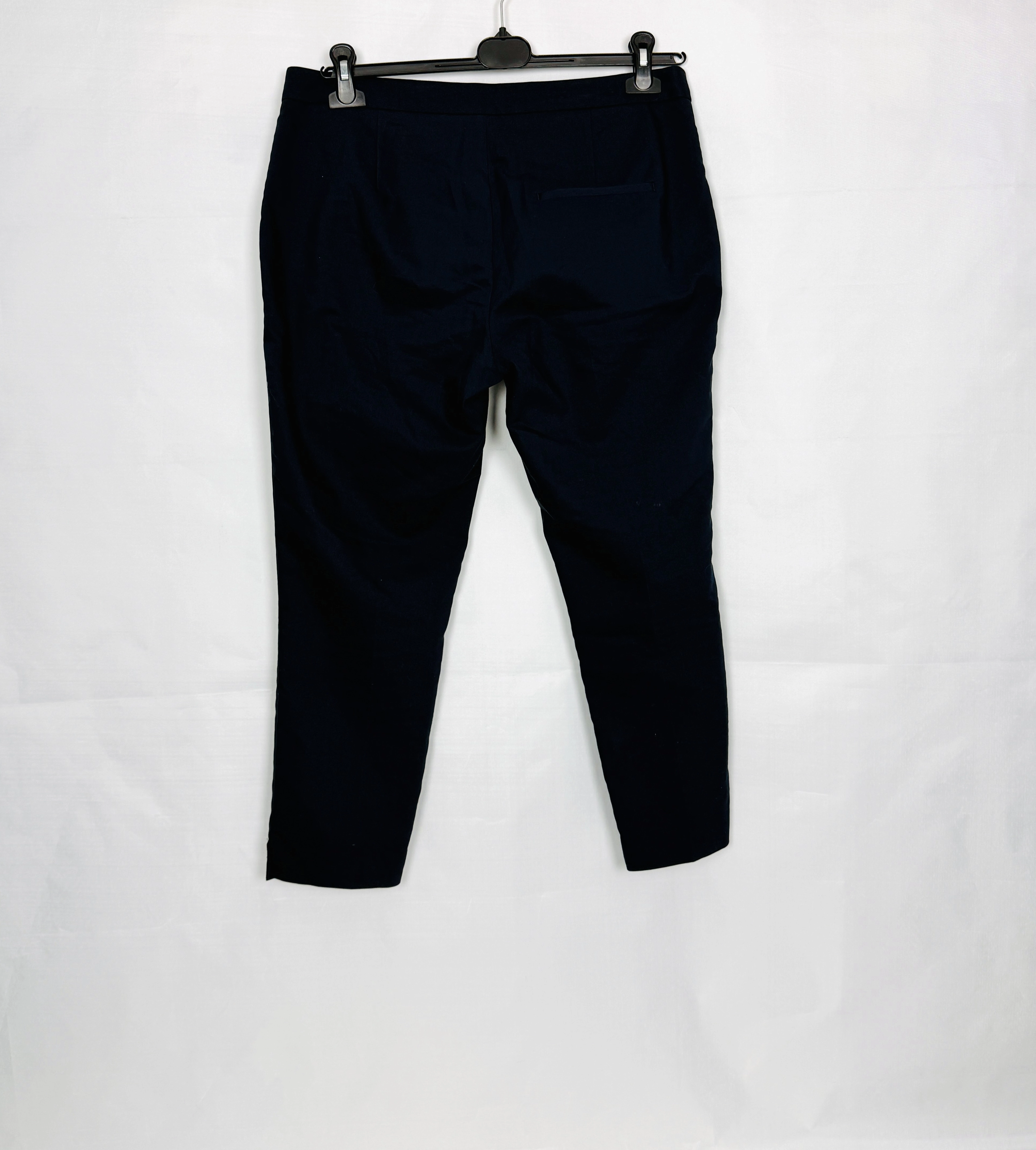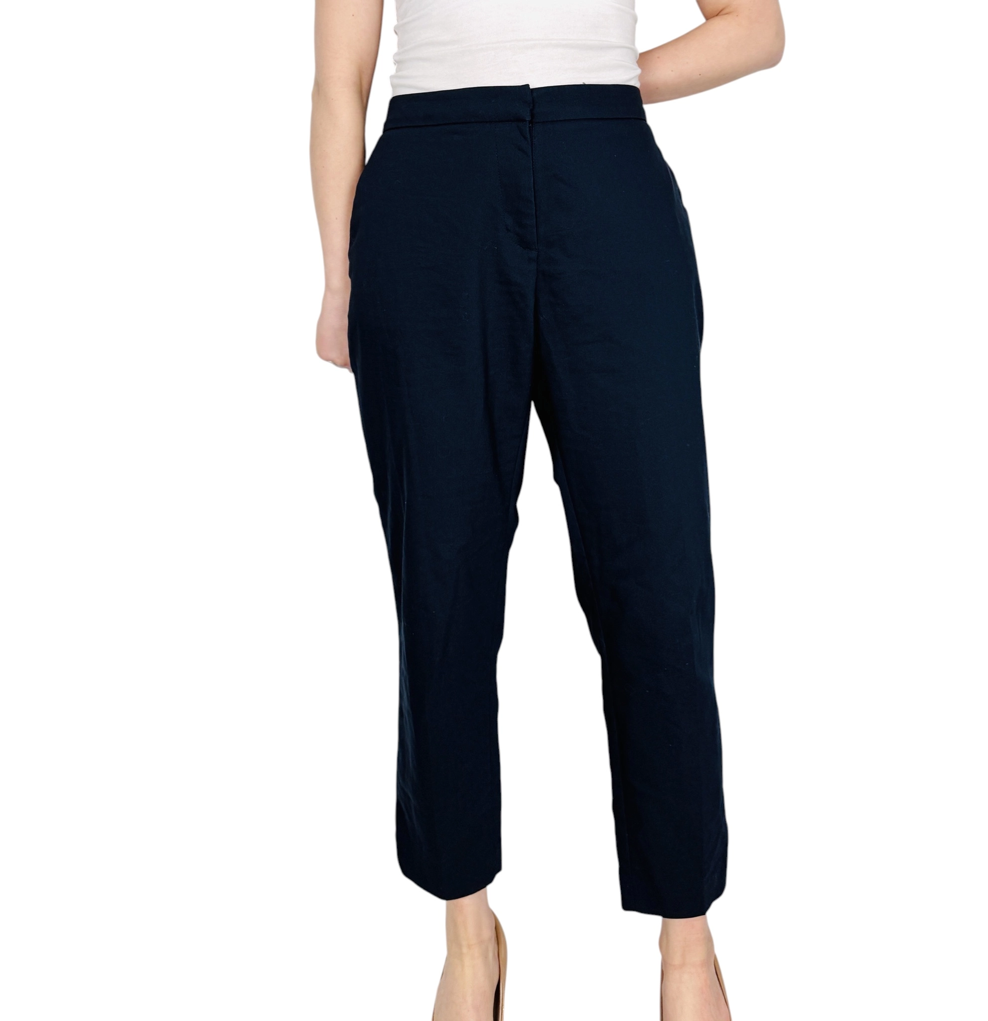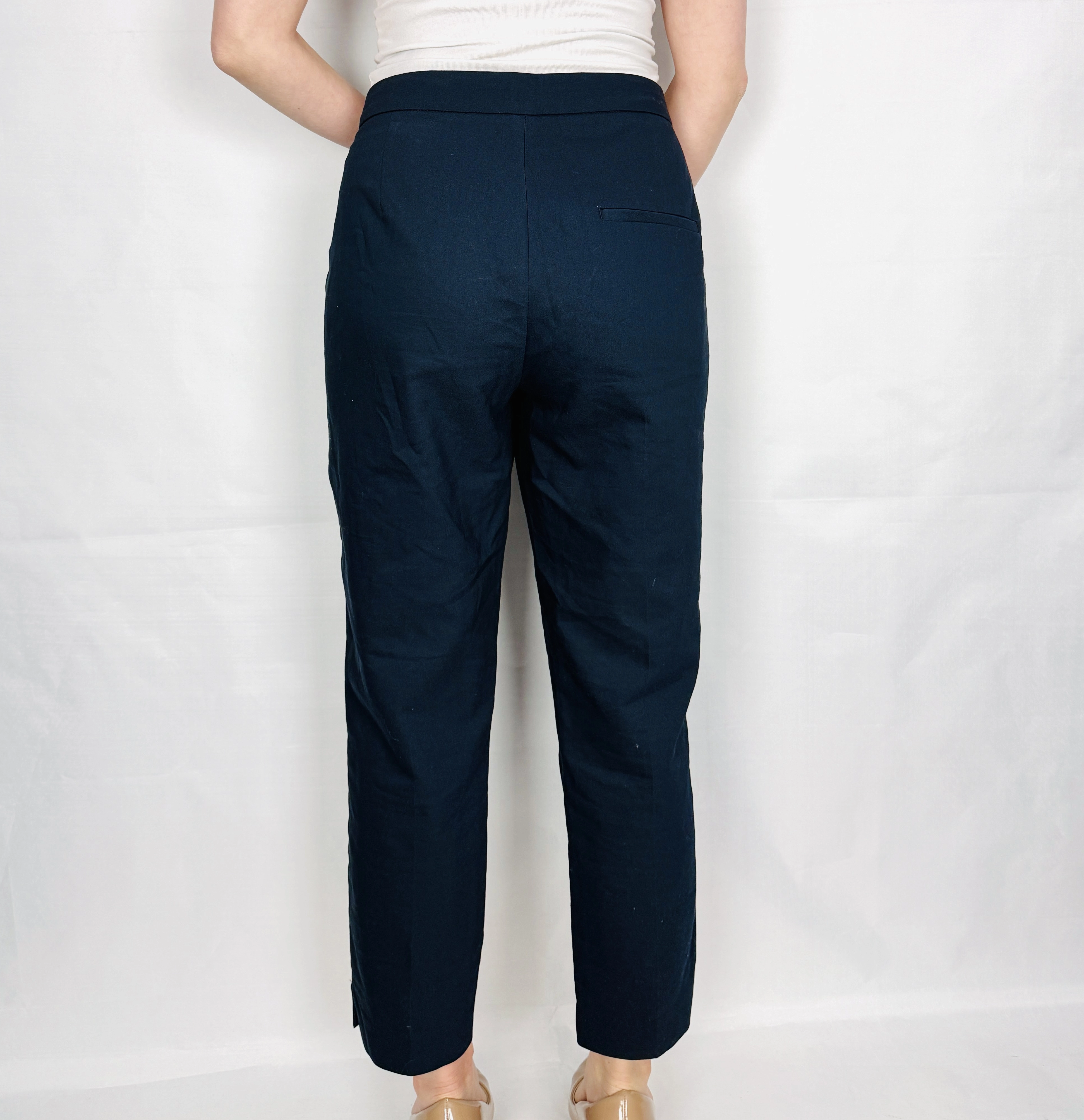 To model o spokojnym, eleganckim charakterze — głęboki granat nadaje im klasycznej wyrafinowanej nuty, a czysta, uporządkowana forma sprawia, że wyglądają zarówno kobieco, jak i nowocześnie. Spodnie emanują stonowaną pewnością siebie; są jednocześnie subtelne i wyraziste, gotowe stać się bazą wielu stylizacji — od stonowanego biurowego szyku po bardziej swobodne, miejskie zestawy. Ich prostota ma w sobie kobiecą łagodność, która łatwo łączy się z różnymi fakturami i kolorami.
