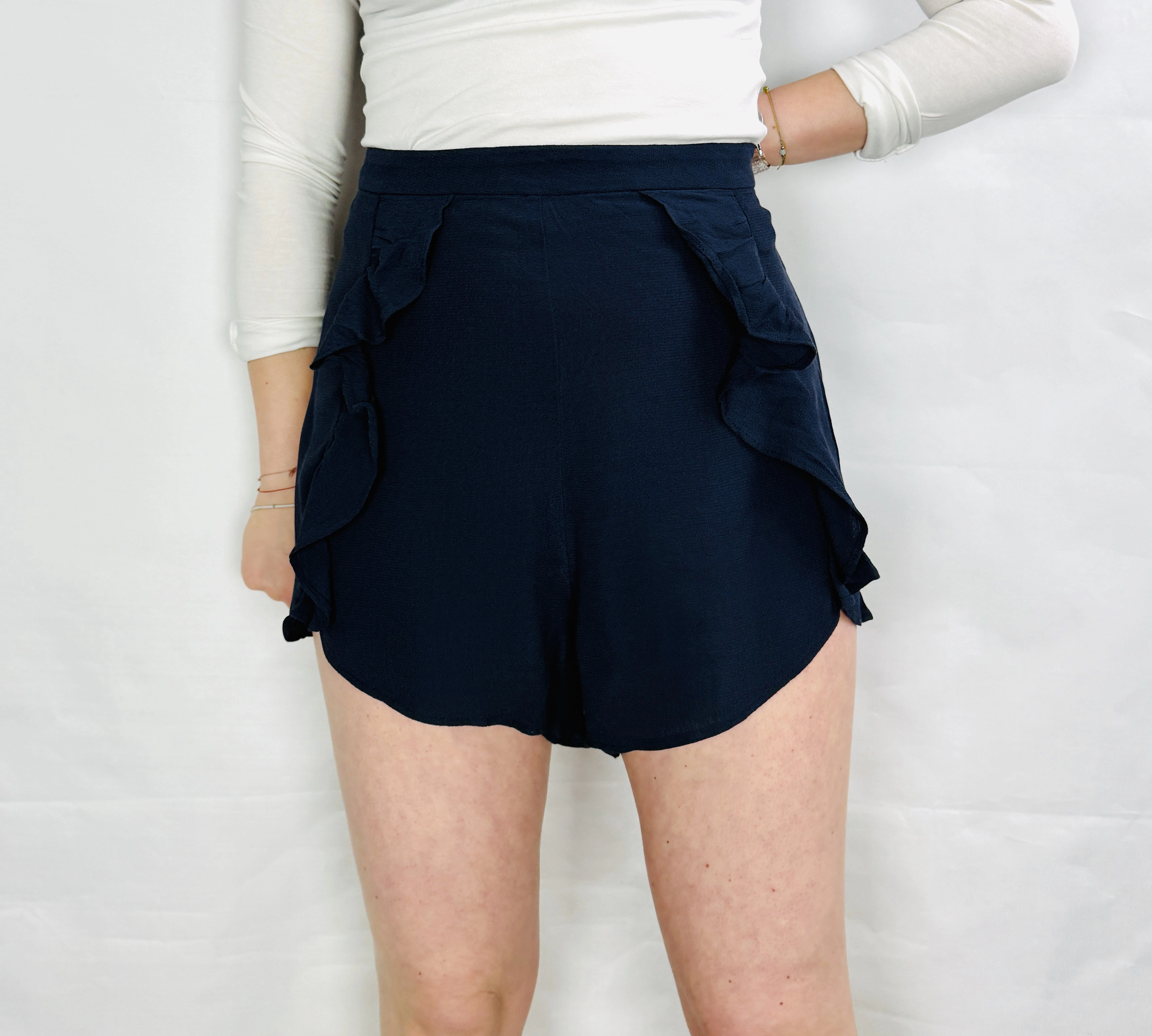 Granatowe szorty z falbanami po bokach XXL 44