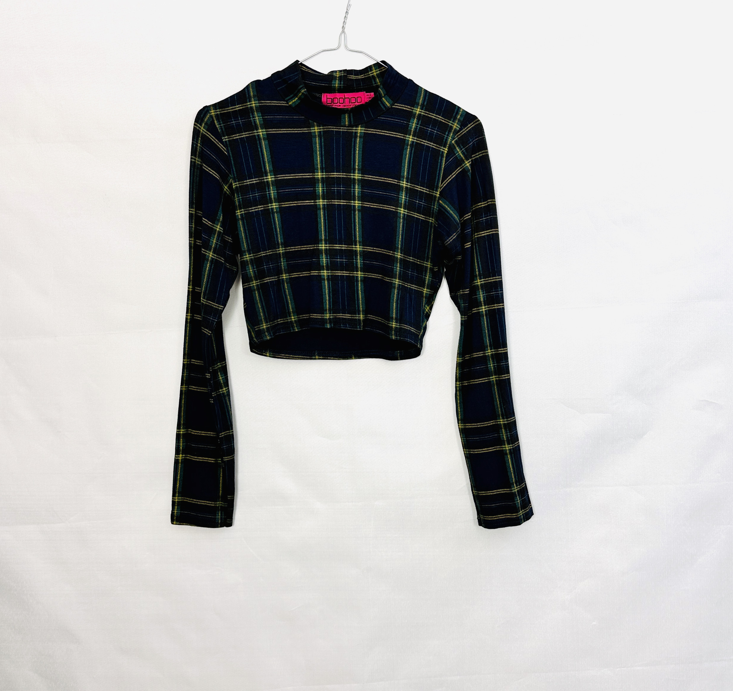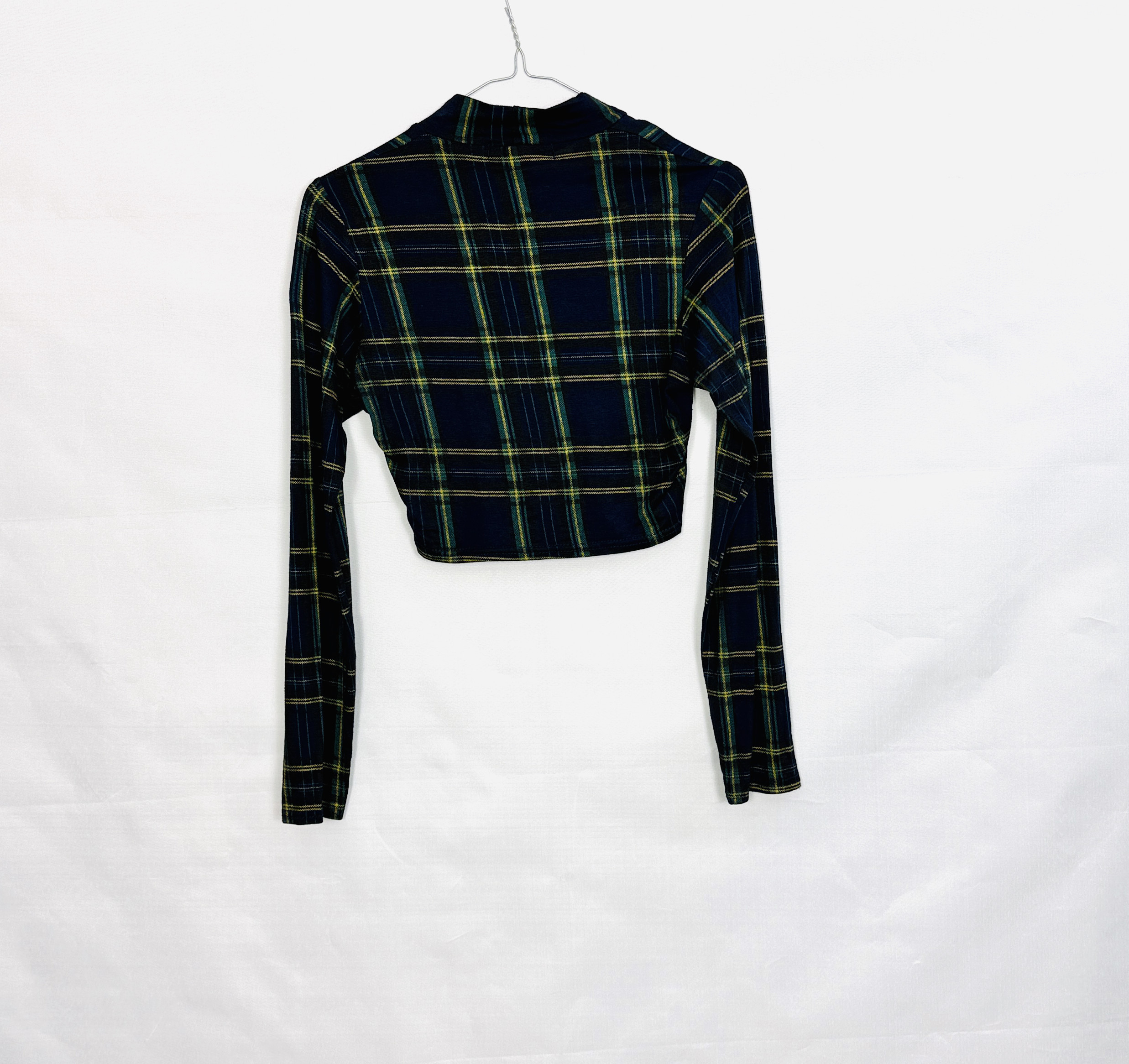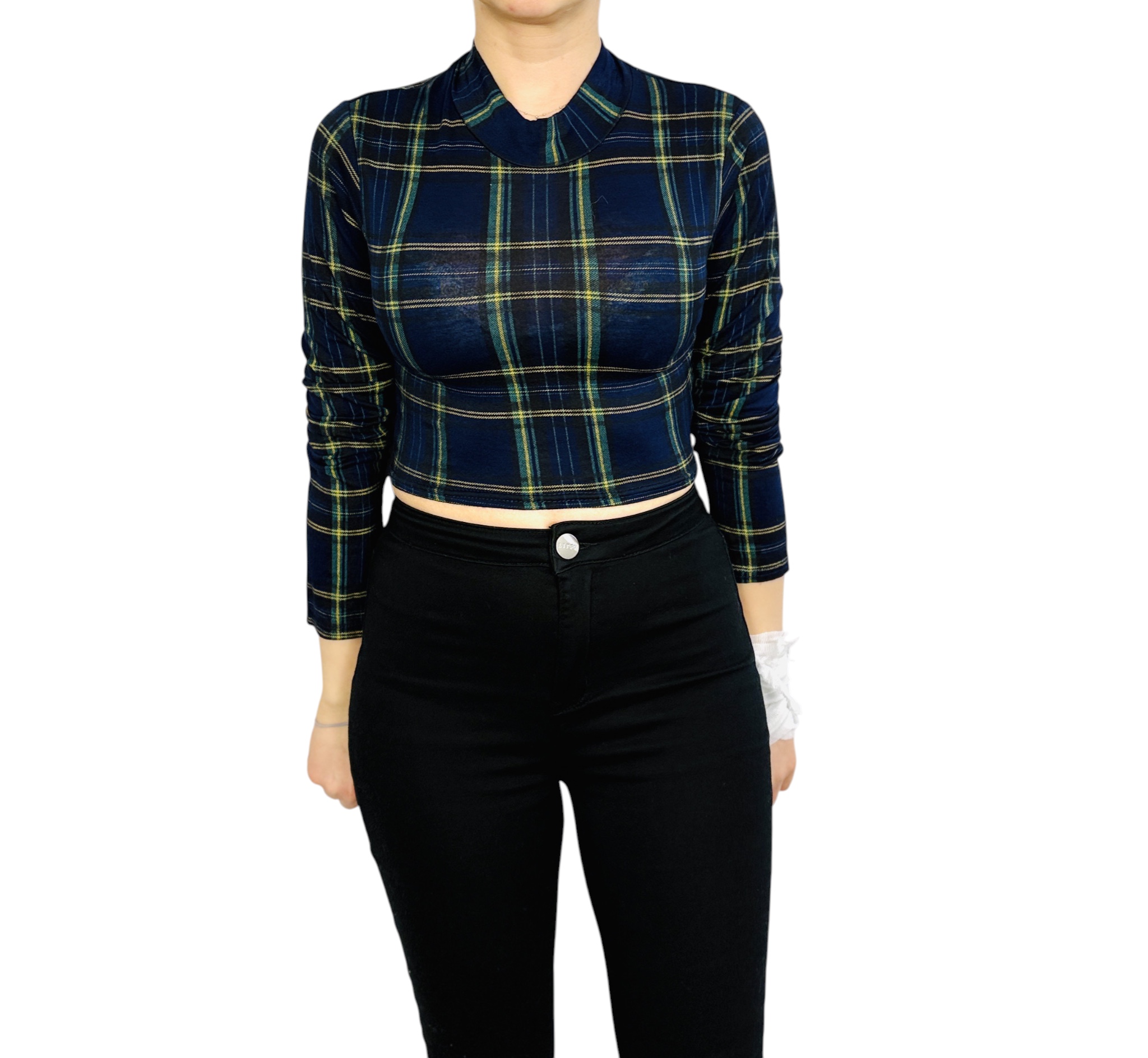 Ta bluzka emanuje nowoczesnym, lekko preppy charakterem — klasyczna krata w odcieniach granatu i zieleni z cienkimi, jasnymi przełamaniami nadaje jej zdecydowanego, a zarazem szykownego wyrazu. Całość sprawia wrażenie przemyślanego, modowego akcentu, który potrafi dodać stylizacji charakteru, nie tracąc przy tym subtelności. Projekt łączy kobiecą zadziorność z uporządkowaną formą, dzięki czemu bluzka będzie świetnym wyborem dla osób ceniących stylowy minimalizm z wyraźnym wzorem.