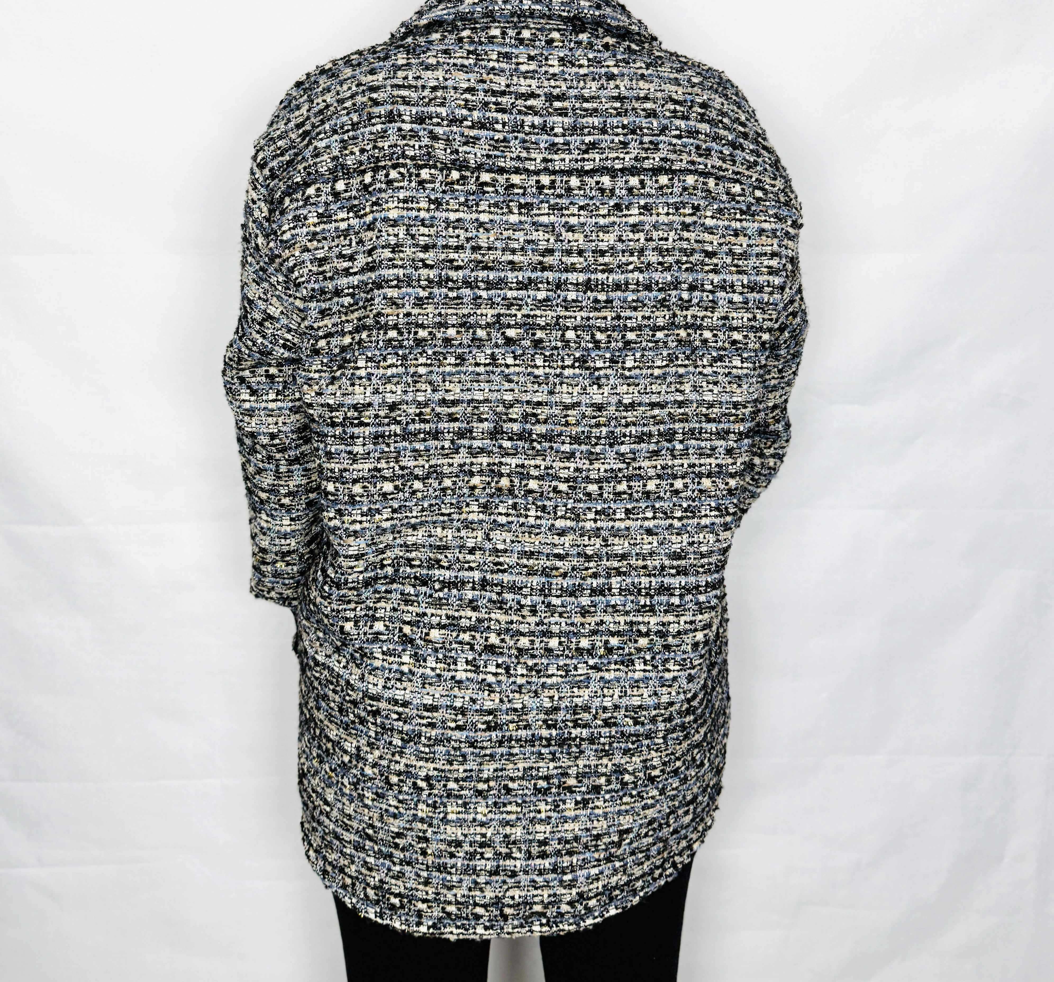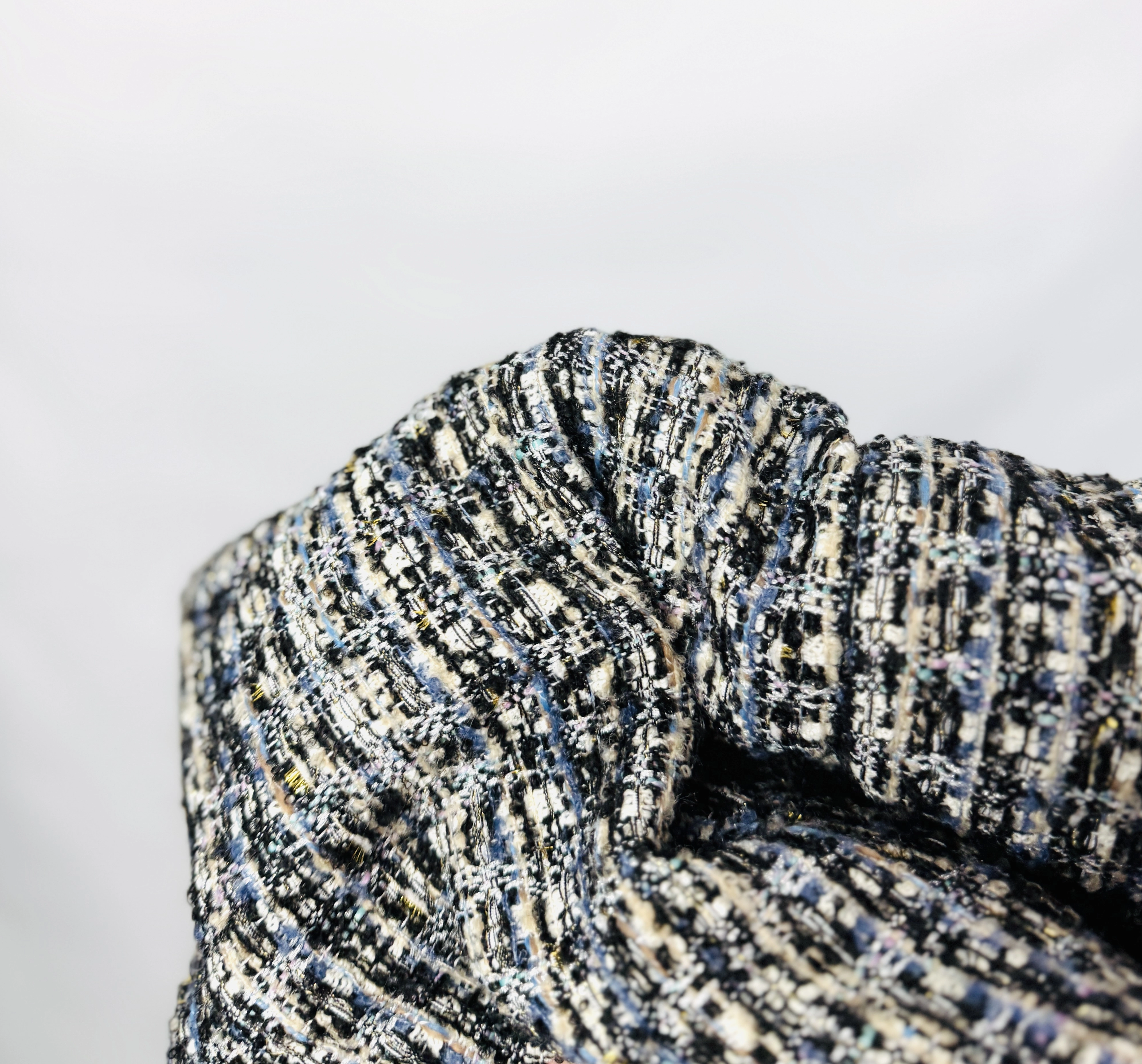 Materiał, z którego wykonano ten model, to wyjątkowo nastrojowa, grubsza i otulająca tkanina o wyraźnym, strukturalnym splocie. Dzianina sprawia wrażenie miękkiej i bardzo ciepłej, przypominając swoją teksturą szlachetny tweed, co dodaje ubraniu luksusowego charakteru. Materiał nastrojowo trzyma formę, nie gniotąc się, a jednocześnie pozostaje na tyle plastyczny, by miękko dopasowywać się do ruchów sylwetki. Gęsty splot kolorowych nitek tworzy nastrojowy melanż, który maskuje zagniecenia i sprawia, że produkt prezentuje się nienagannie przez cały radosny i intensywny dzień. To ubiór stworzony do noszenia jako stylowa kurteczka w okresach przejściowych, dbający o nastrojowy komfort i poczucie bezpieczeństwa przed chłodem.