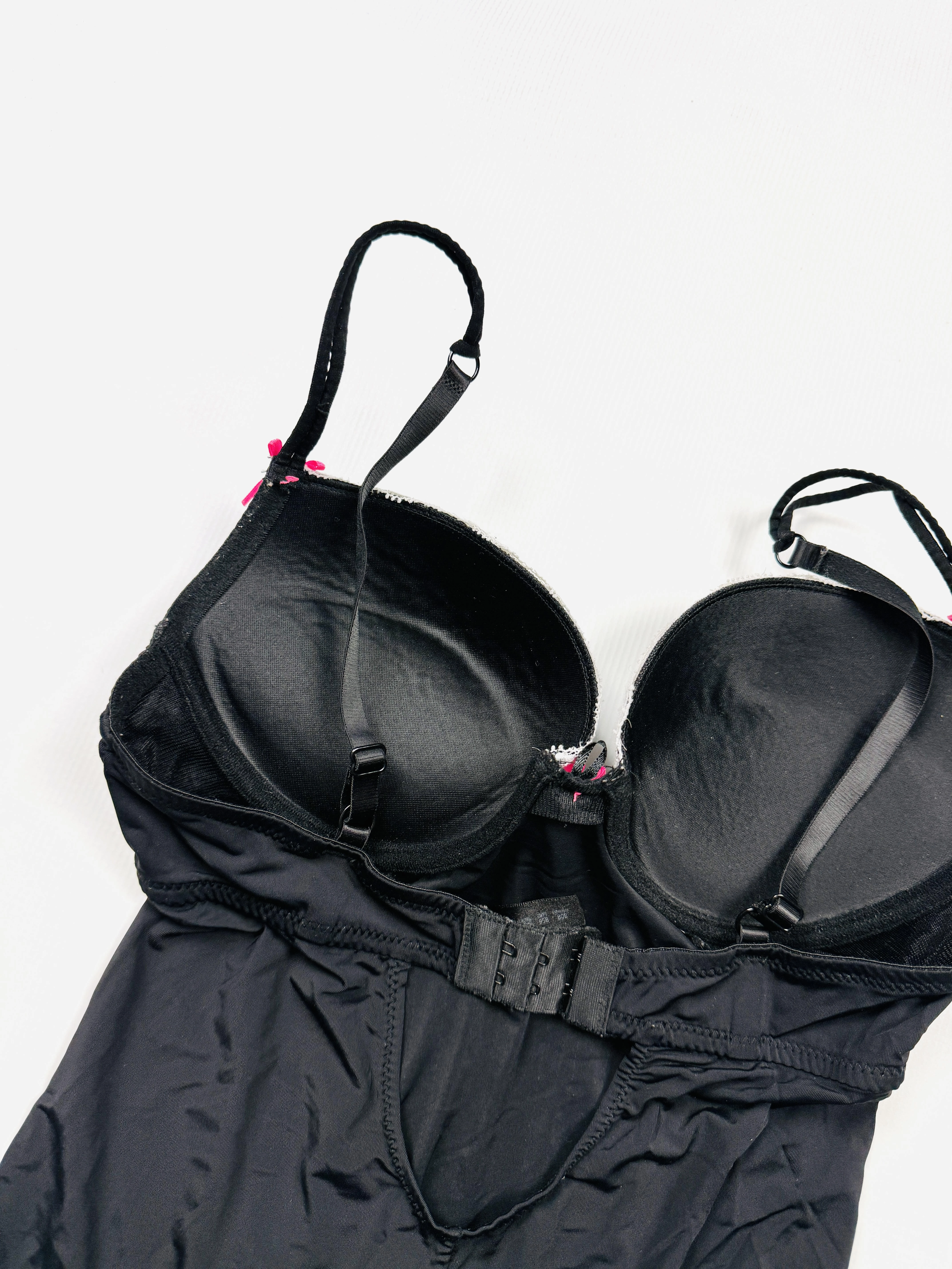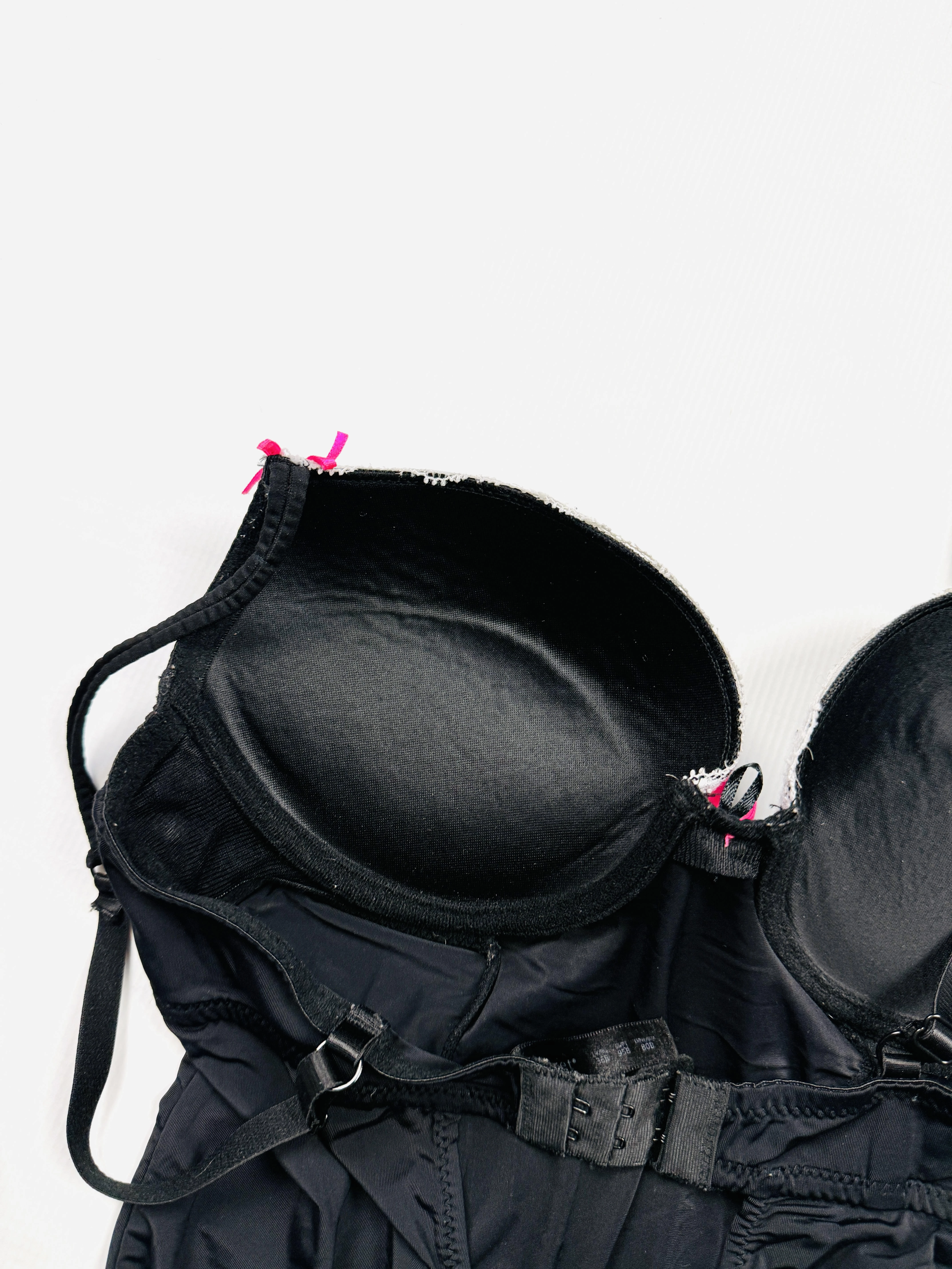 Biustonosz ma fiszbiny, w miseczkach ma wypełnienie oraz dodatkowe grubsze wypełnienie w ich dolnej części.