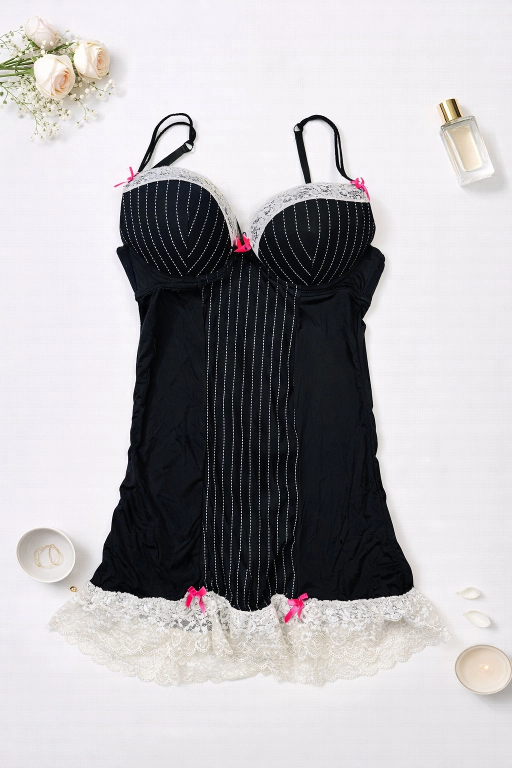 Halka z biustonoszem push-up 80B czarna