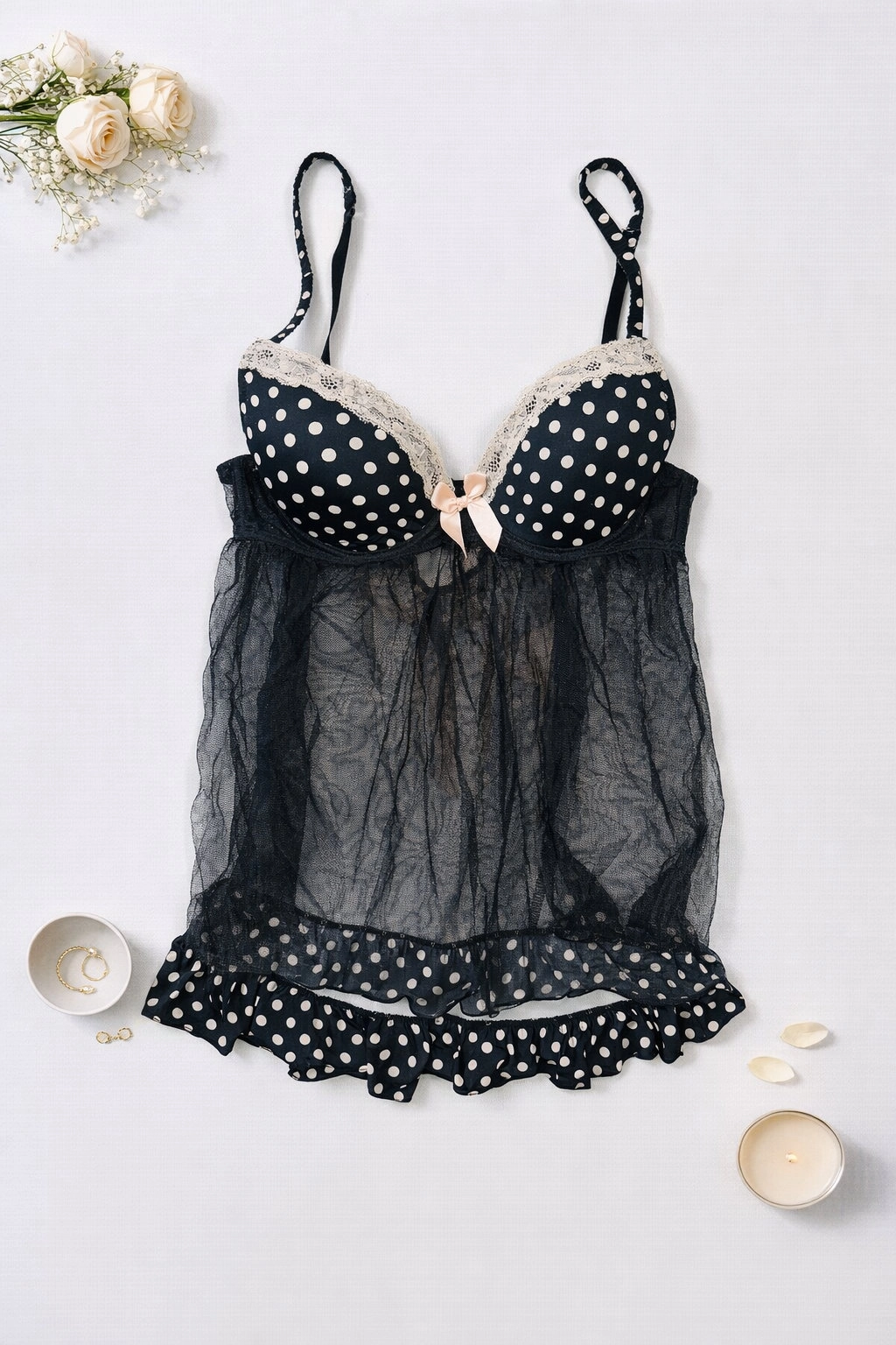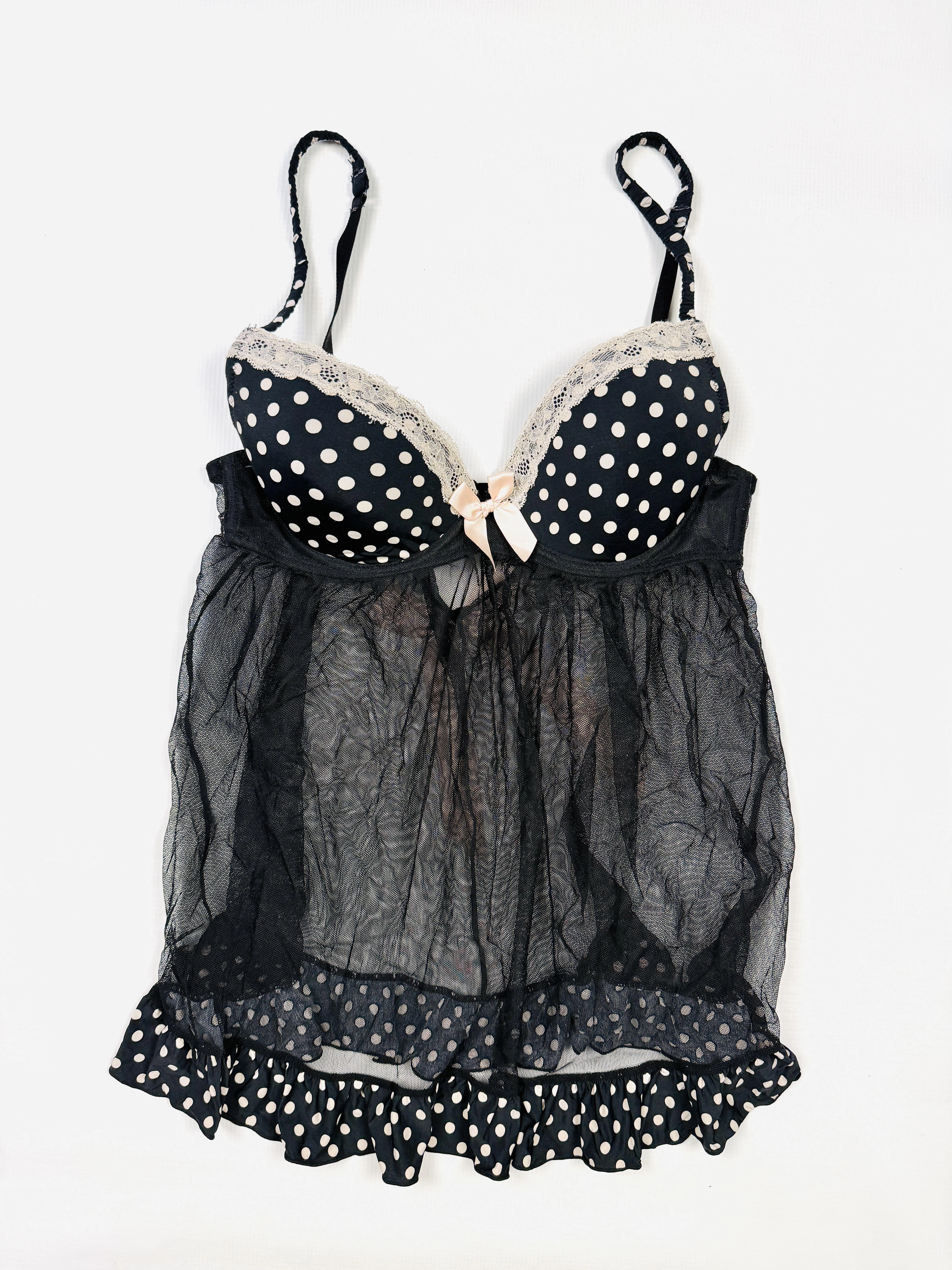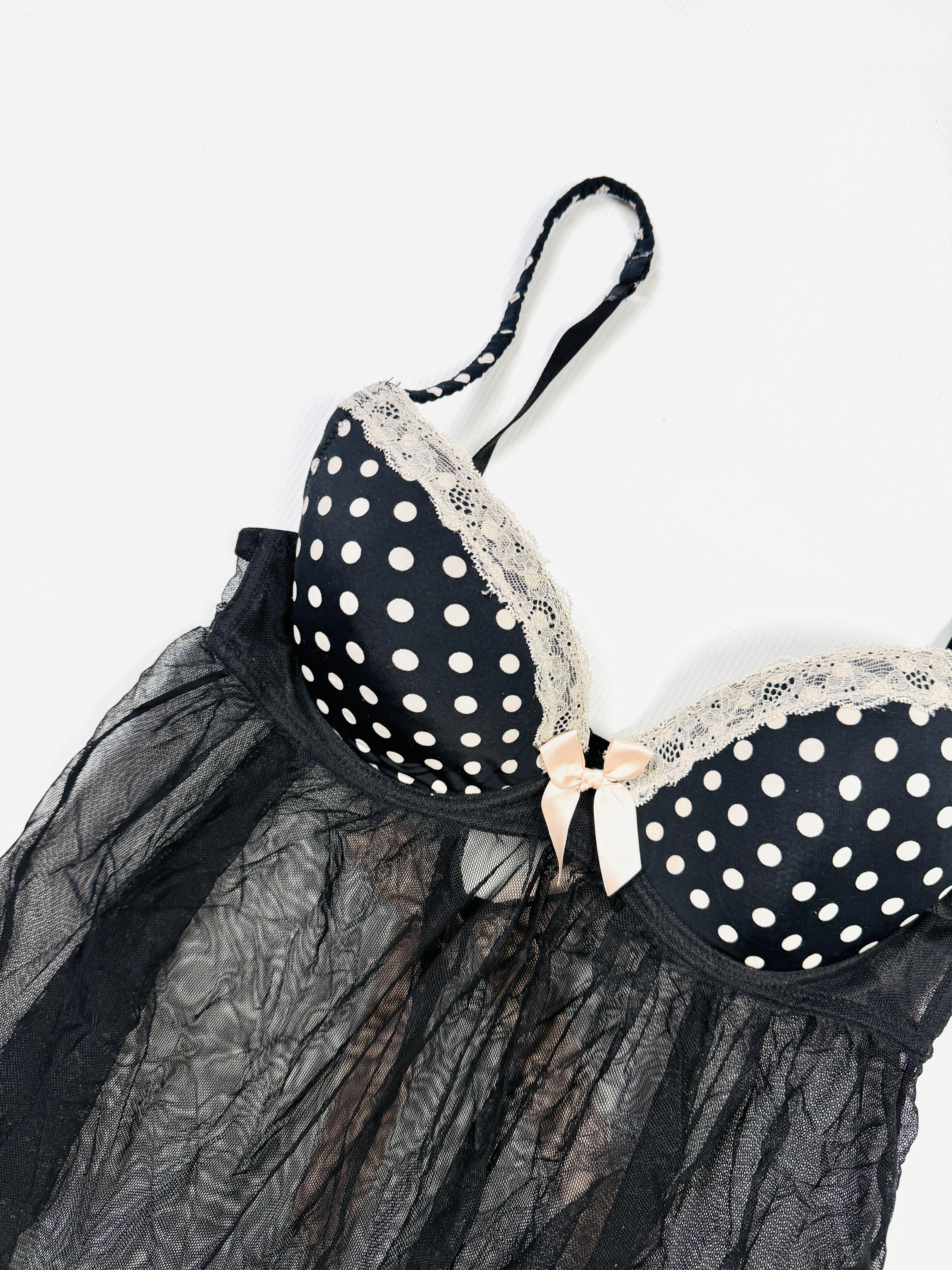 Halka z usztywnianym biustonoszem 75C czarna groszki