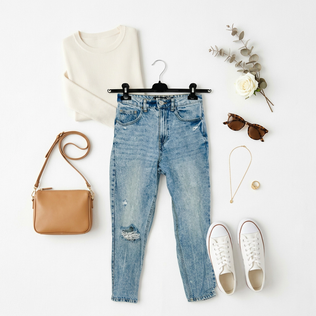 Fason korzystnie modeluje sylwetkę: wysoki stan optycznie wydłuża nogi i akcentuje talię, co daje efekt wysmuklenia i proporcjonalnego zrównoważenia figury. U sylwetki gruszki jeansy pomogą wyrównać proporcje, przyciągając uwagę ku górze, u klepsydry zaakcentują talię, a przy prostokątnej sylwetce dodadzą nieco miękkości i kształtu dzięki lekko luźniejszej górnej partii. Prosta nogawka tworzy harmonijną, uporządkowaną linię, która sprawia, że całość wygląda kobieco i bez wysiłku.