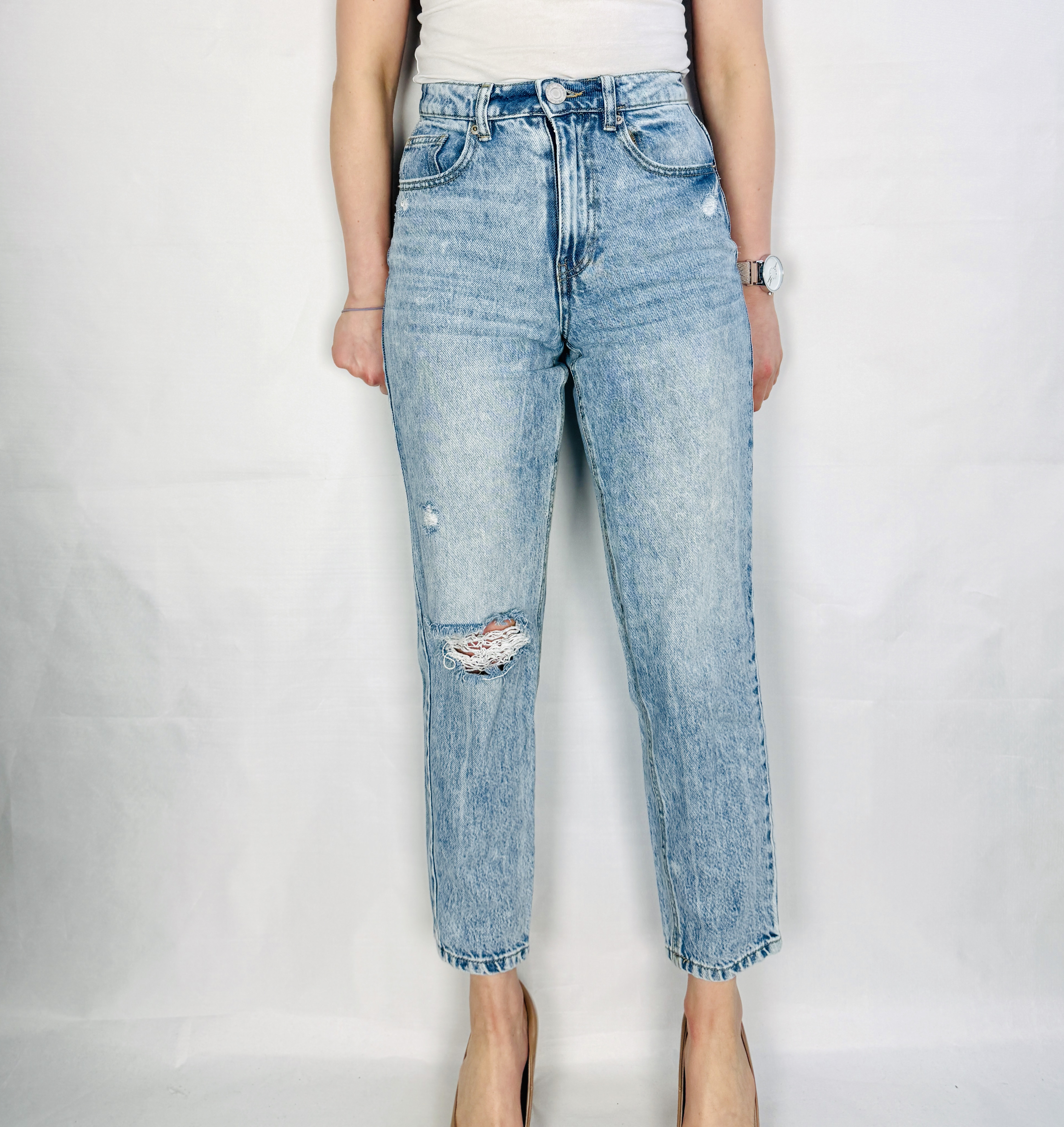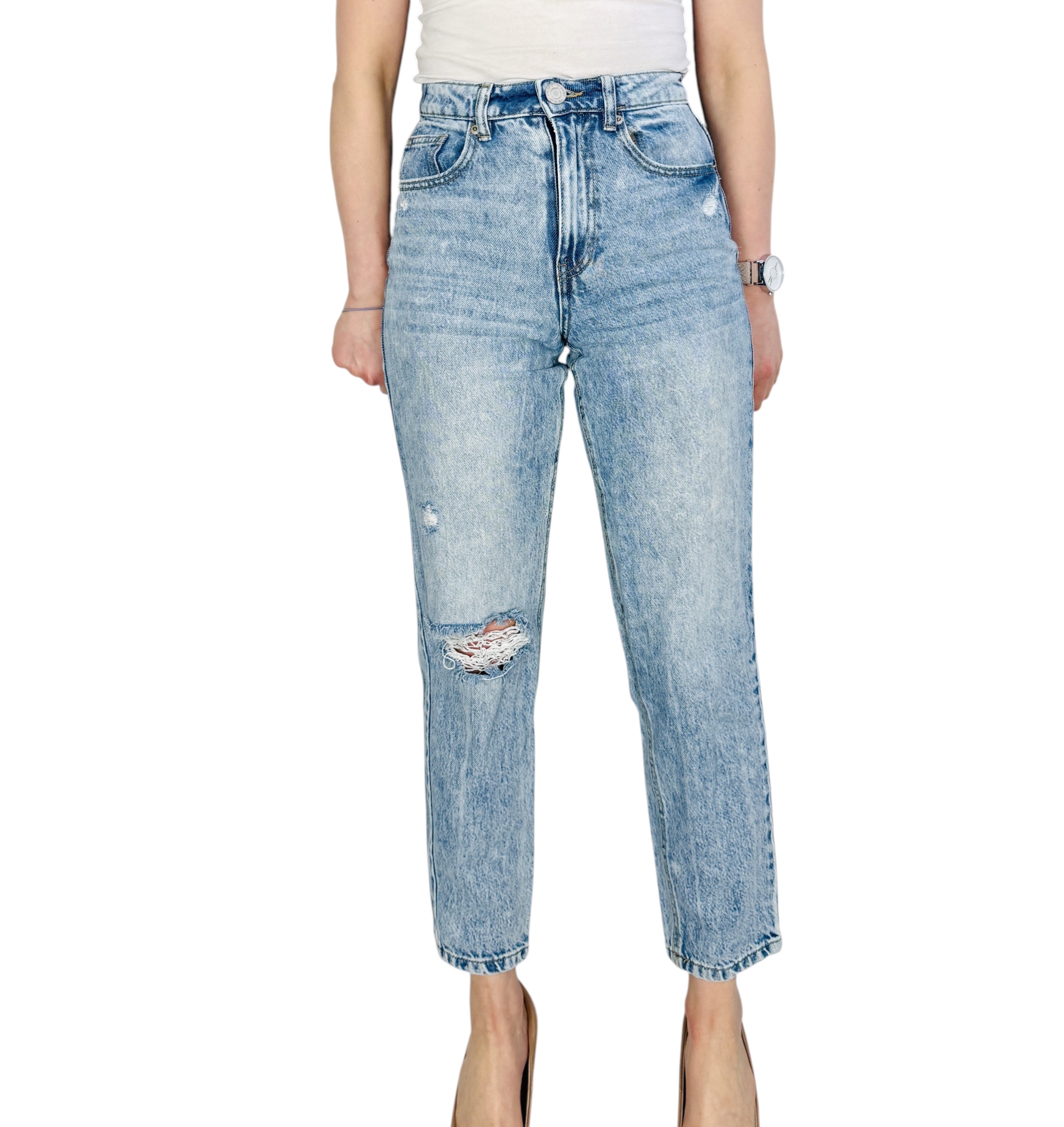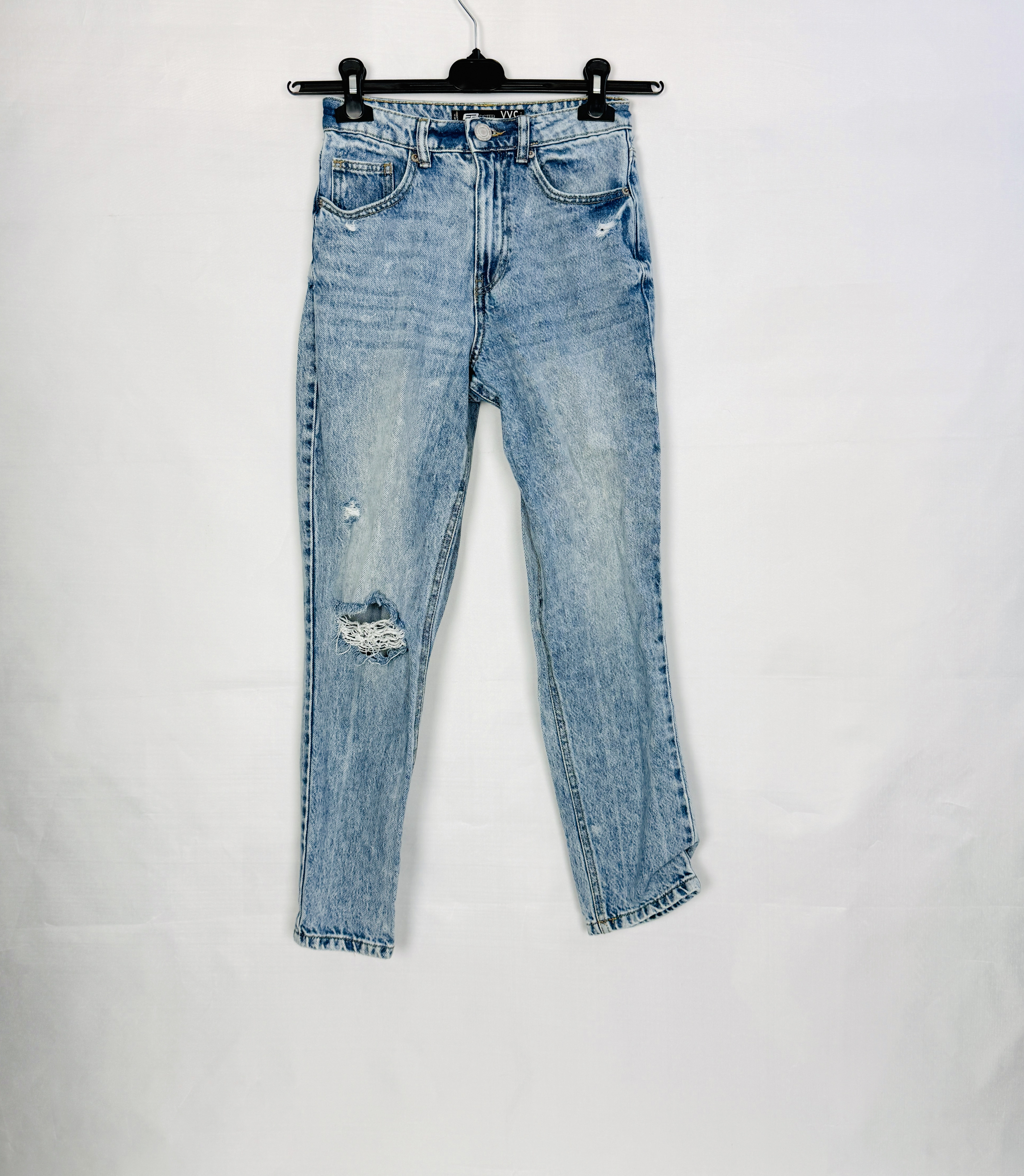 Jasnoniebieskie jeansy z przetarciem XXS 32
