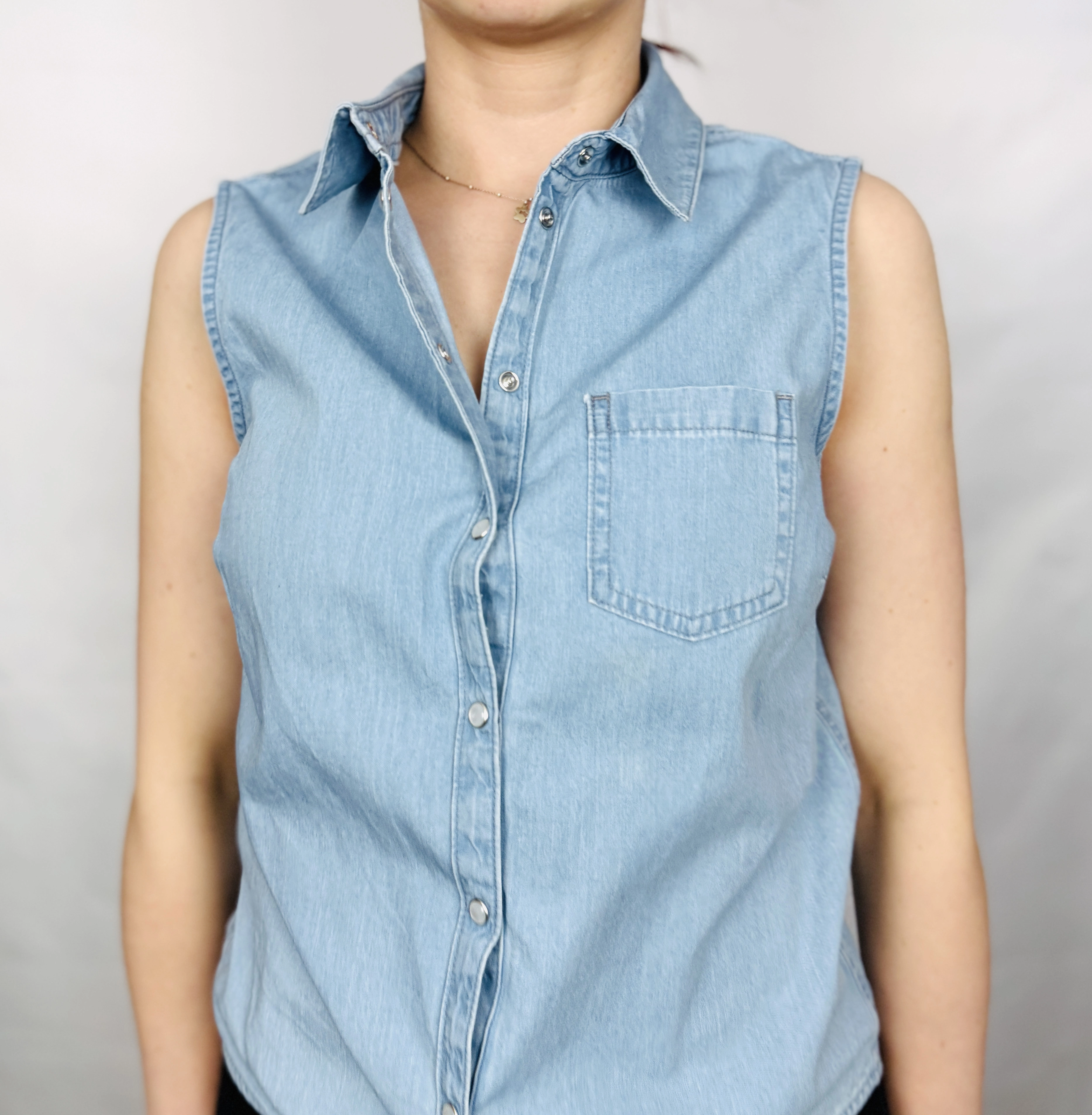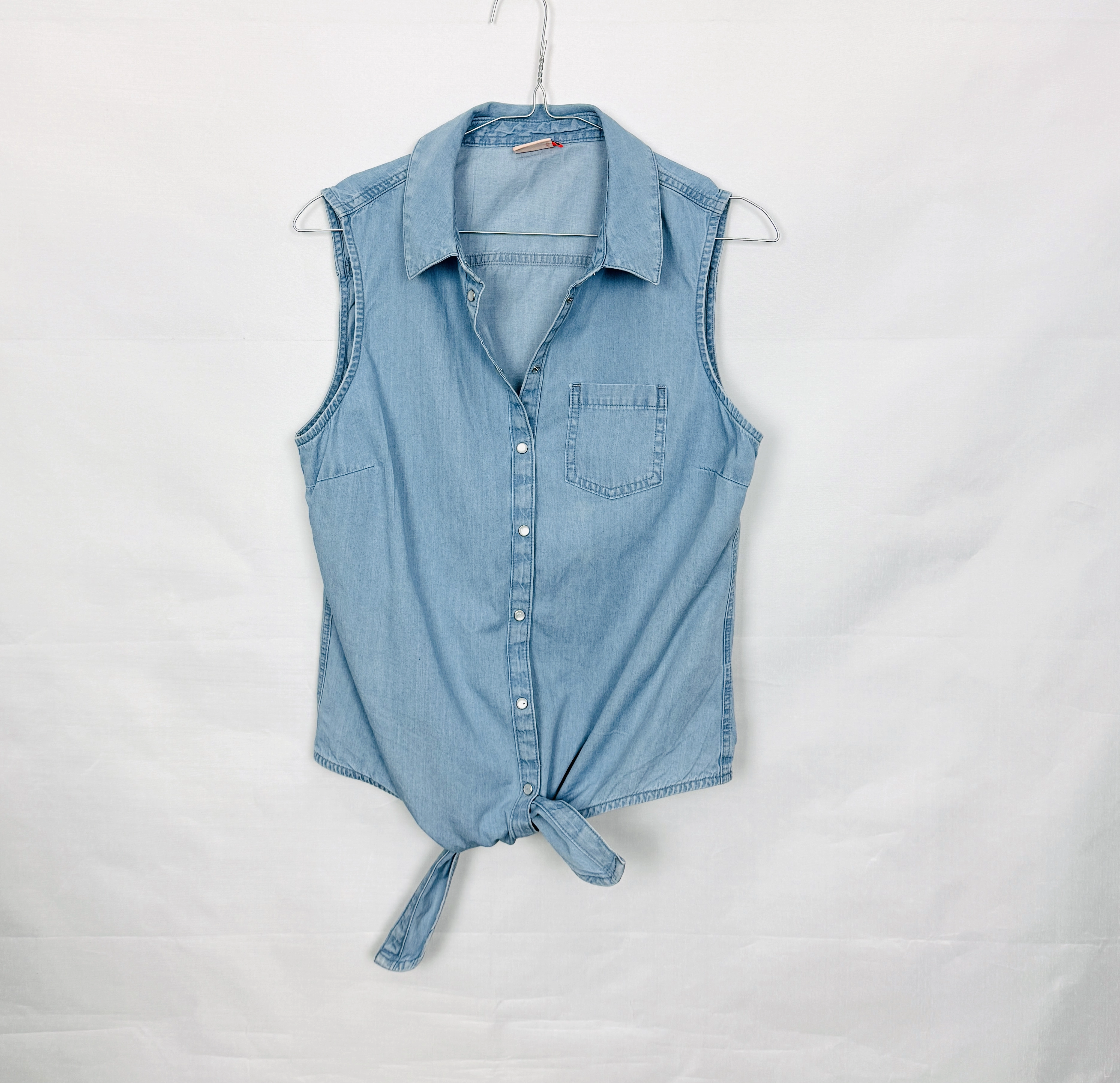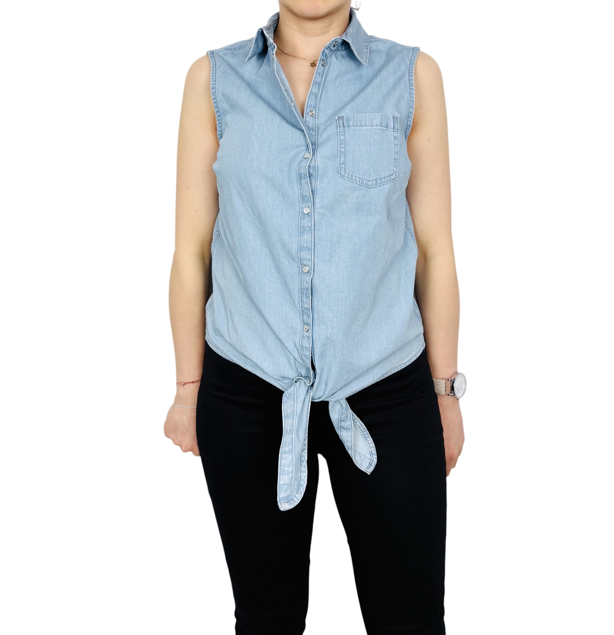 Jeansowa koszula bez rękawów z wiązaniem M 38