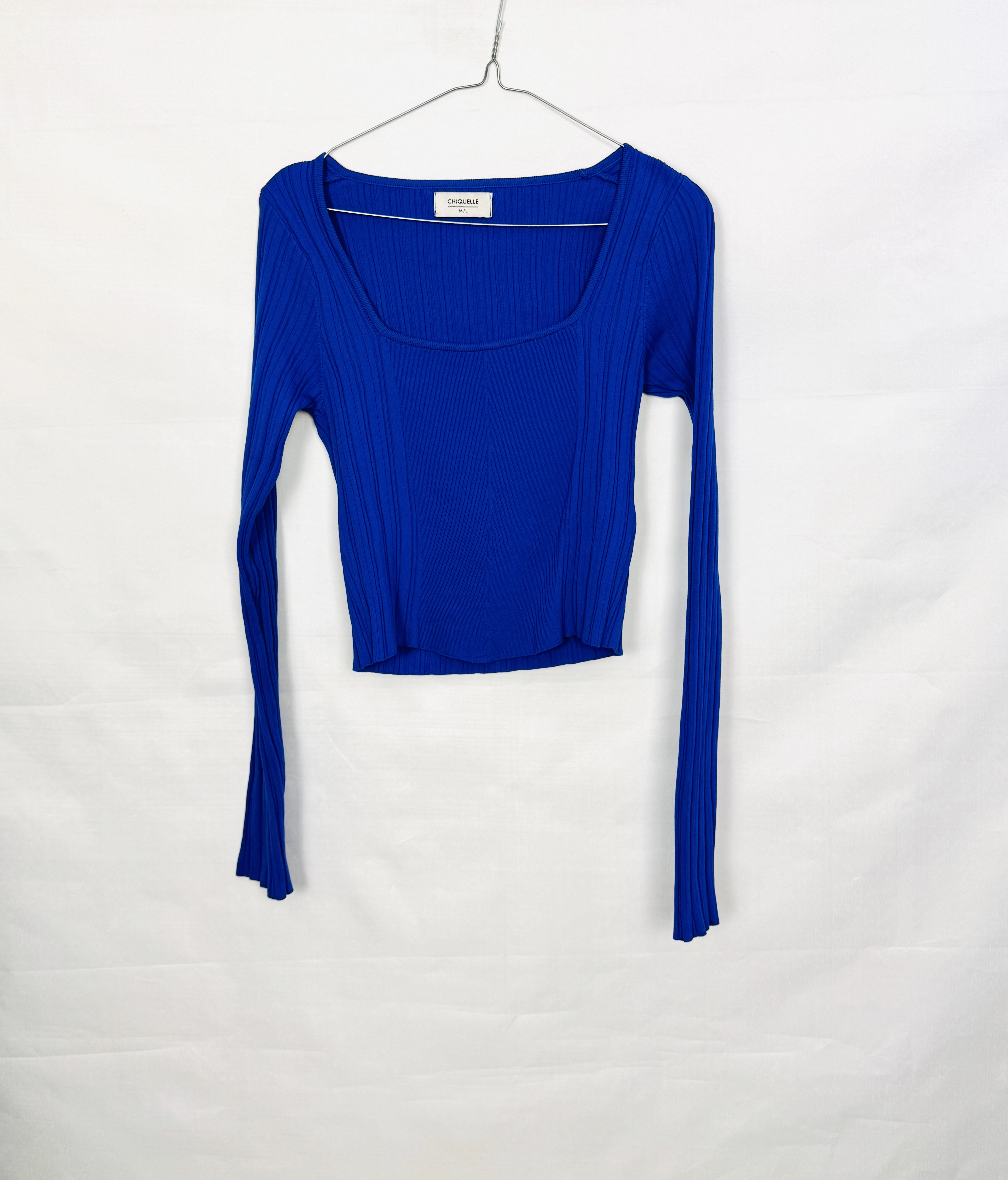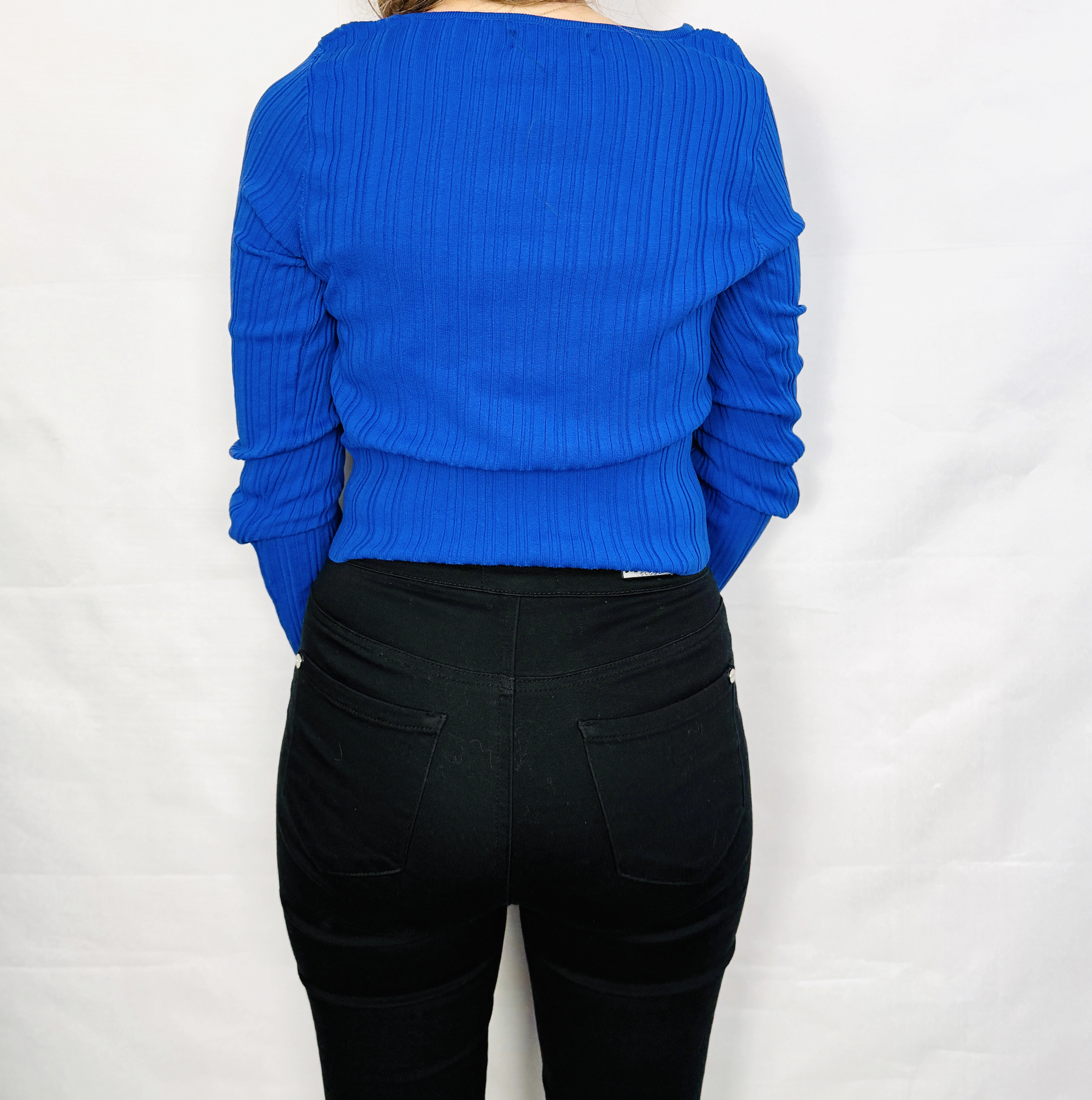 Kobaltowy prążkowany top crop M/L 38/40