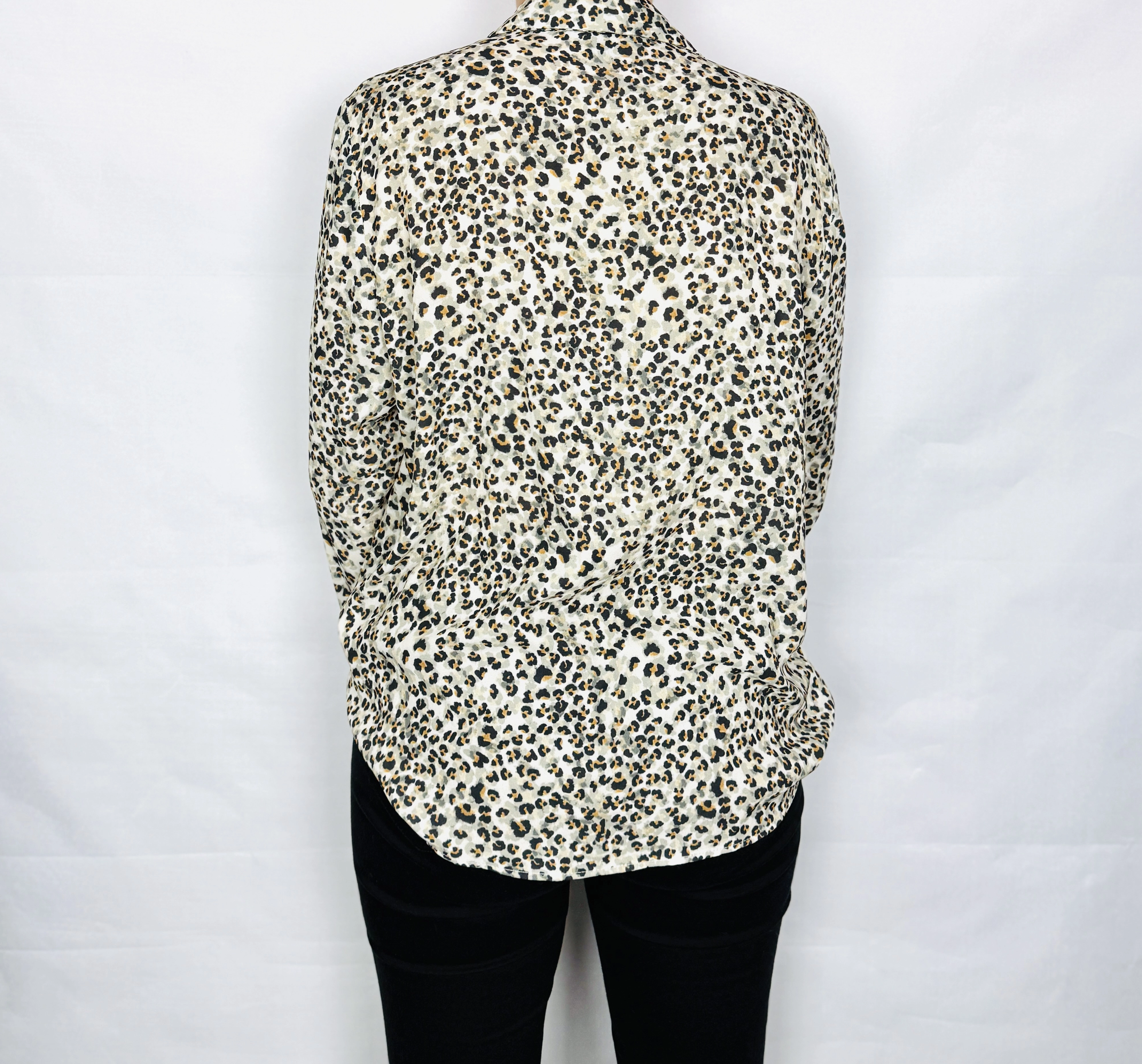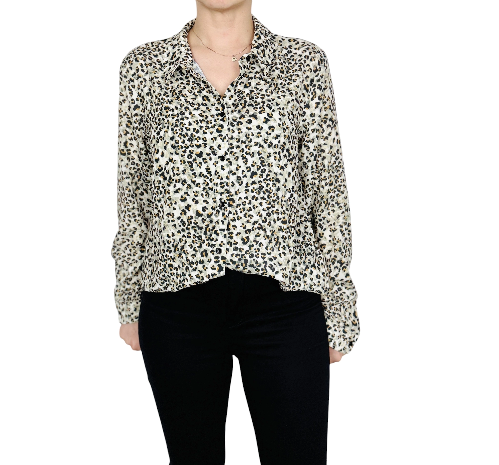 Koszula w cętki stwarza nieskończone możliwości stylizacyjne, będąc niezwykle uniwersalną bazą. Do pracy czy na oficjalne spotkanie warto zestawić ją z czarnymi cygaretkami i dopasowaną marynarką. W wersji na co dzień koszula zaprezentuje się doskonale w połączeniu z jeansami z wysokim stanem oraz wygodnymi loafersami. Na wieczorne wyjście można wybrać spódnicę ołówkową i buty na obcasie, co podkreśli zmysłowy charakter zwierzęcego printu. Kolorystyka oparta na beżu i czerni sprawia, że produkt idealnie komponuje się z bielą, brązem, złotem oraz klasyczną czernią, tworząc zestawy pełne klasy i nowoczesnego szyku.