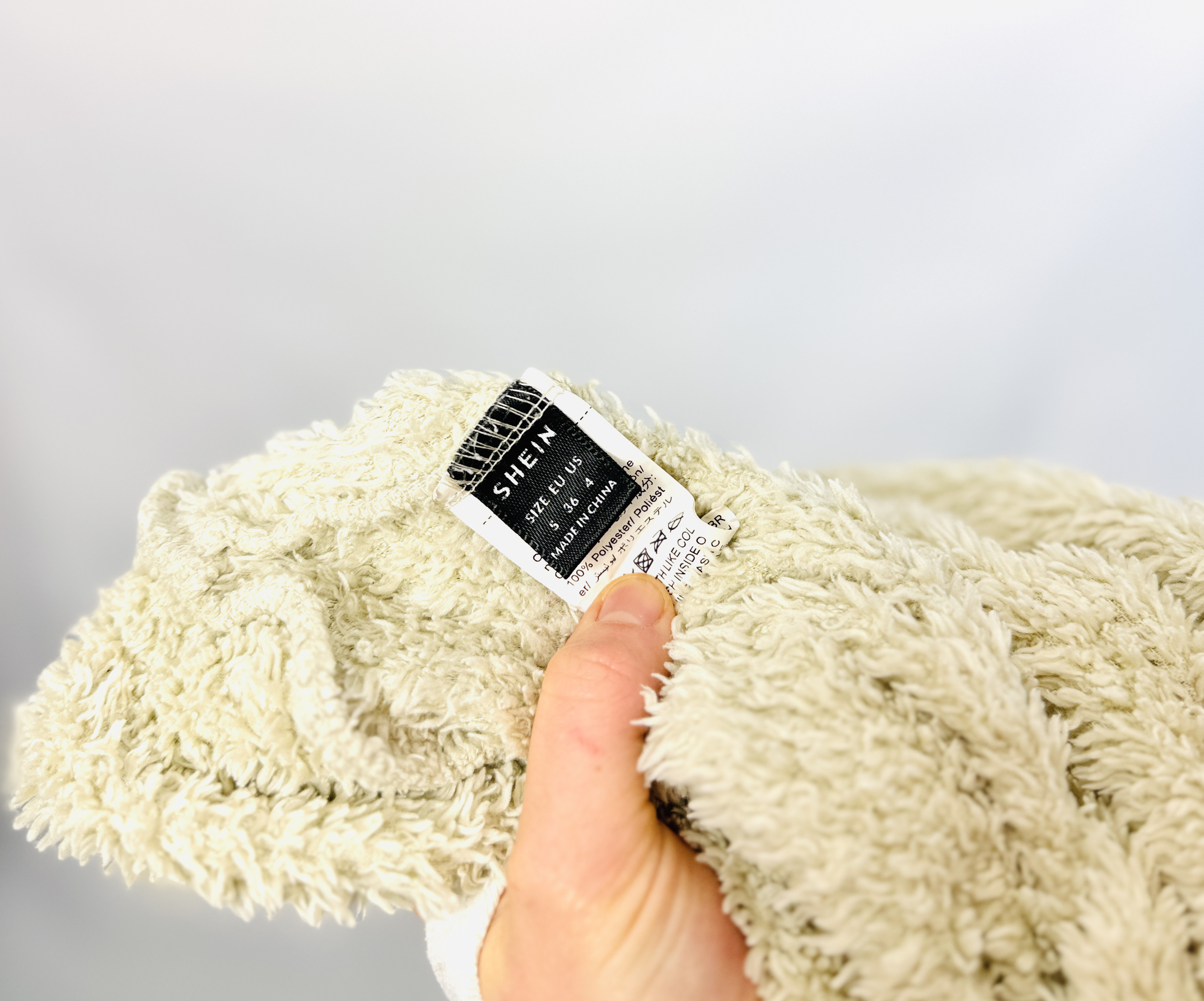 Materiał prezentuje się jako grubszy, bardzo miękko układający się i wyraźnie „pluszowy” — powierzchnia przypomina delikatne włosie, które subtelnie odbija światło i daje wrażenie przytulności. Taki wygląd tkaniny dodaje objętości, ale w elegancki, przyjazny sposób; bluza nie opinając, tworzy miękkie linie i łagodne fałdy tam, gdzie ciało porusza się, co czyni ją idealną propozycją na chłodniejsze dni, kiedy komfort idzie w parze ze stylem.