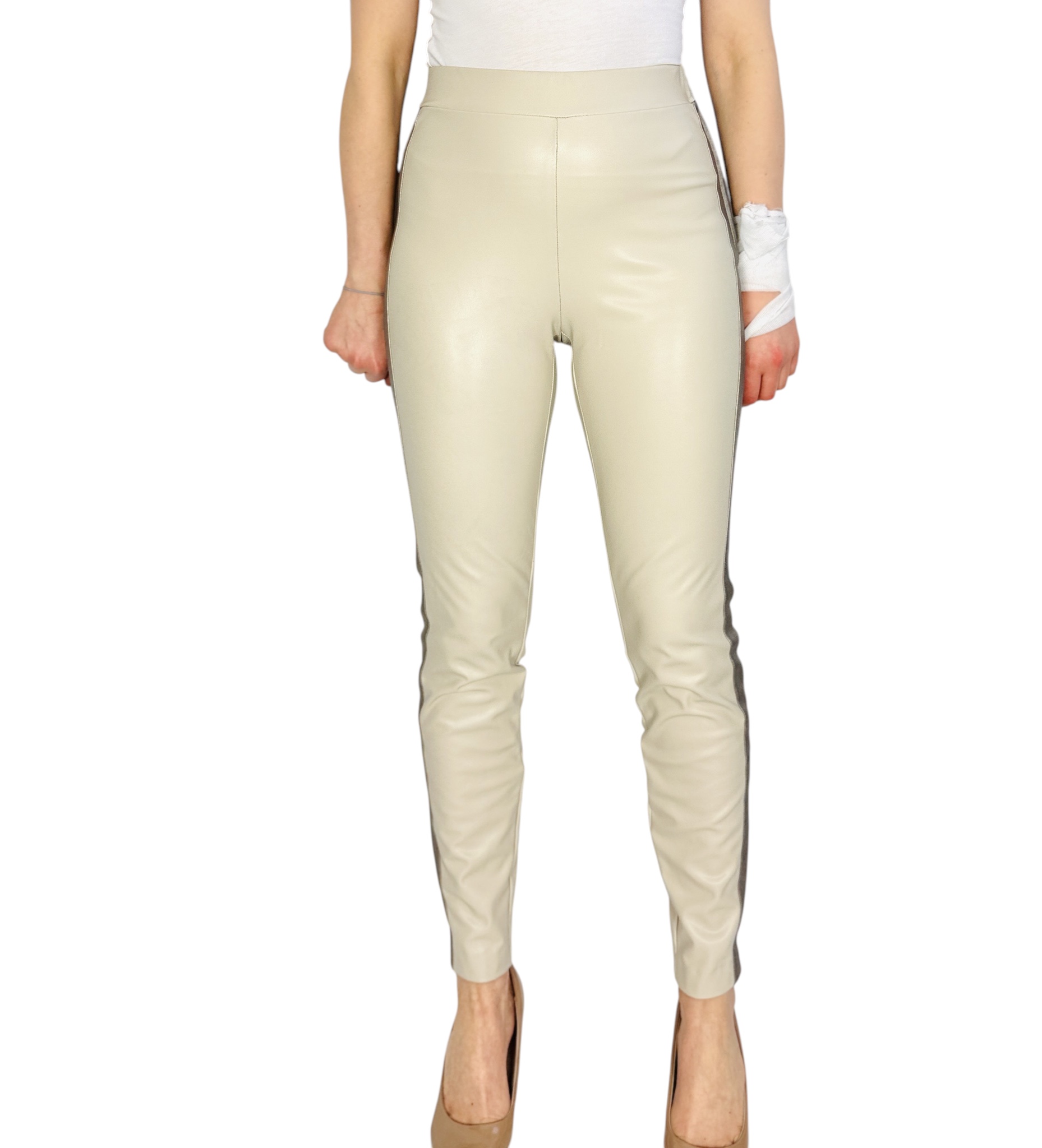 Te spodnie to elegancki akcent o wyrazistym, a jednocześnie subtelnym charakterze — jasny, kremowy odcień wnosi do garderoby świeżość i błysk delikatnej luksusu, a gładka powierzchnia nadaje całości wysmakowanego wyrazu. Model emanuje nowoczesną prostotą: minimalistyczna forma połączona z lekko połyskującym wykończeniem tworzy estetykę, która sprawdzi się zarówno w codziennych, jak i bardziej dopracowanych stylizacjach. To propozycja dla osób, które lubią podkreślać sylwetkę w sposób elegancki, bez krzykliwych dodatków.