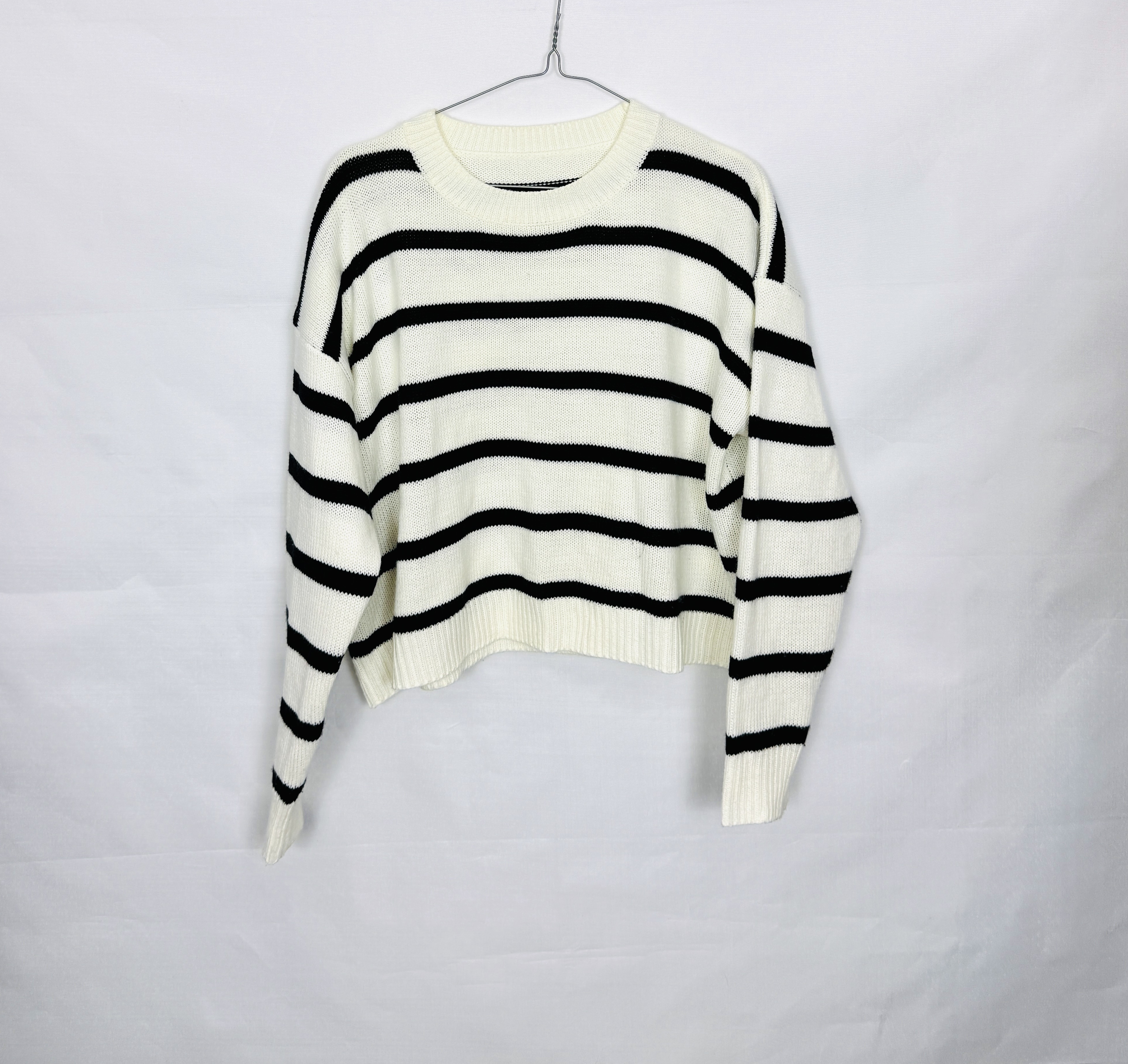 Kremowo czarny sweter w paski S 36