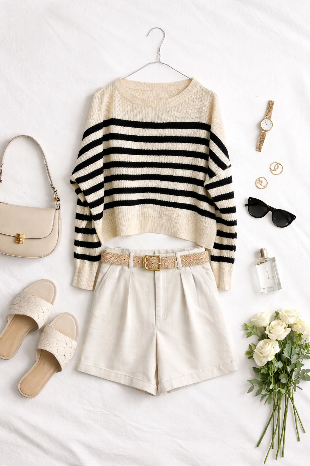Ten kremowy sweter w czarne paski to kwintesencja ponadczasowej klasyki w swobodnym, codziennym wydaniu. Połączenie jasnej, miękkiej bazy z wyrazistym, poziomym wzorem tworzy efekt, który jest jednocześnie elegancki i niewymuszony. To model, który przyciąga uwagę swoją prostotą, a jednocześnie daje ogromne możliwości stylizacyjne – idealny dla kobiet ceniących minimalizm z charakterem.