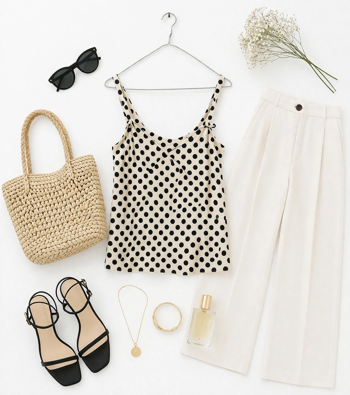 Ten kremowy top to idealne połączenie klasyki i dziewczęcej lekkości, które od razu przywodzi na myśl letnią elegancję w stylu retro. Ponadczasowy wzór regularnych, czarnych groszków na delikatnym, kremowym tle nadaje całości wyjątkowego charakteru, który jest jednocześnie szykowny i odrobinę figlarny. To motyw, który nigdy nie wychodzi z mody, kojarząc się z paryskim szykiem i nienagannym gustem. Dzięki swojej stonowanej kolorystyce, top staje się niezwykle uniwersalną bazą do wielu stylizacji, wnosząc do garderoby powiew świeżości i romantycznego wyrafinowania, idealnego na słoneczne popołudnia czy wieczorne wyjścia.