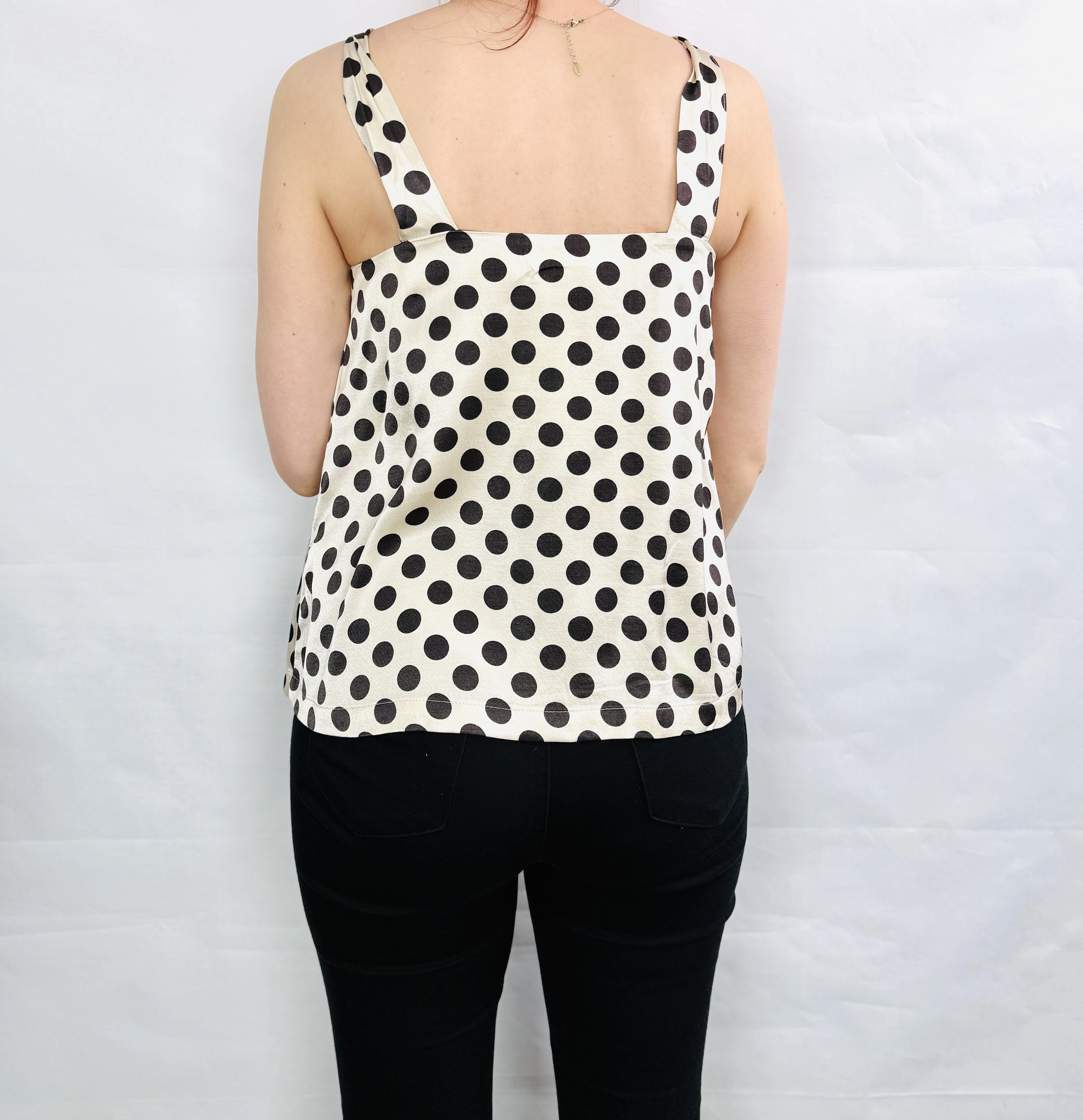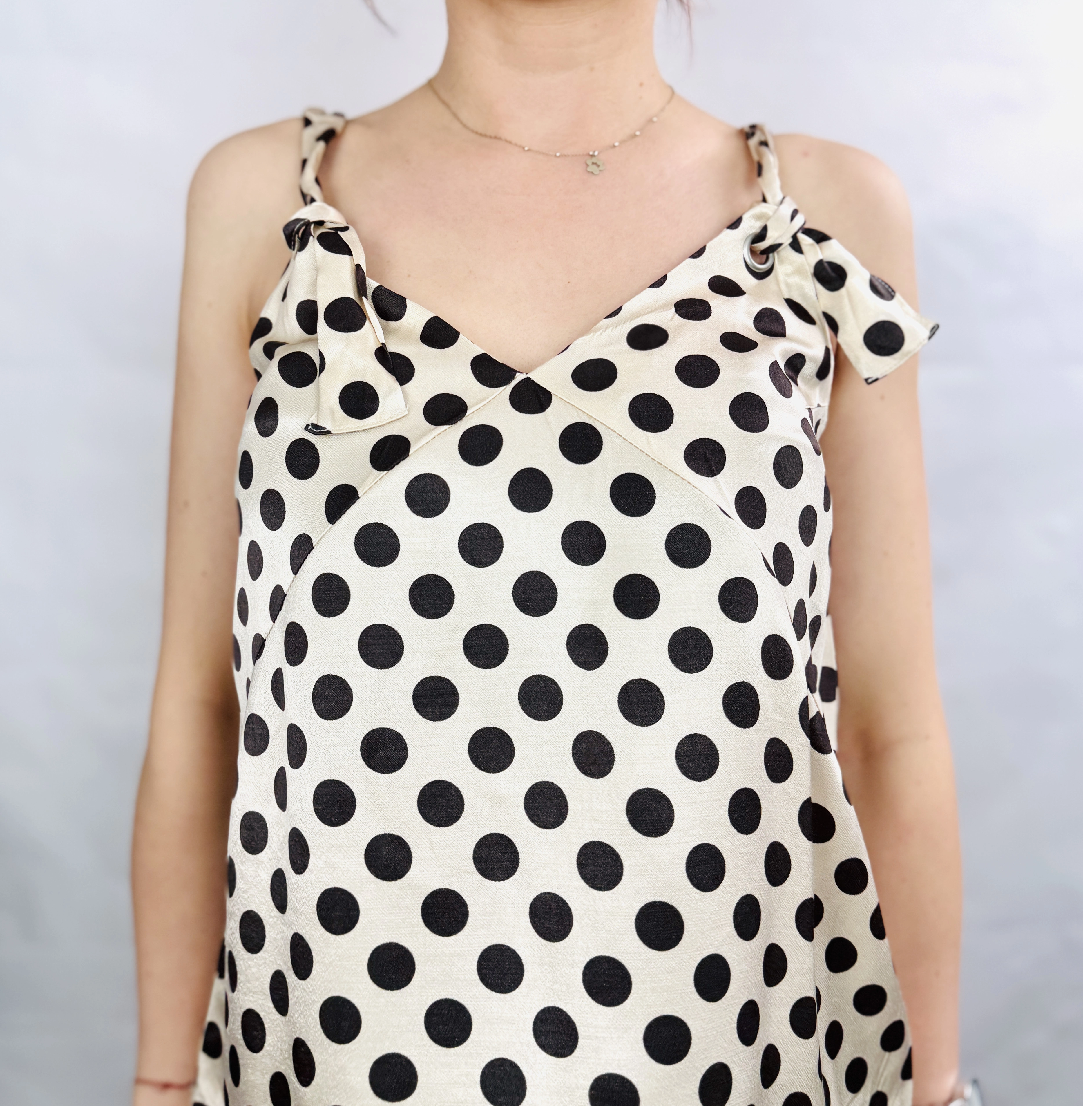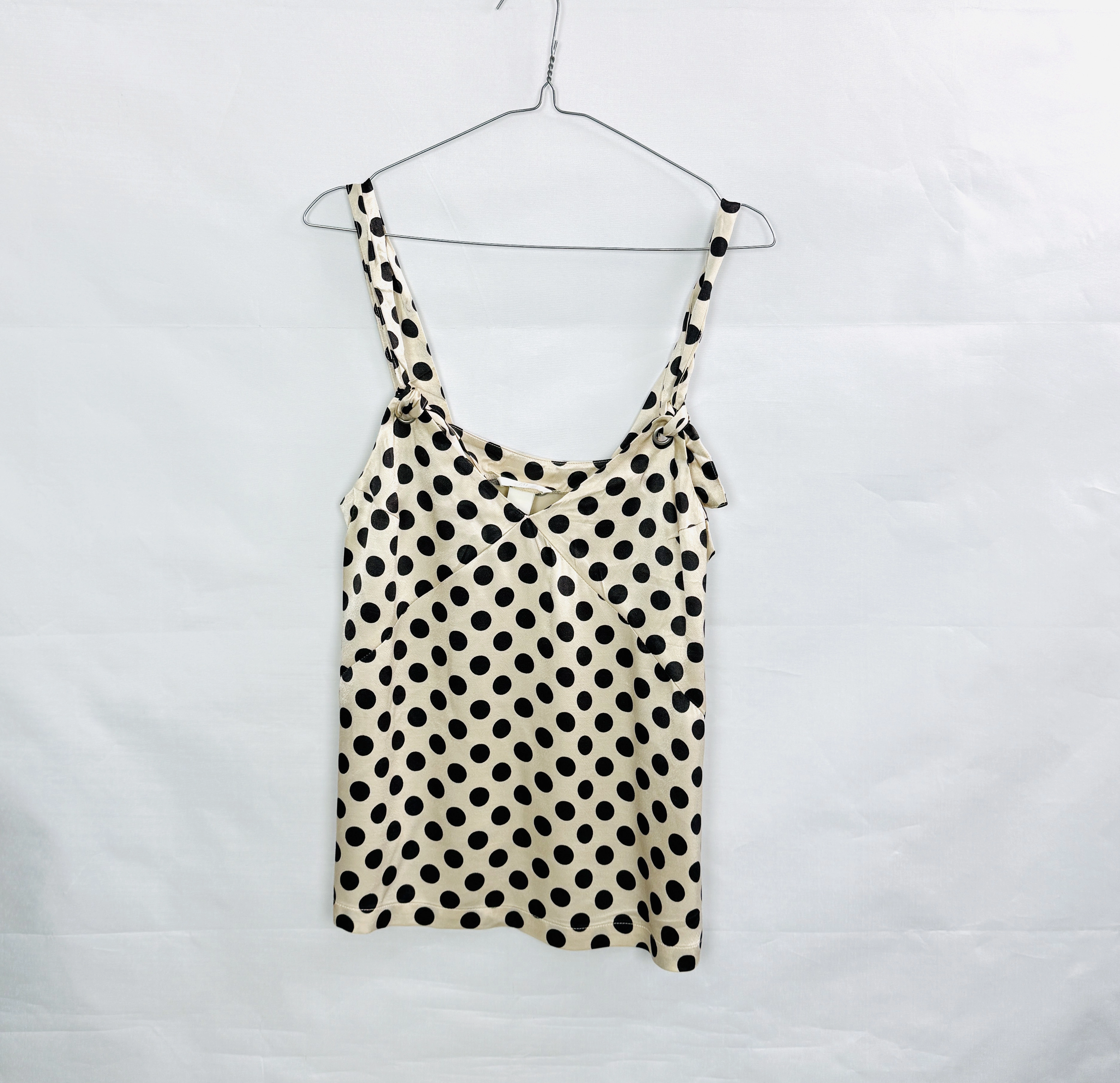 Kremowy top w czarne groszki z wiązaniem S 36