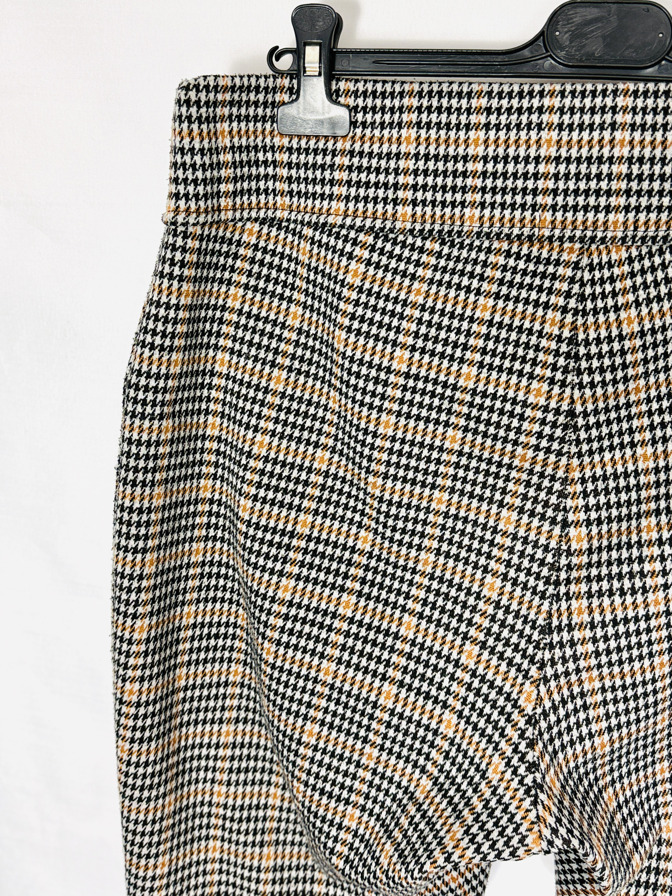 Wzór kratki działa optycznie wysmuklająco dzięki drobnej skali motywu; pionowe linie sylwetki są podkreślone przez dopasowany krój, co wydłuża nogi i nadaje proporcjom harmonii. Taki fason szczególnie przypadnie do gustu osobom, które chcą dodać stylizacji eleganckiego akcentu bez rezygnacji z wygody — legginsy ładnie równoważą krągłość bioder i subtelnie modelują talię, dobrze współgrając z różnymi typami sylwetek, zwłaszcza prostokątną i klepsydrą, gdzie podkreślą naturalne kształty.