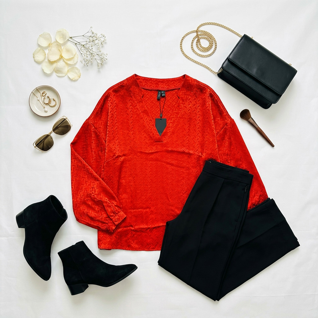 W stylizacjach bluzka daje wiele możliwości: na co dzień zestaw ją z dopasowanymi jeansami o wysokim stanie i botkami dla zbalansowanego, miejskiego looku; do pracy połącz z eleganckimi cygaretkami i prostymi loafersami lub czółenkami, by uzyskać stonowany szyk; na wieczór noś ją z dopasowaną spódnicą midi i wyrazistą biżuterią, podkreślając połysk materiału. Miedziany odcień świetnie harmonizuje z czernią, kremem, beżem, granatem oraz z akcentami w kolorze złota, dzięki czemu bluzka łatwo wpisze się zarówno w stonowane, jak i bardziej wyraziste zestawy.