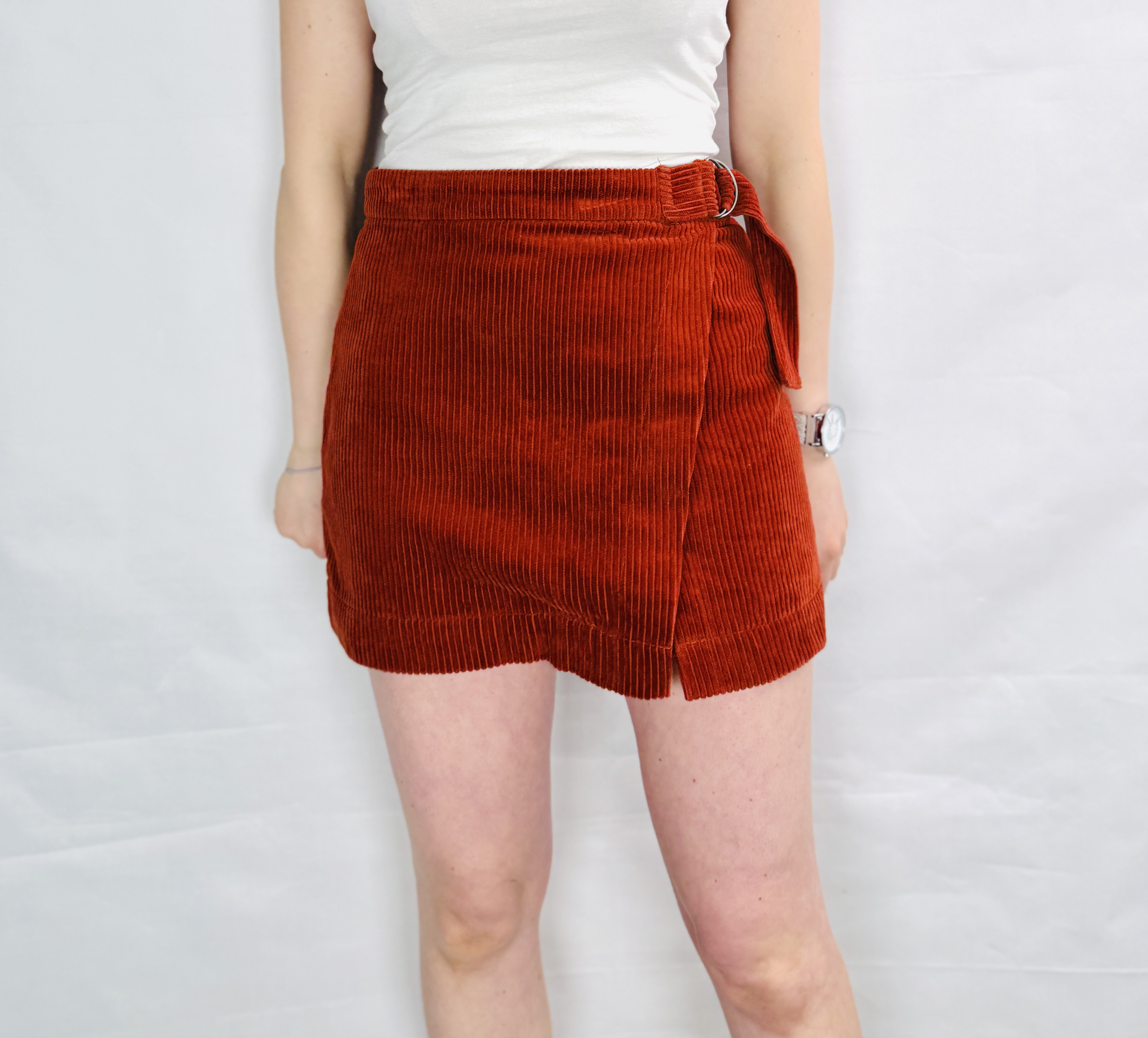 Miedziana sztruksowa spódnica mini S 36