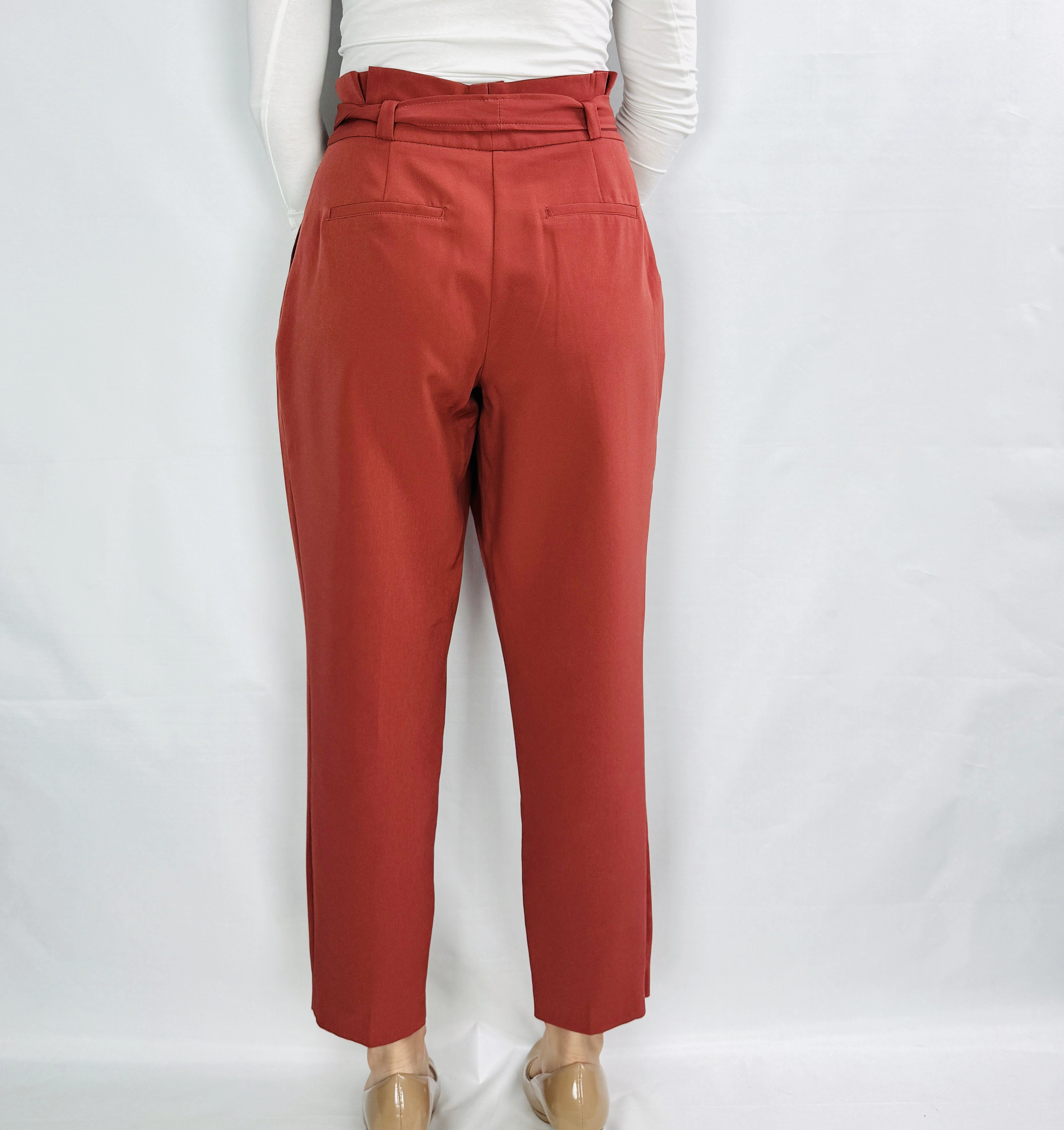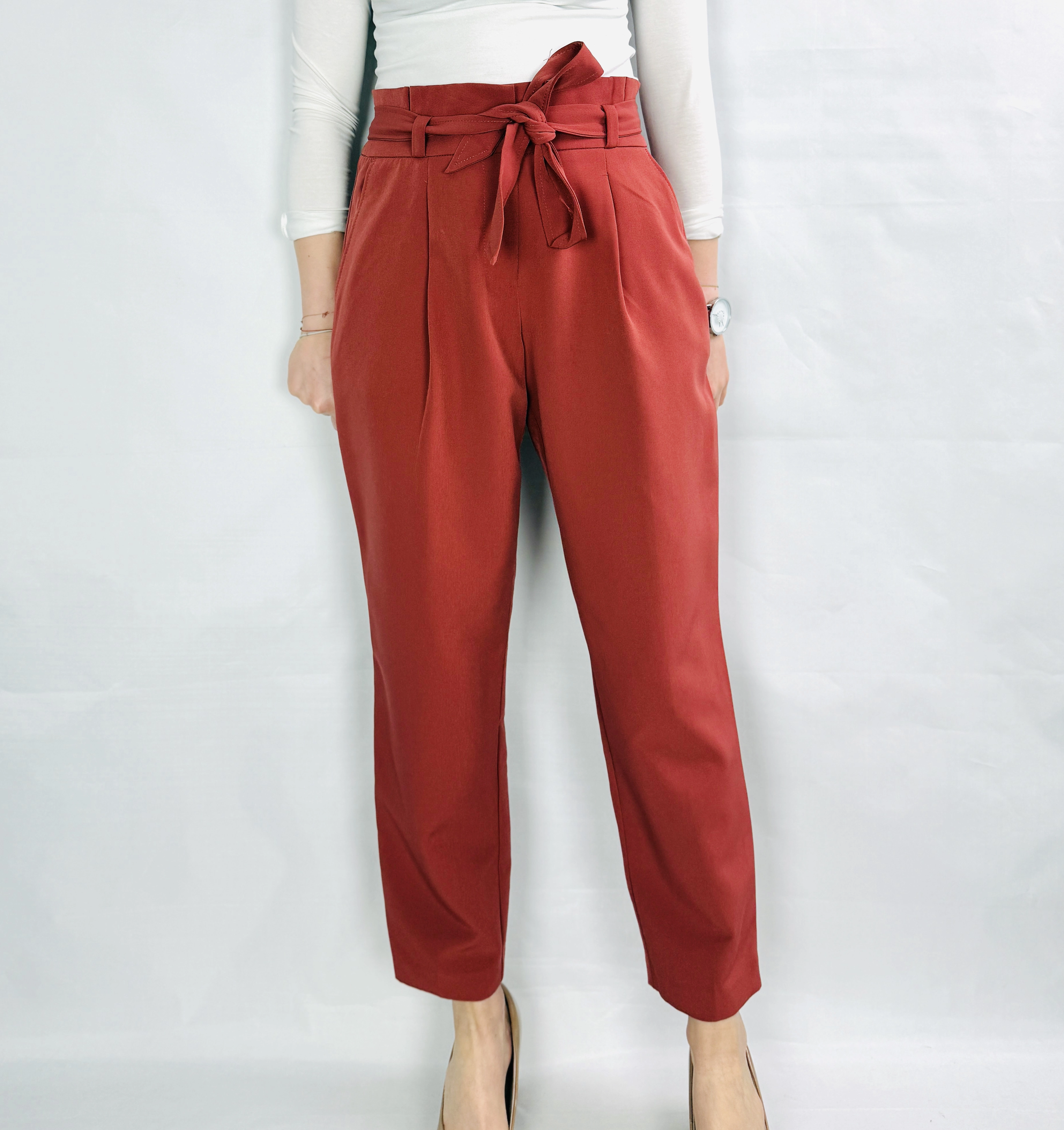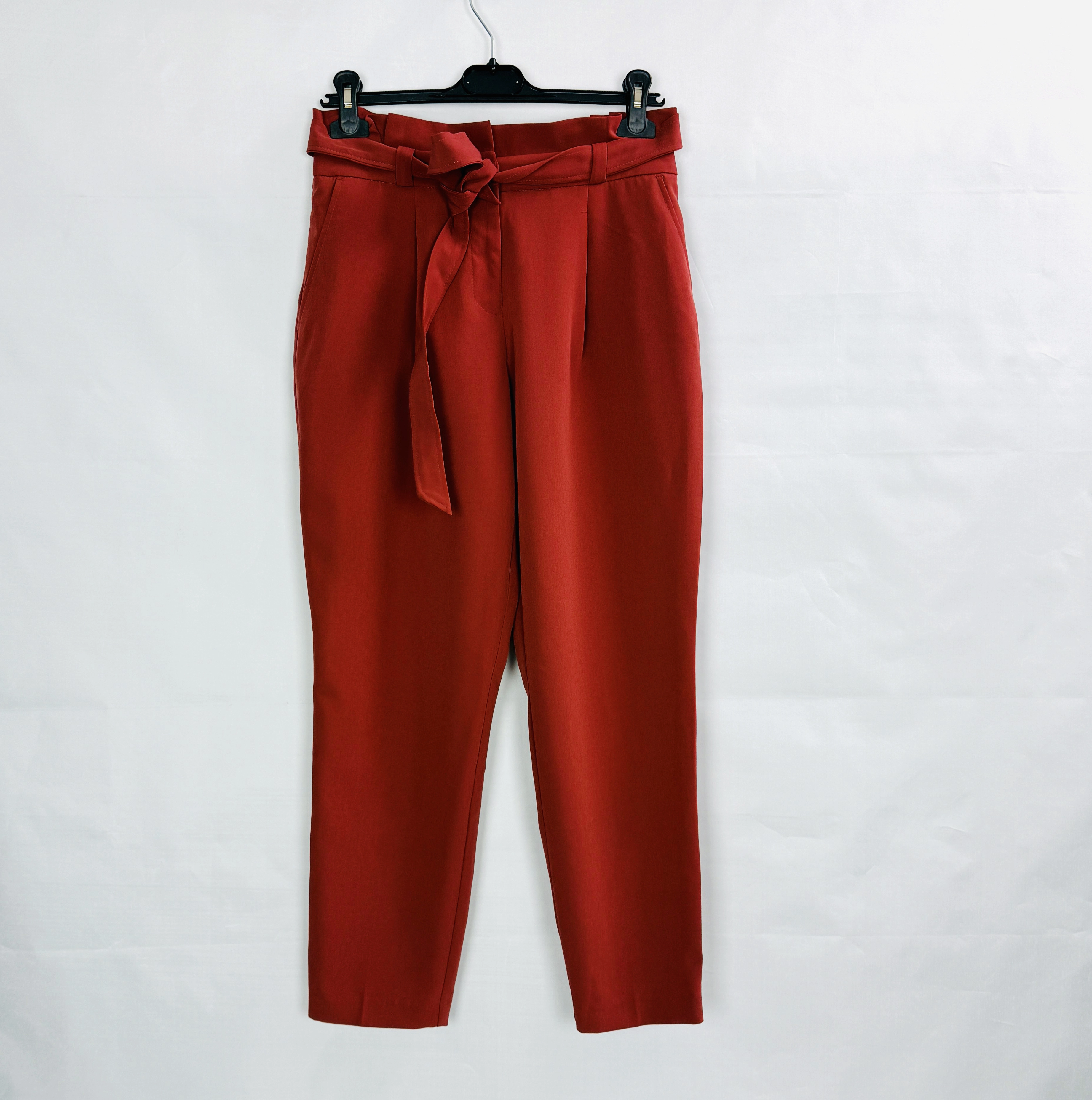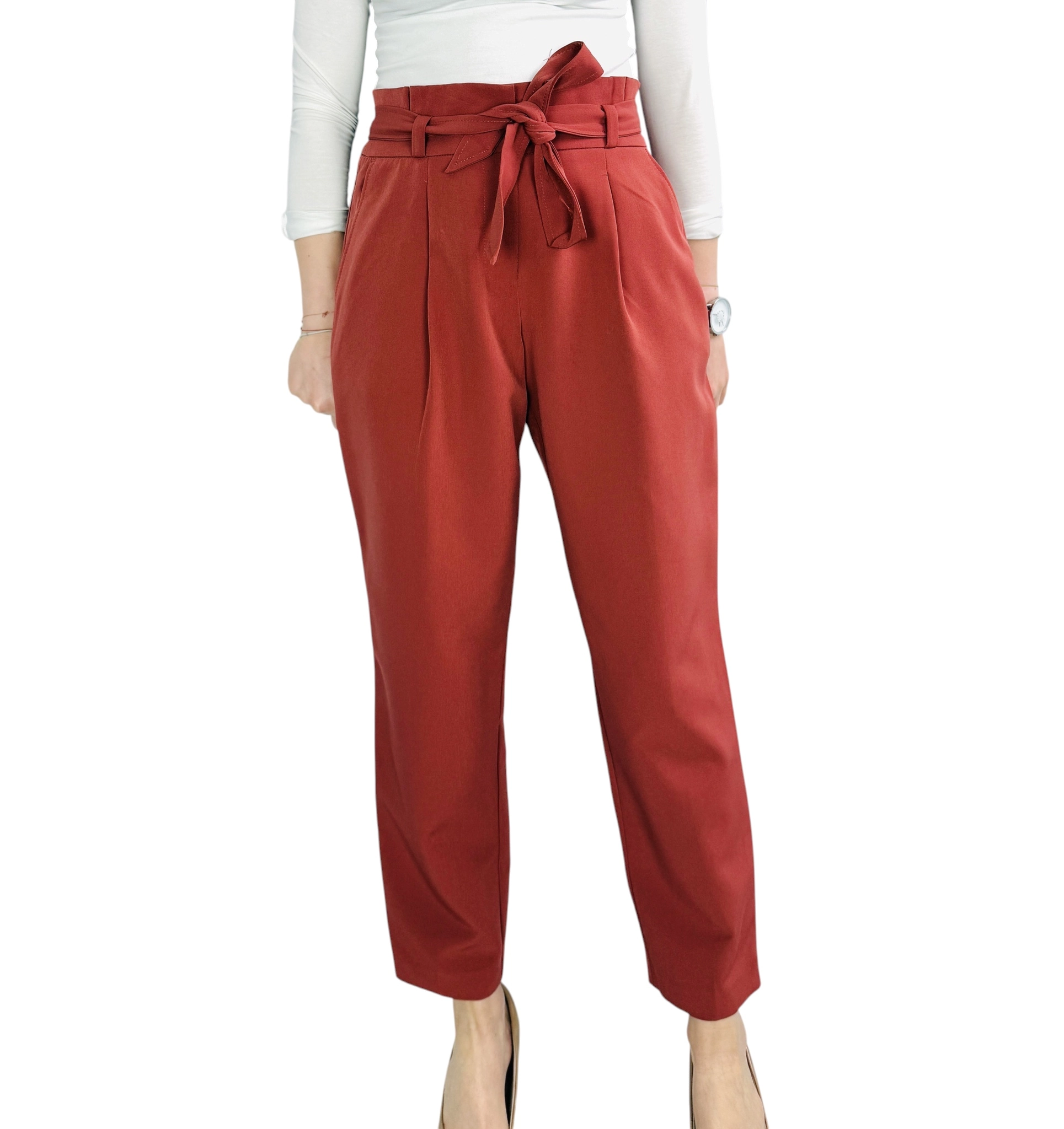 Miedziane spodnie z wysokim stanem i wiązaniem S 36