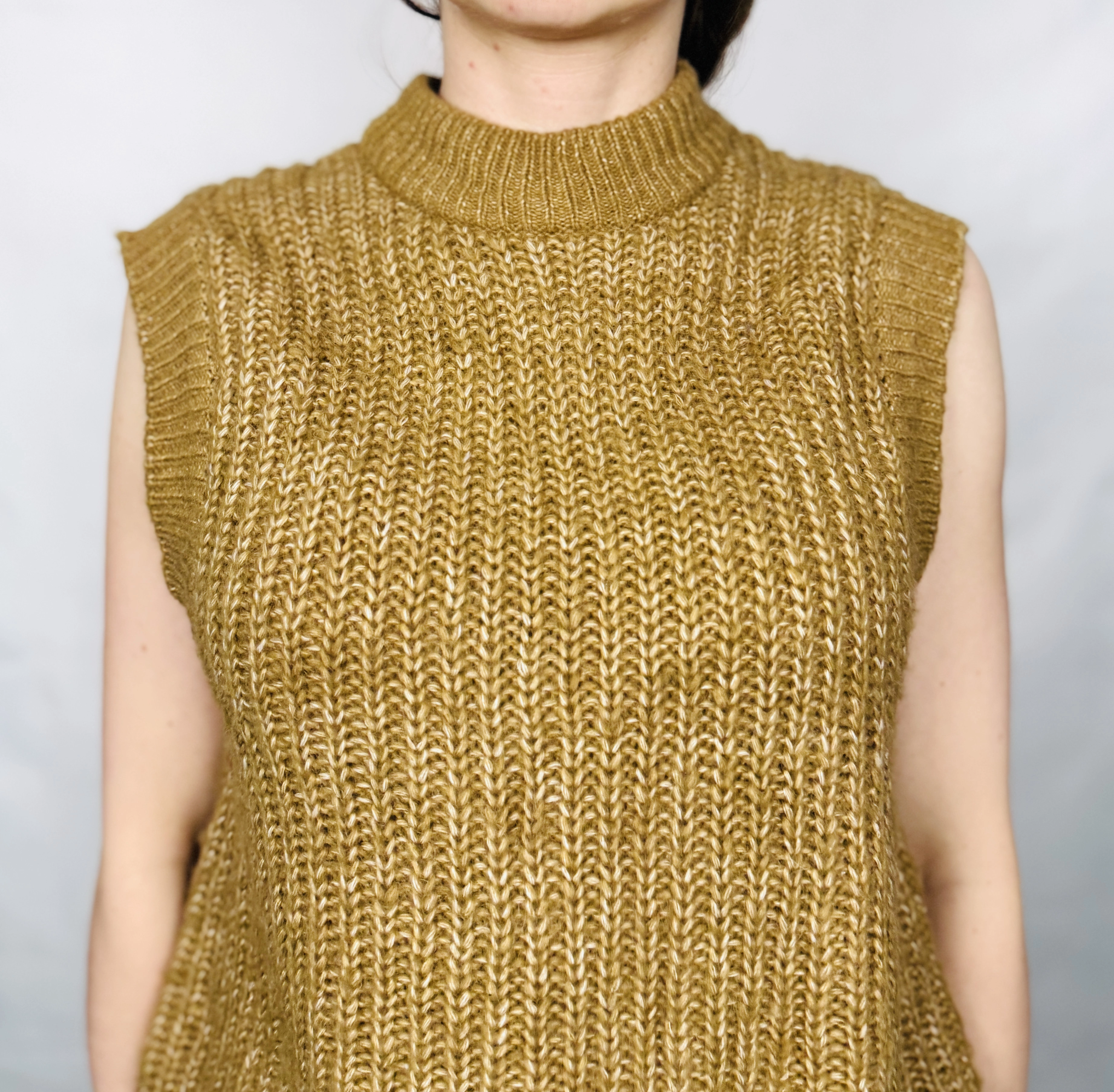 Musztardowa kamizelka z golfem S 36