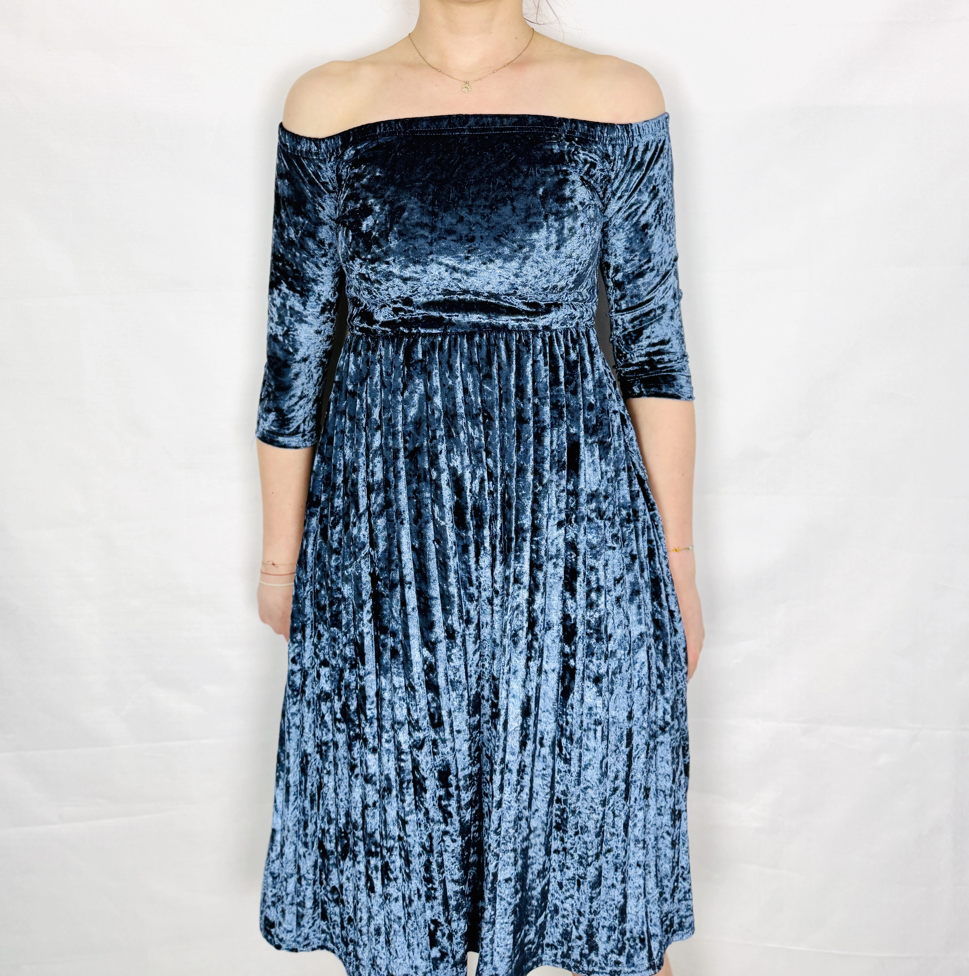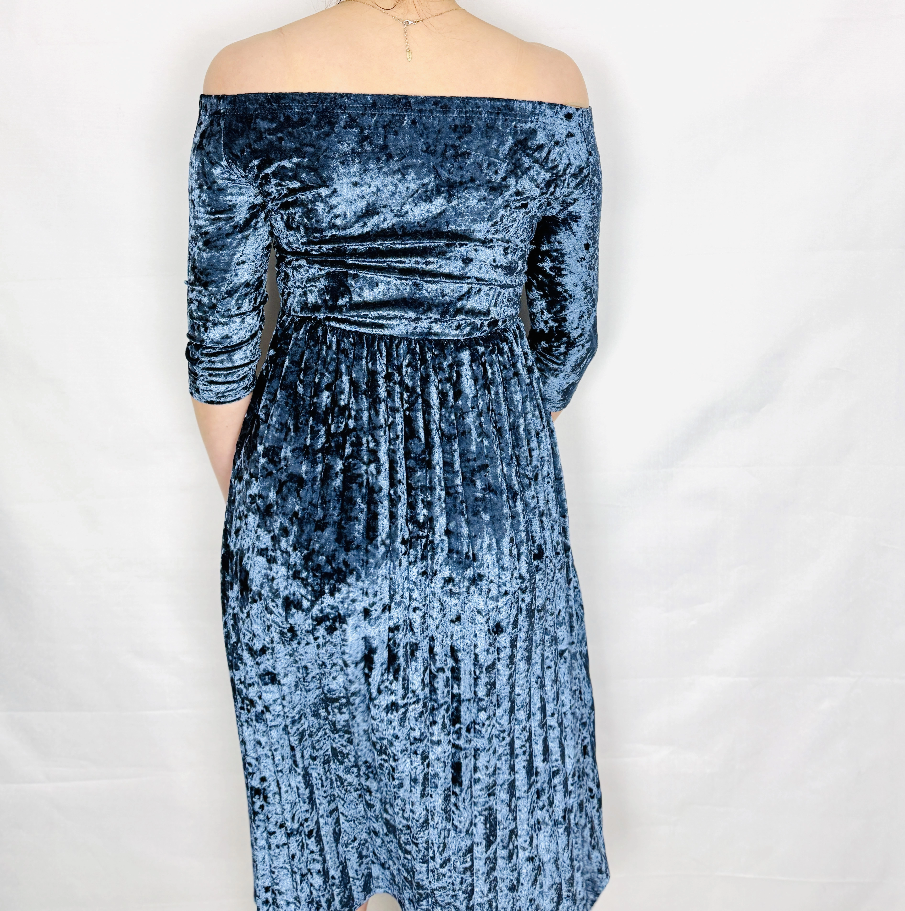 Niebieska sukienka aksamitna hiszpanka XS 34
