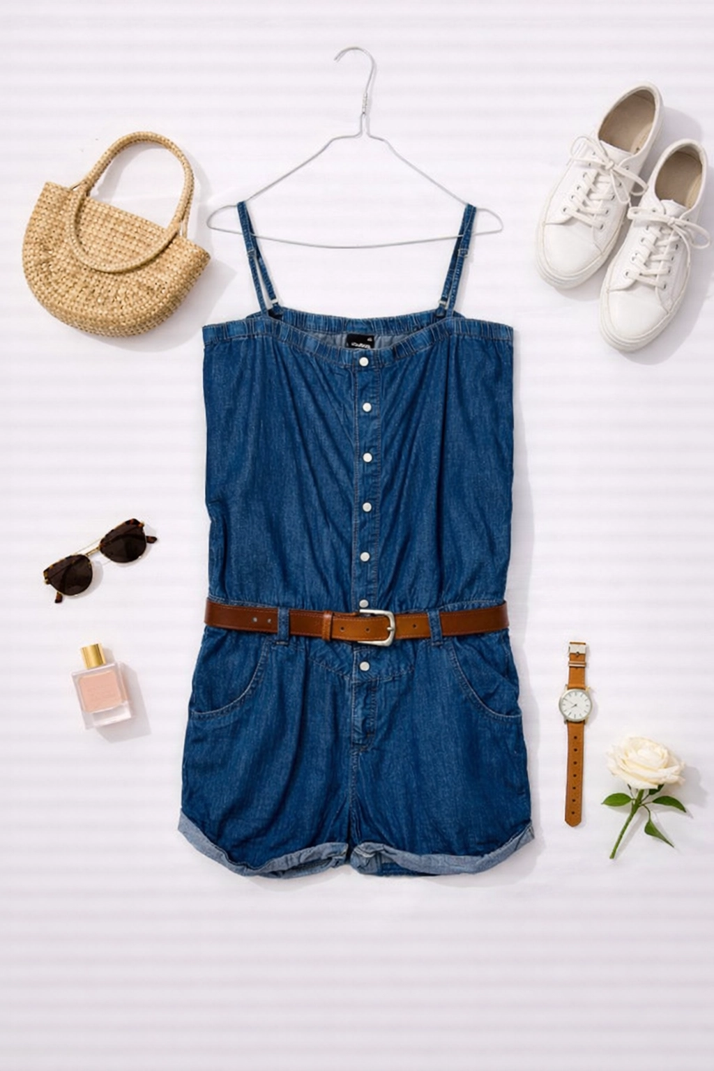 Ten jeansowy kombinezon to idealne połączenie swobodnego stylu i kobiecej lekkości. Klasyczny odcień niebieskiego denimu nadaje mu ponadczasowego charakteru, a całość prezentuje się świeżo i bardzo letnio. To model, który świetnie wpisuje się w codzienne stylizacje, dodając im luzu i naturalnej elegancji.