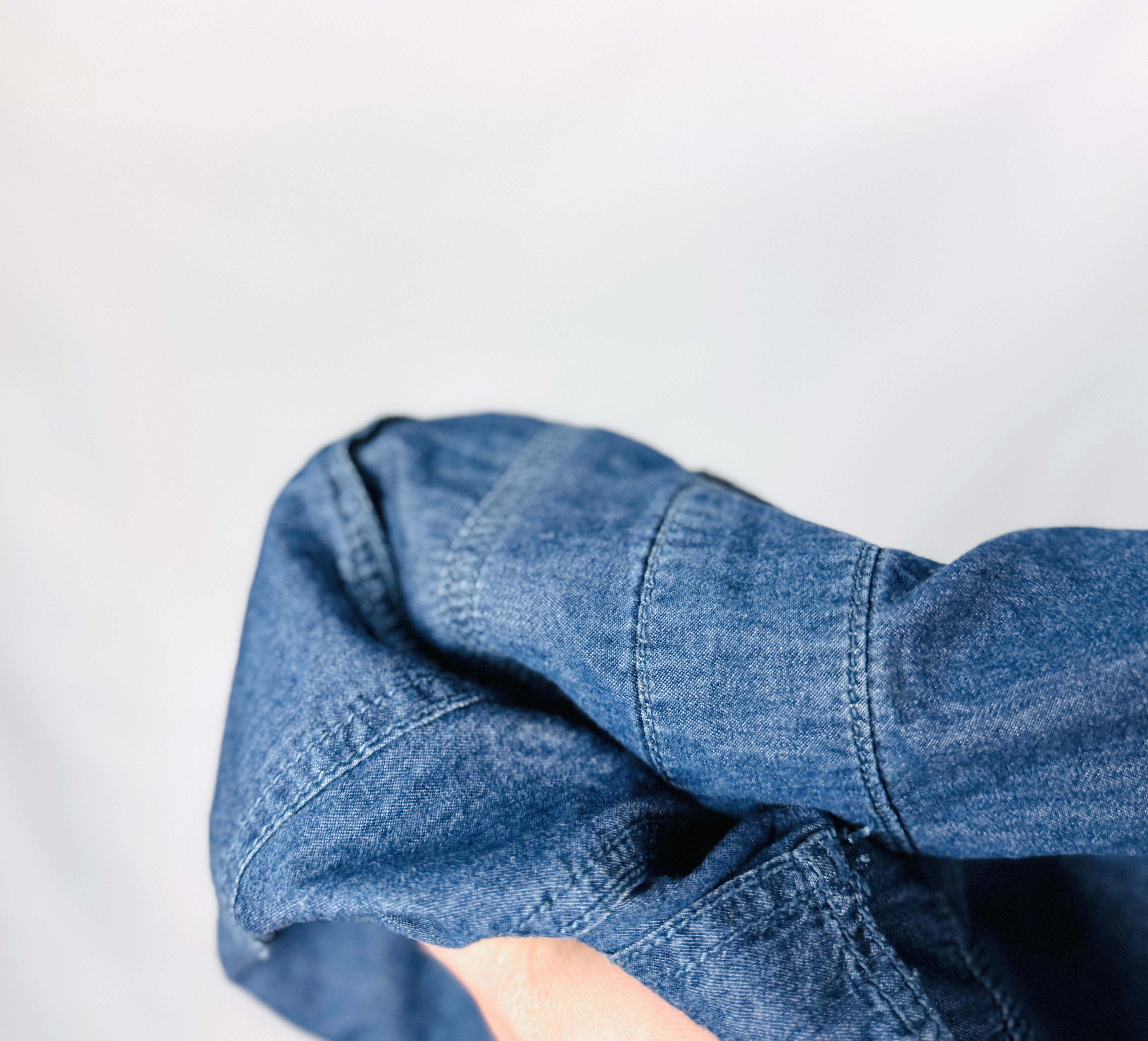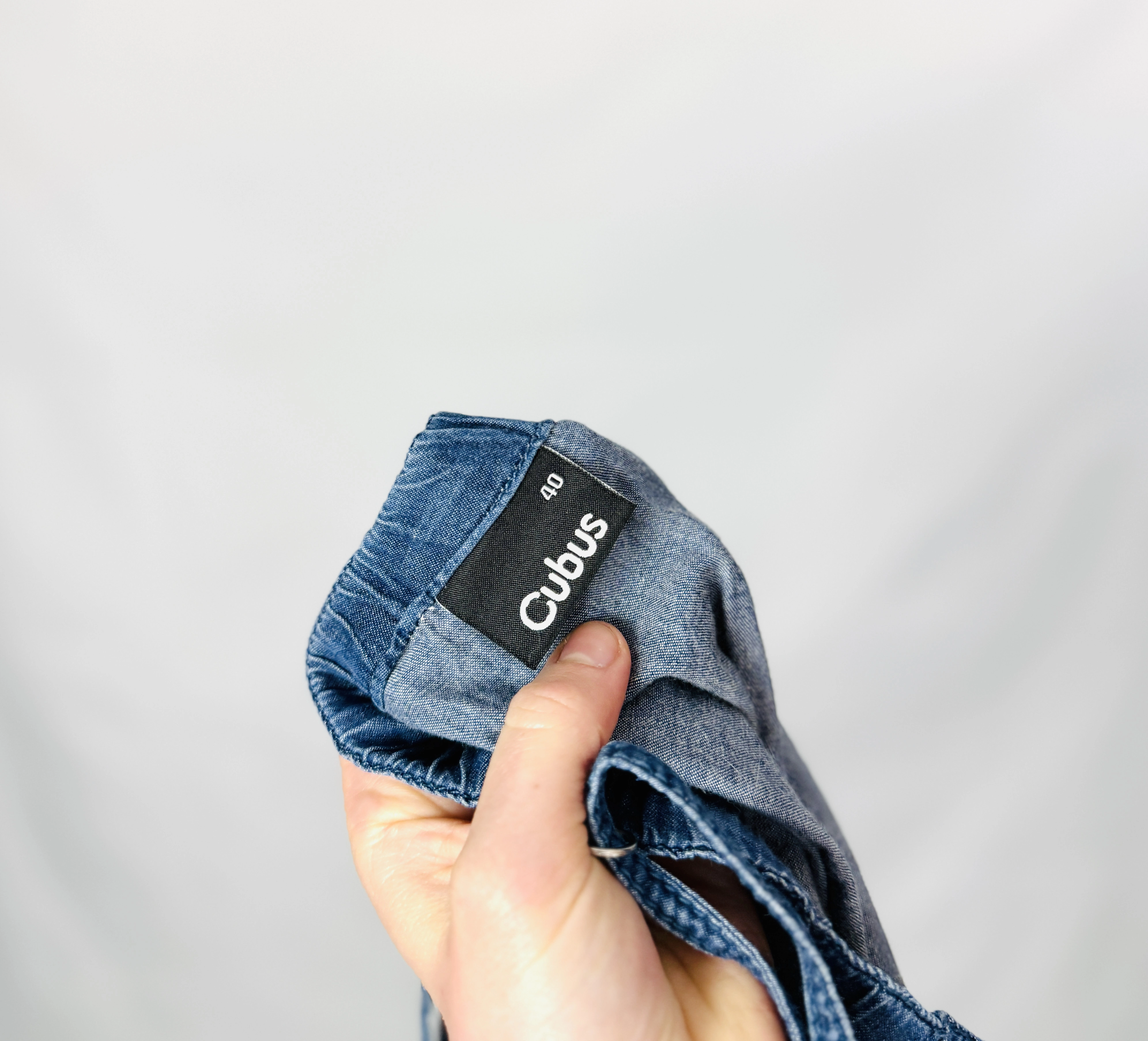 Materiał wygląda na miękki, lekki jak na denim i przyjemnie układający się na ciele, dzięki czemu zapewnia komfort noszenia nawet w cieplejsze dni. Całość sprawia wrażenie wygodnej, a jednocześnie stylowej.