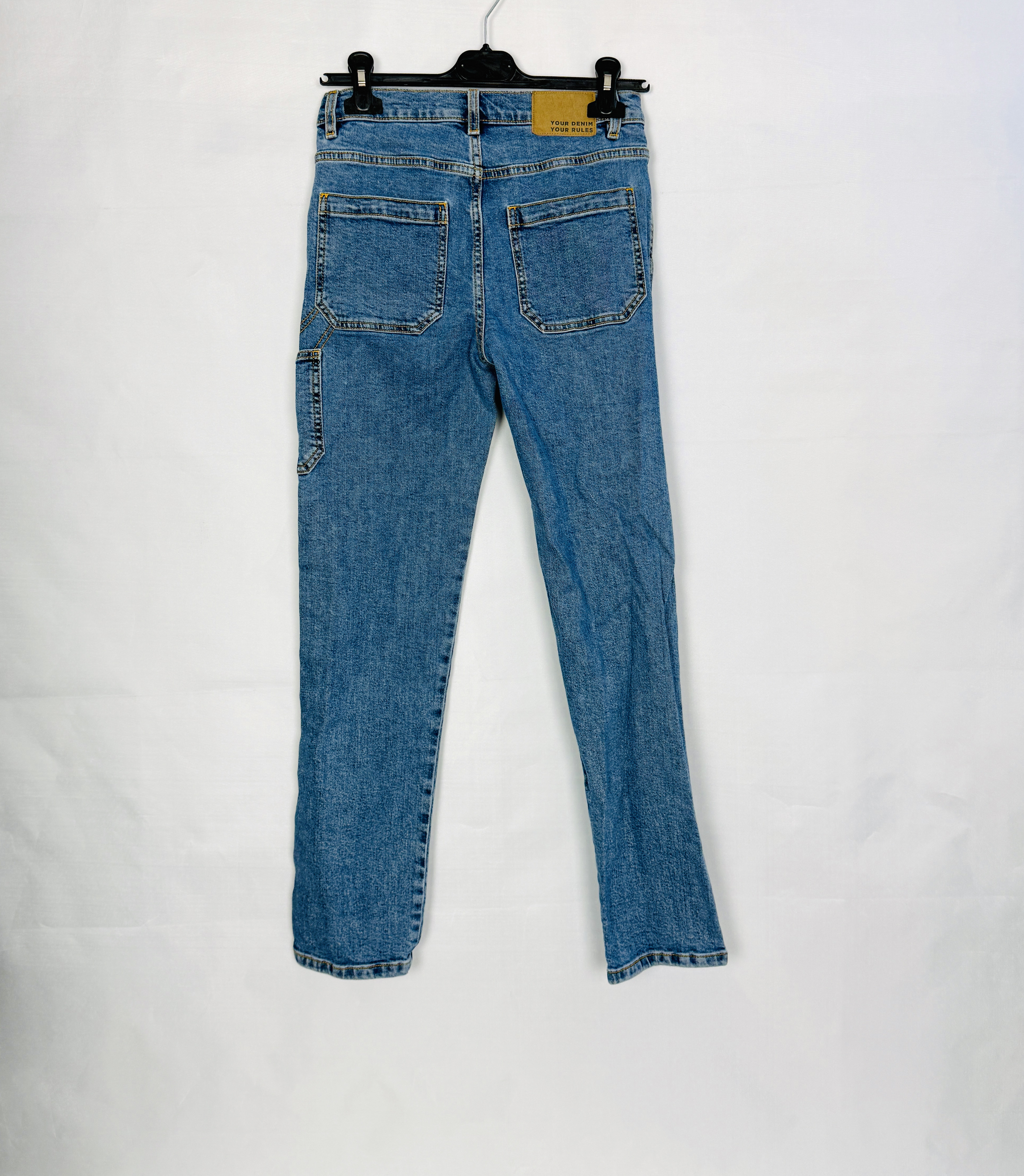 Te jeansy mają swobodny, lekko surowy urok, który łączy w sobie miejską nonszalancję z klasyczną wygodą. Intensywny, nieco sprany odcień niebieskiego nadaje im naturalnego, codziennego charakteru, a prosta forma sprawia, że wyglądają jednocześnie uporządkowanie i autentycznie. To para, która potrafi być bazą neutralną i jednocześnie ciekawym akcentem dzięki dopracowanym detalom.