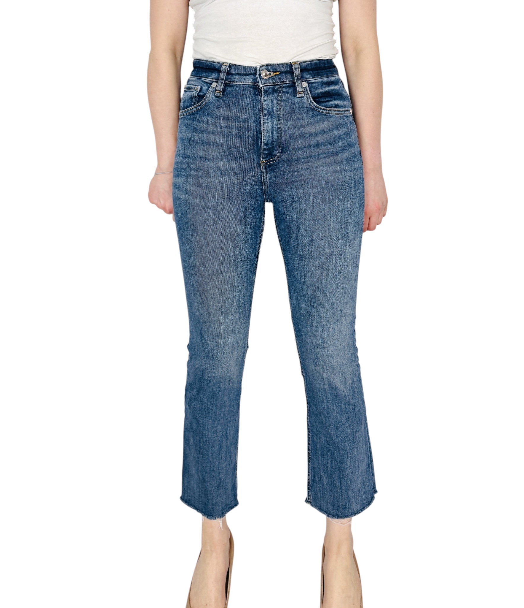 Te jeansy emanują naturalną świeżością i kobiecą lekkością — klasyczny, nieco sprany odcień niebieskiego nadaje im miękkości i swobodnego charakteru, a przemyślany krój łączy codzienny komfort z subtelną elegancją. Model ma w sobie aurę prostoty i jednocześnie wyrafinowania; to spodnie, które potrafią wyglądać zarówno swobodnie, jak i dopracowanie, w zależności od towarzyszących im detali.