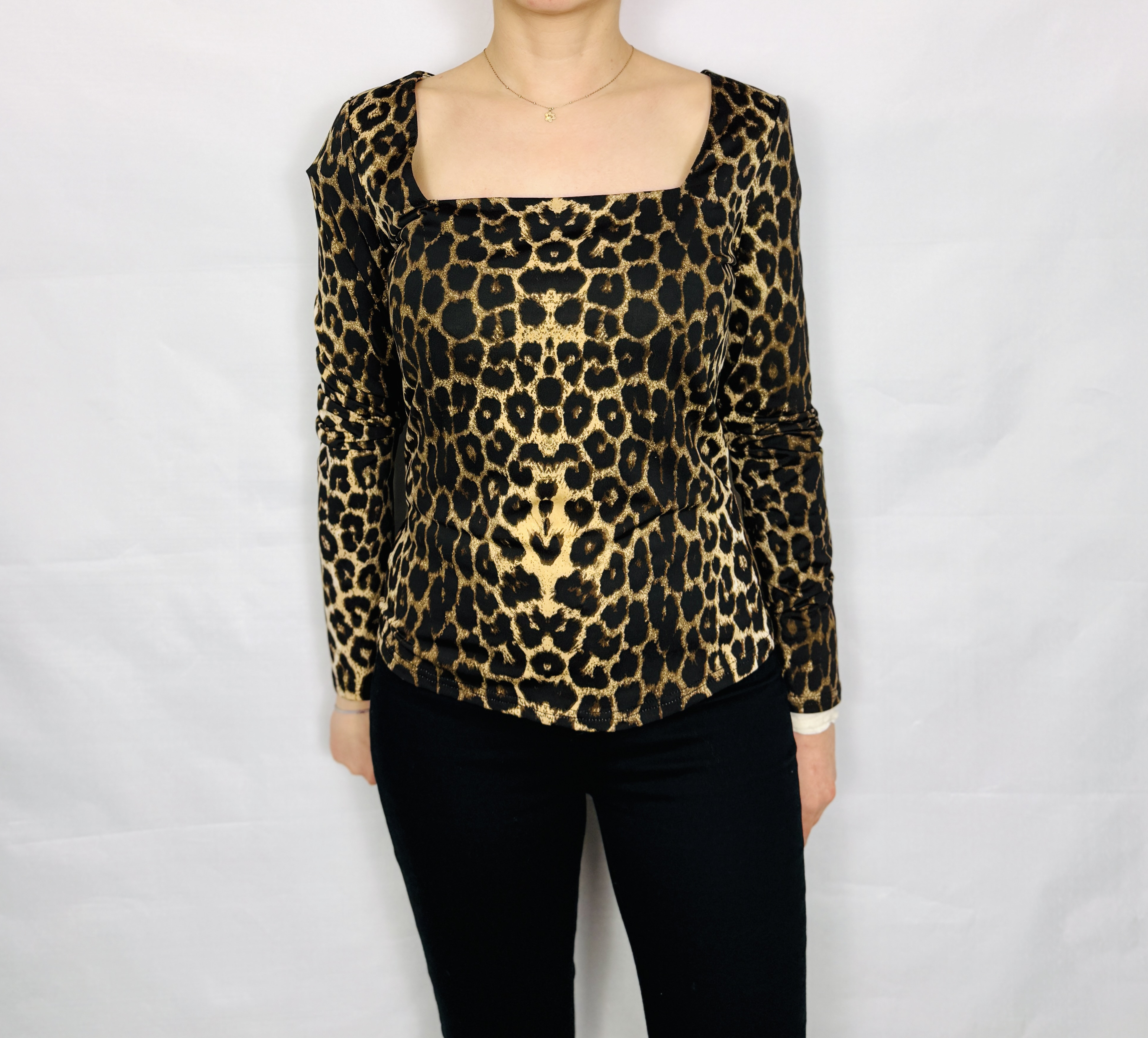 Panterkowa bluzka z kwadratowym dekoltem XL 42