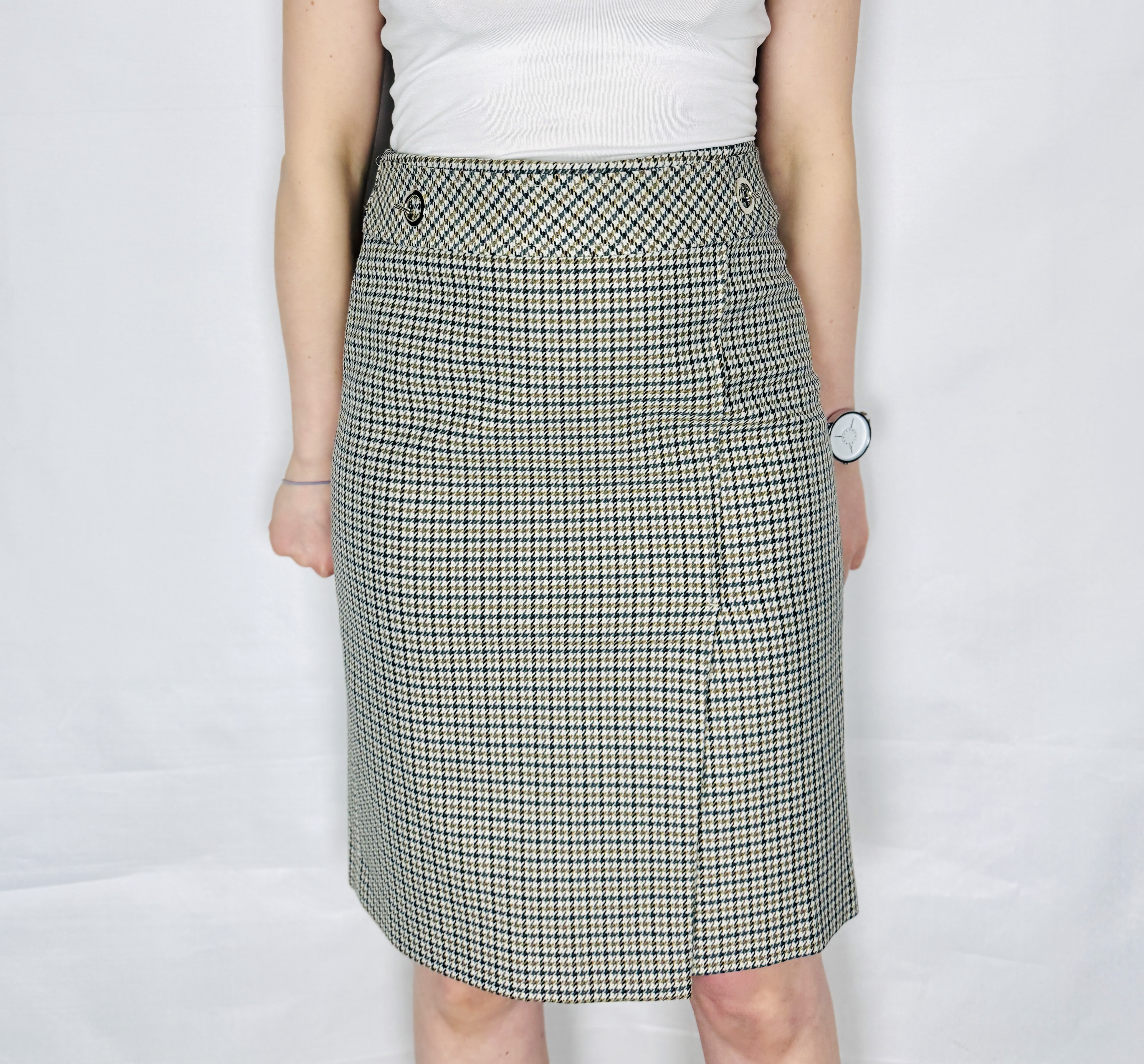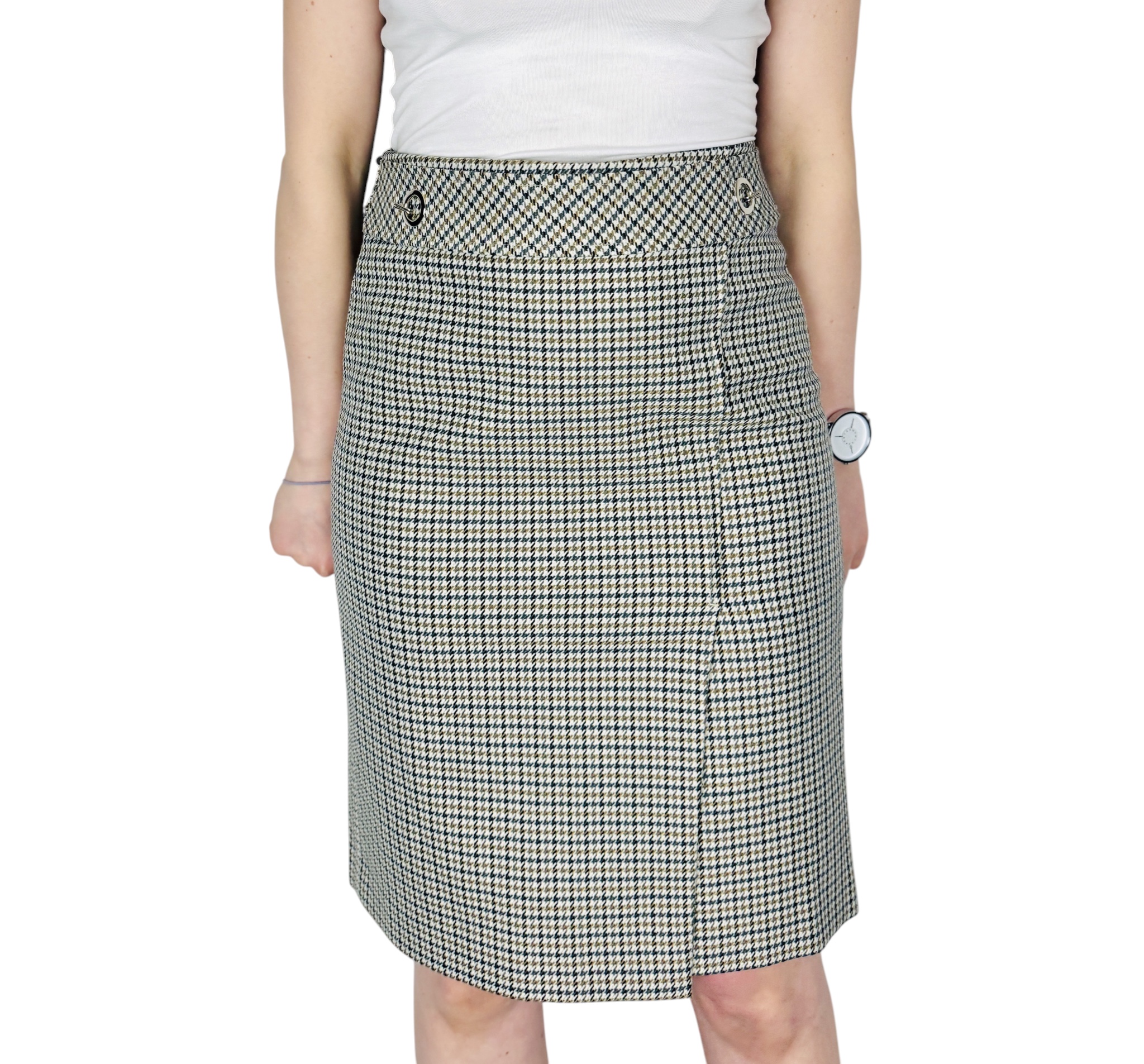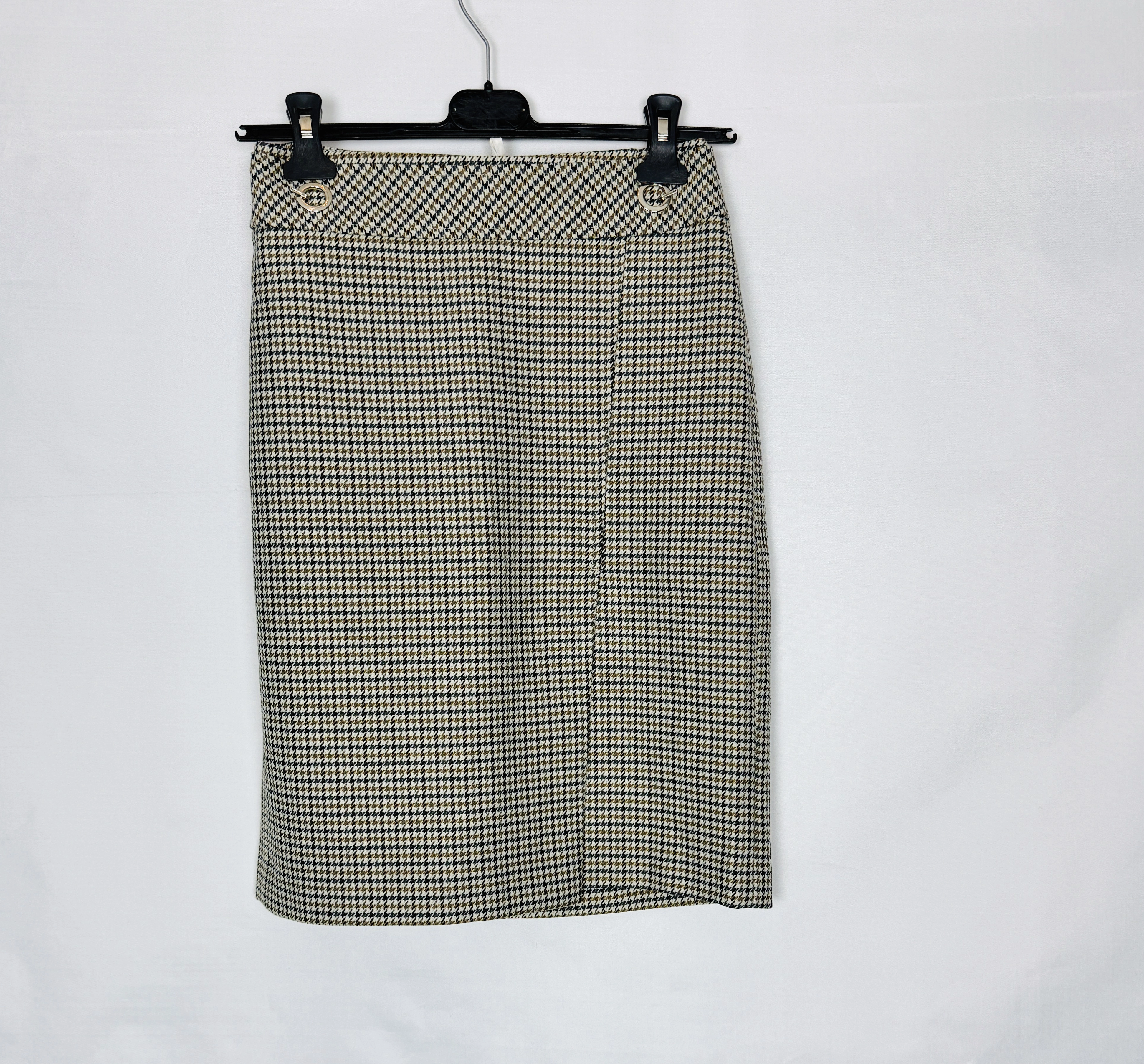 Pepitka spódnica ołówkowa z metalowymi oczkami S 36