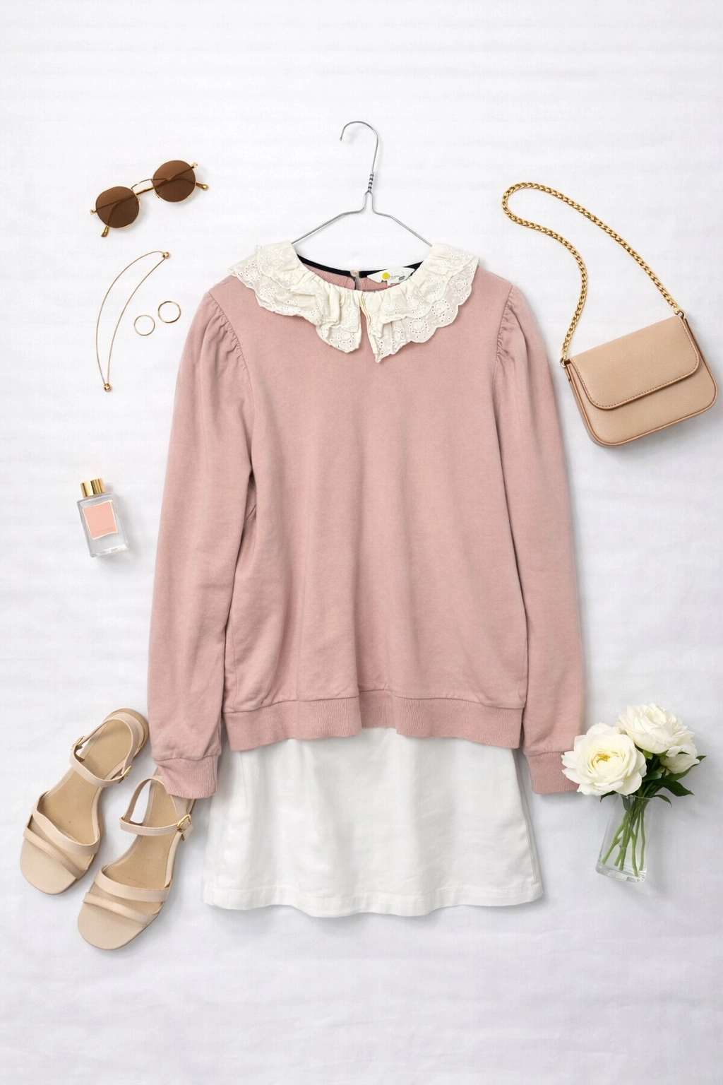 Ta bluza to niezwykle urokliwe połączenie sportowej wygody z romantycznym, dziewczęcym stylem, który od razu przyciąga wzrok swoją oryginalnością. Delikatny, pudrowy odcień różu nadaje całości wyjątkowej miękkości i świeżości, sprawiając, że ubranie prezentuje się bardzo subtelnie i kobieco. To propozycja dla kobiet, które szukają nieoczywistych rozwiązań i chcą wprowadzić do swojej codziennej garderoby element łączący domowy komfort z wyrafinowanym detalem w stylu retro. Bluza emanuje ciepłem i wdziękiem, stanowiąc idealną bazę do tworzenia stylizacji pełnych lekkości i nowoczesnego romantyzmu.