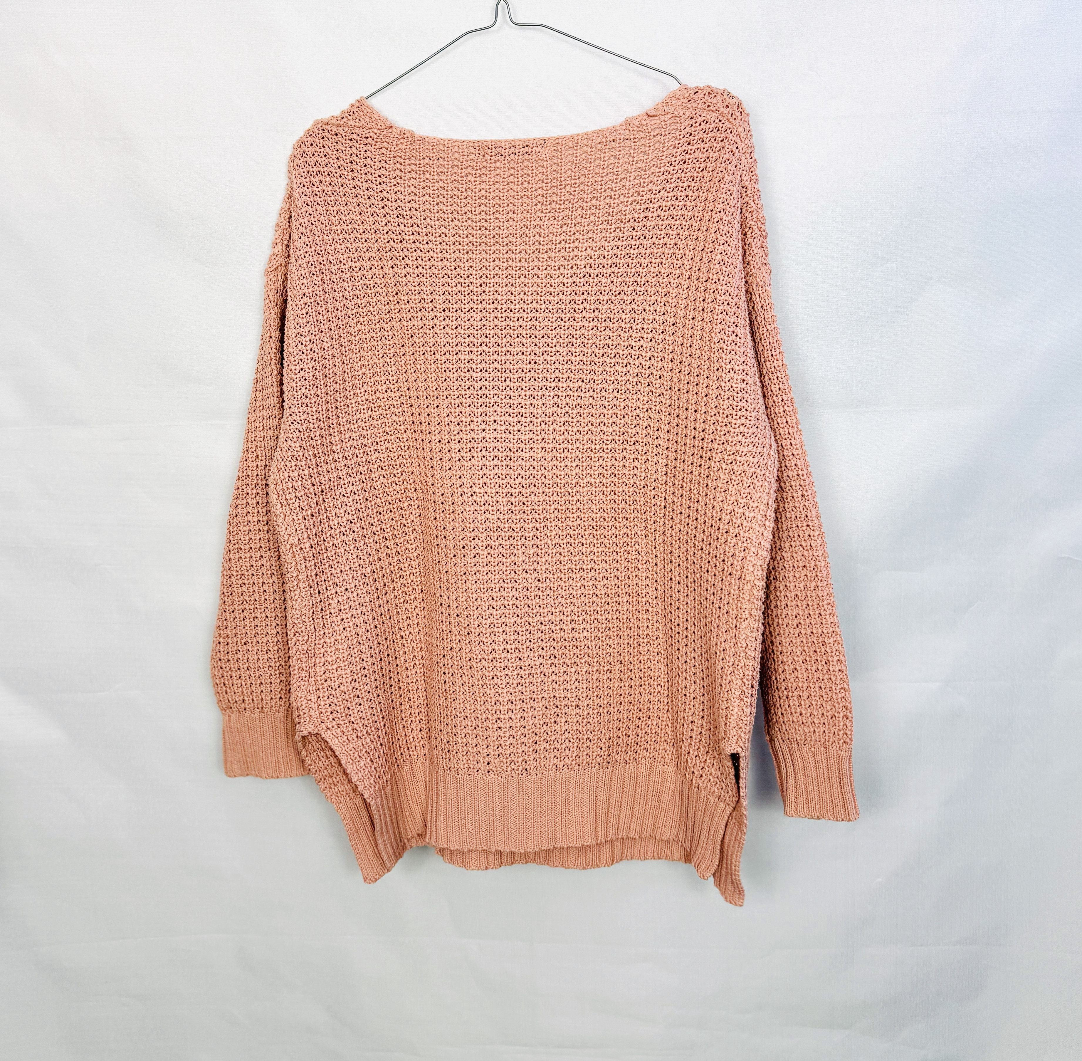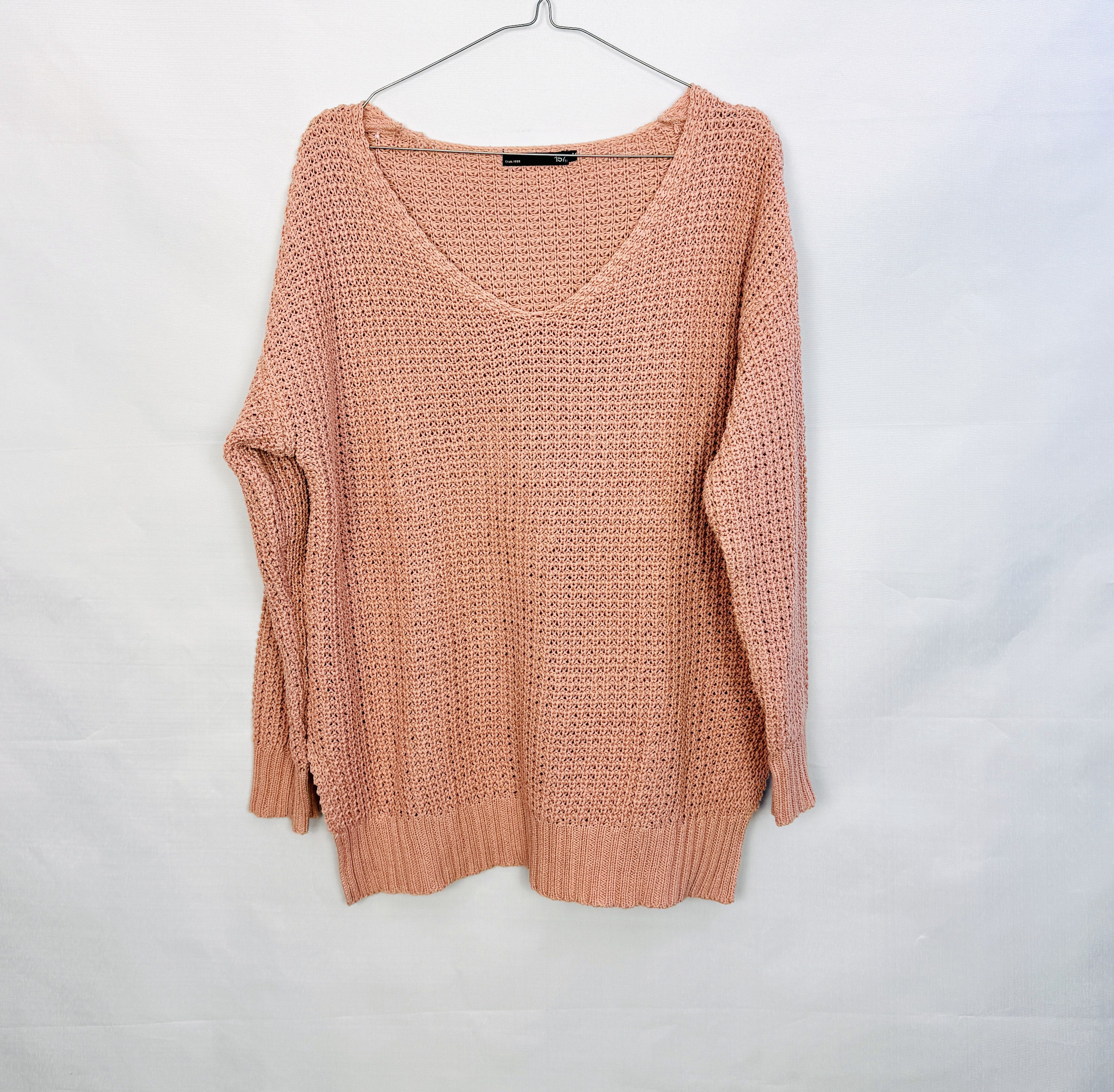Pudrowy sweter w serek oversize M 38