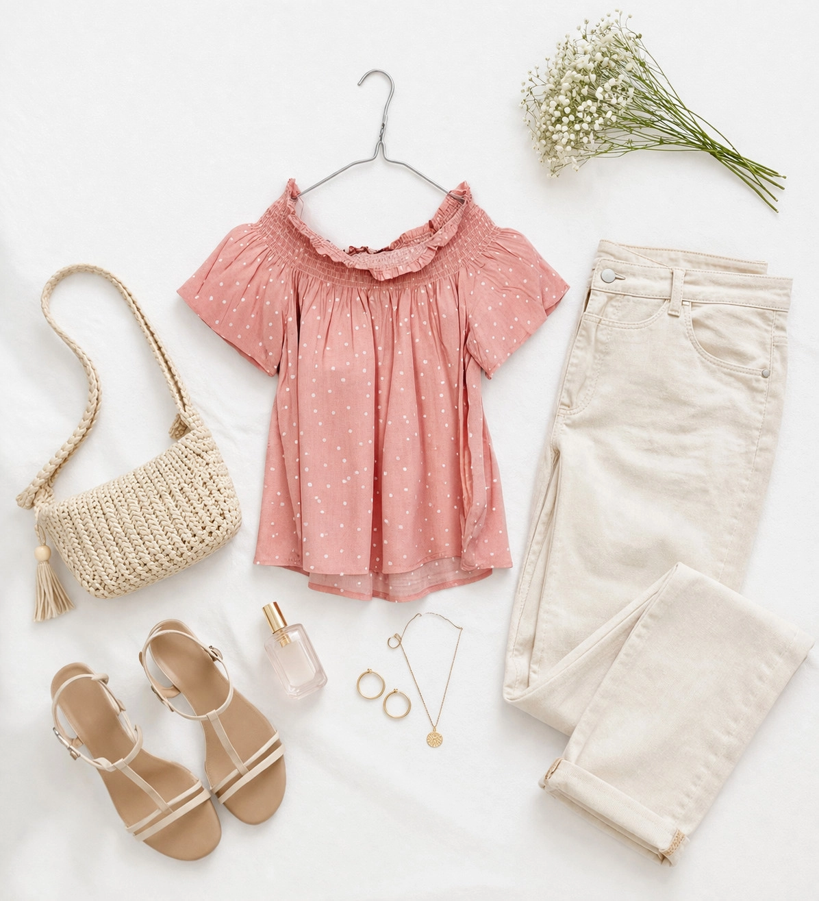 Ta różowa bluzka to kwintesencja kobiecej lekkości i subtelnej elegancji, która wprowadza do garderoby powiew romantyzmu i świeżości. Delikatny, pudrowy odcień różu w połączeniu z klasycznym wzorem białych groszków tworzy kompozycję pełną wdzięku i dziewczęcego uroku. Ubranie emanuje spokojem i delikatnością, a jednocześnie dzięki hiszpańskiemu dekoltowi nabiera zmysłowego charakteru, który doskonale wpisuje się w letnie stylizacje. To propozycja dla kobiet, które cenią sobie modę z duszą, łączącą klasykę z finezją detali i komfortem noszenia.