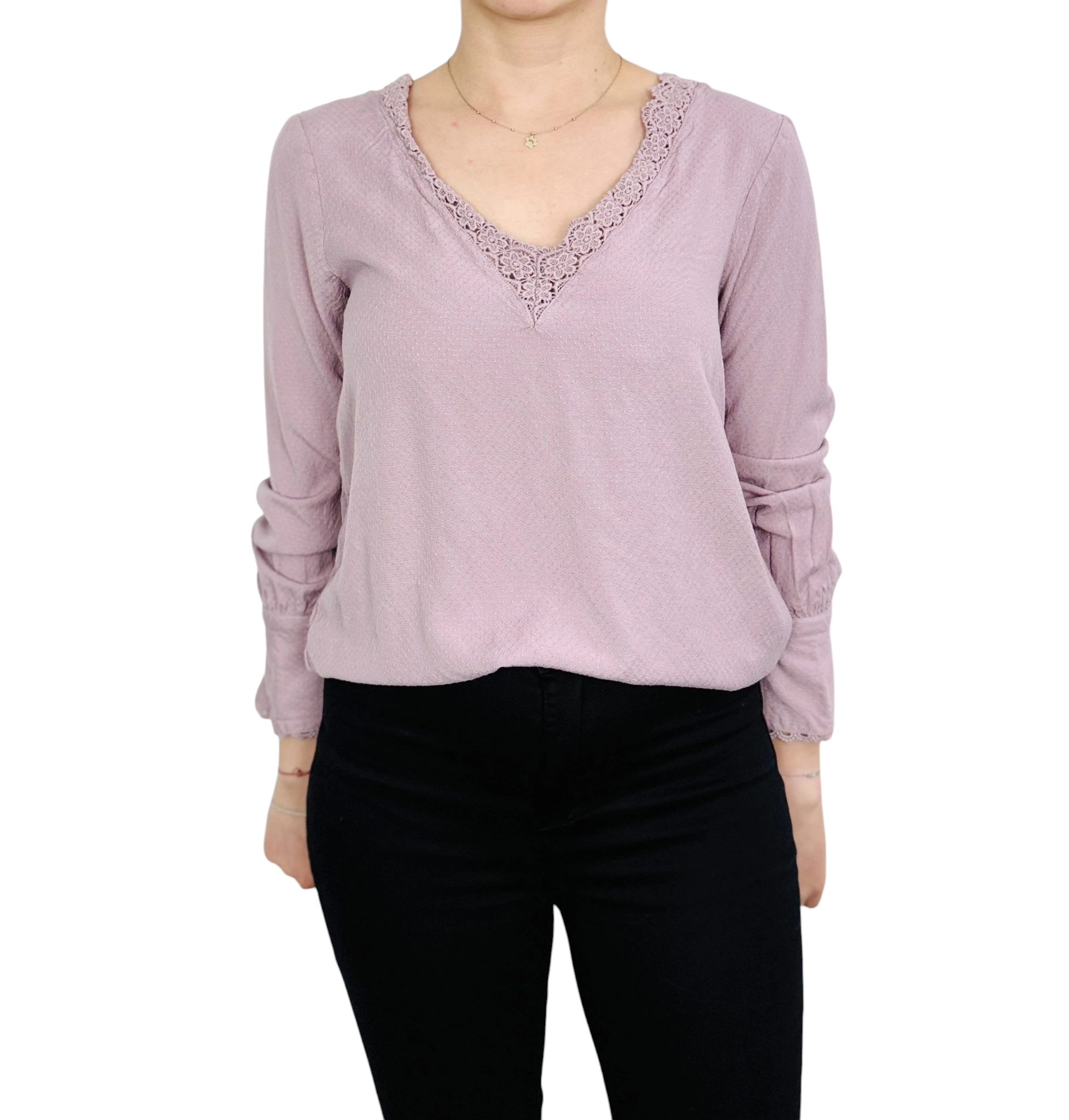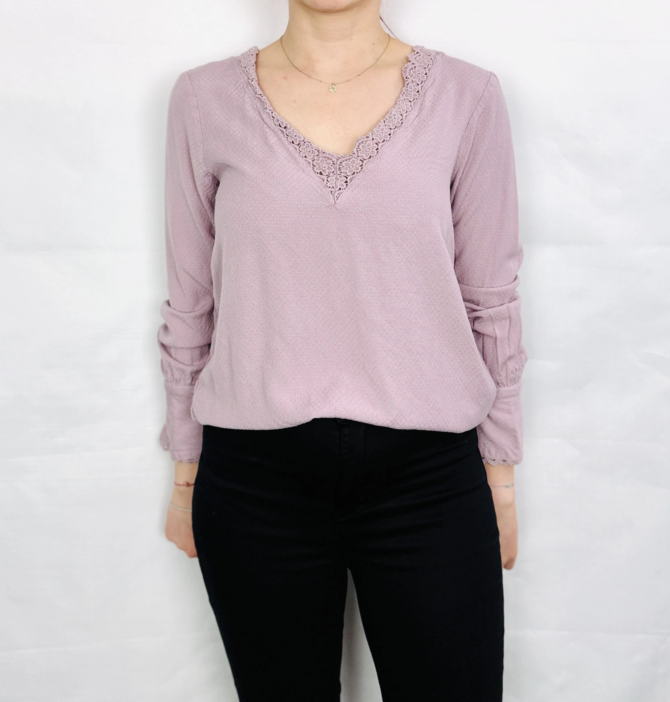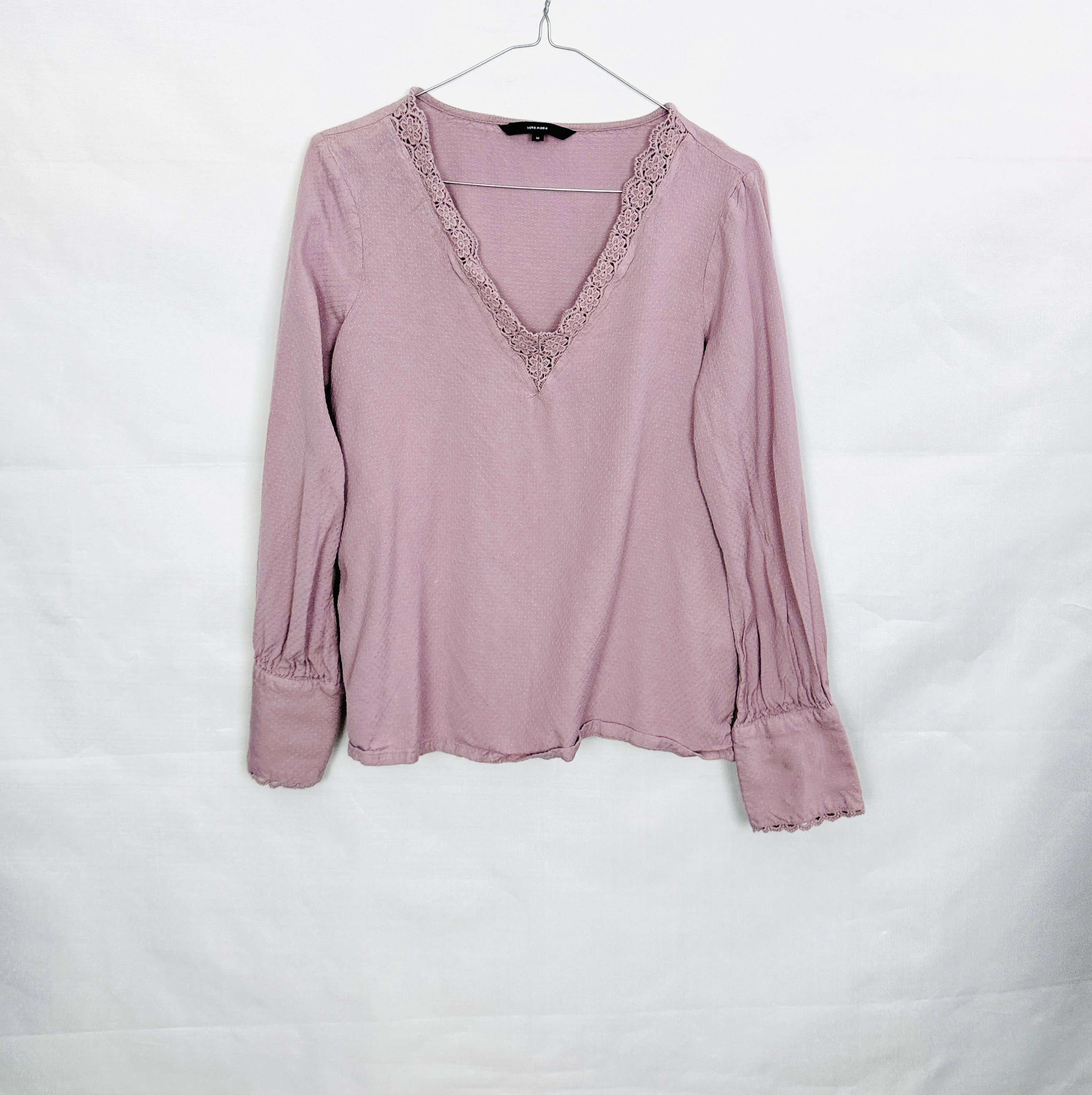 Różowa bluzka z koronkowym dekoltem w serek M 38