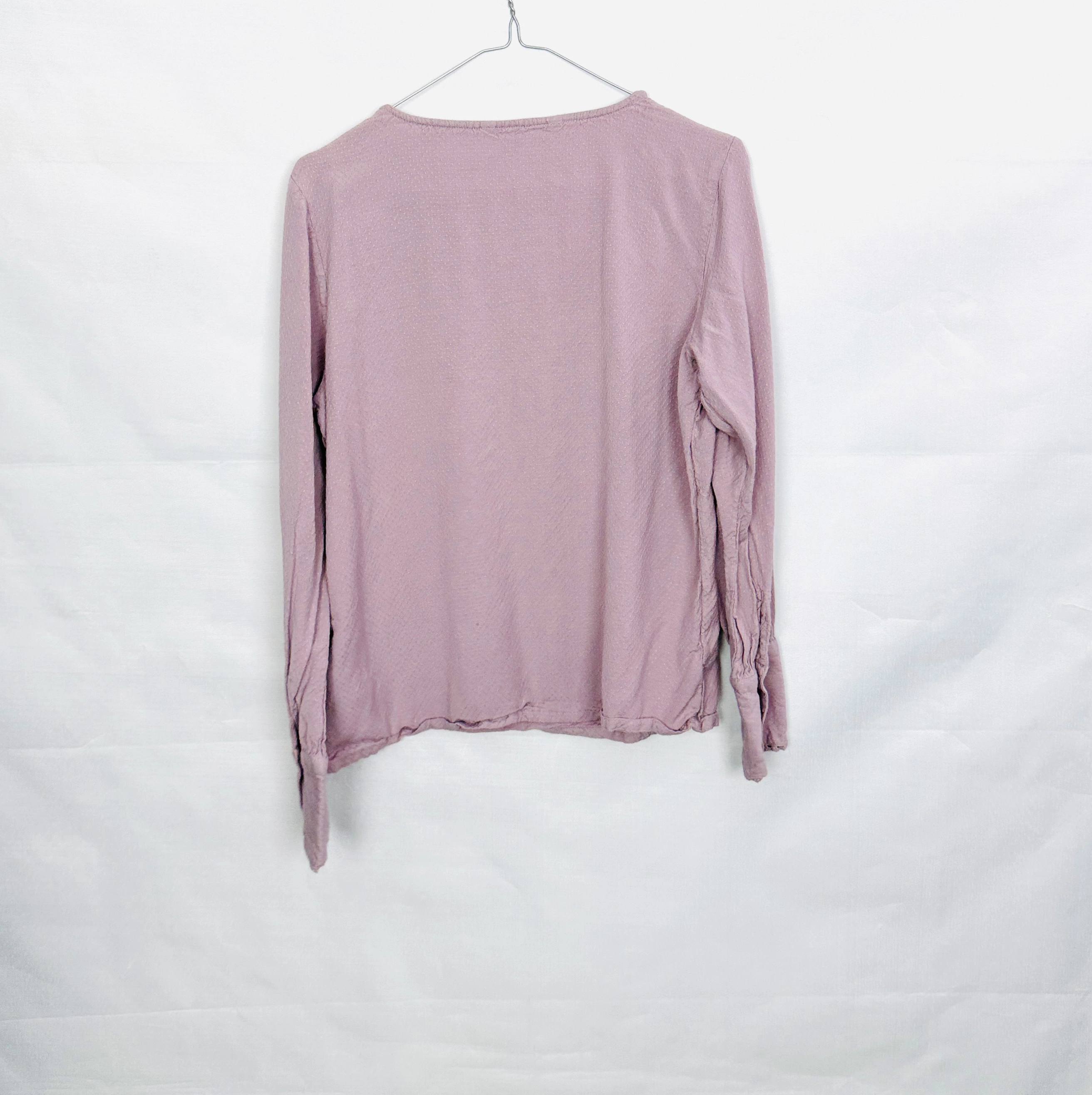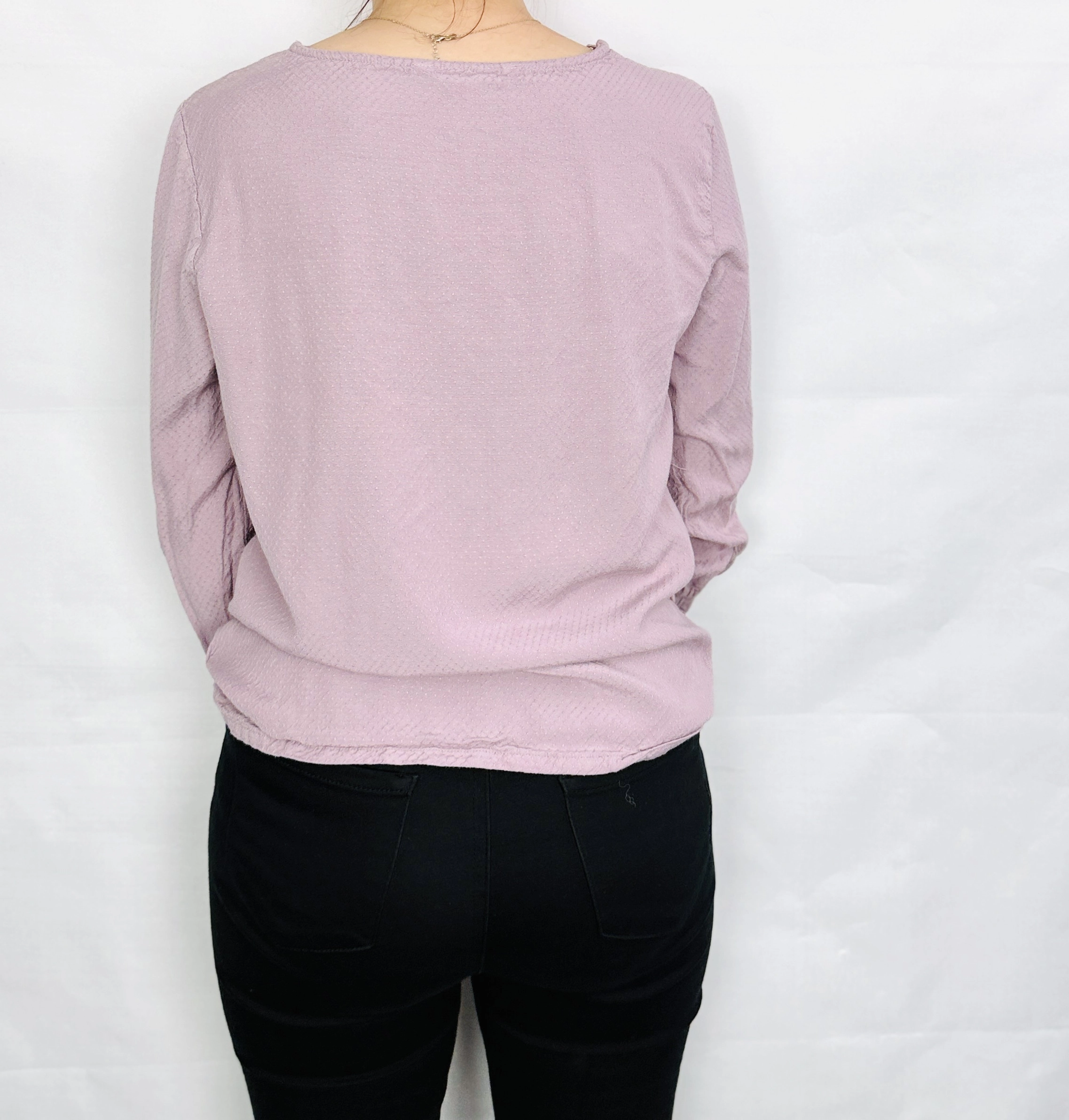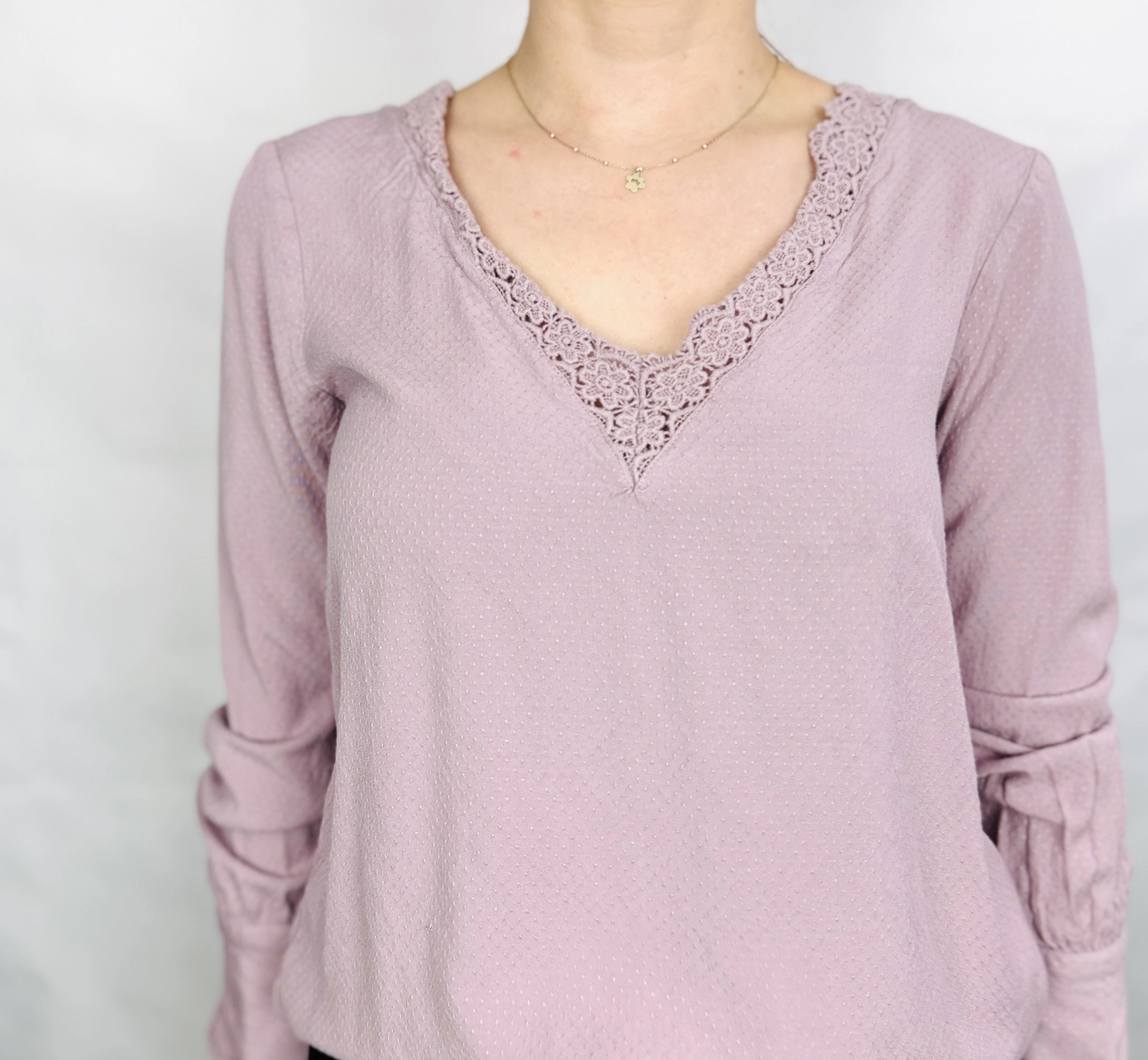 Ta bluzka w odcieniu przygaszonego fioletu i brudnego różu to kwintesencja subtelnej kobiecości oraz romantycznego szyku, który w nienachalny sposób podkreśla naturalny urok sylwetki. Jej unikalny, pastelowy kolor emanuje spokojem i szlachetnością, sprawiając, że ubranie to pięknie rozświetla cerę, nadając jej świeżego i wypoczętego wyglądu. To idealna propozycja dla kobiet, które w modzie szukają balansu między codzienną wygodą a wyrafinowanym detalem, budującym stylizacje pełne lekkości i klasy.