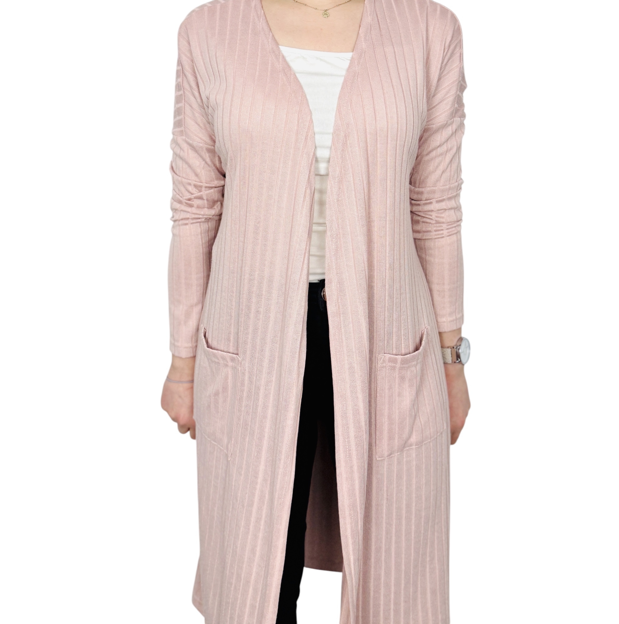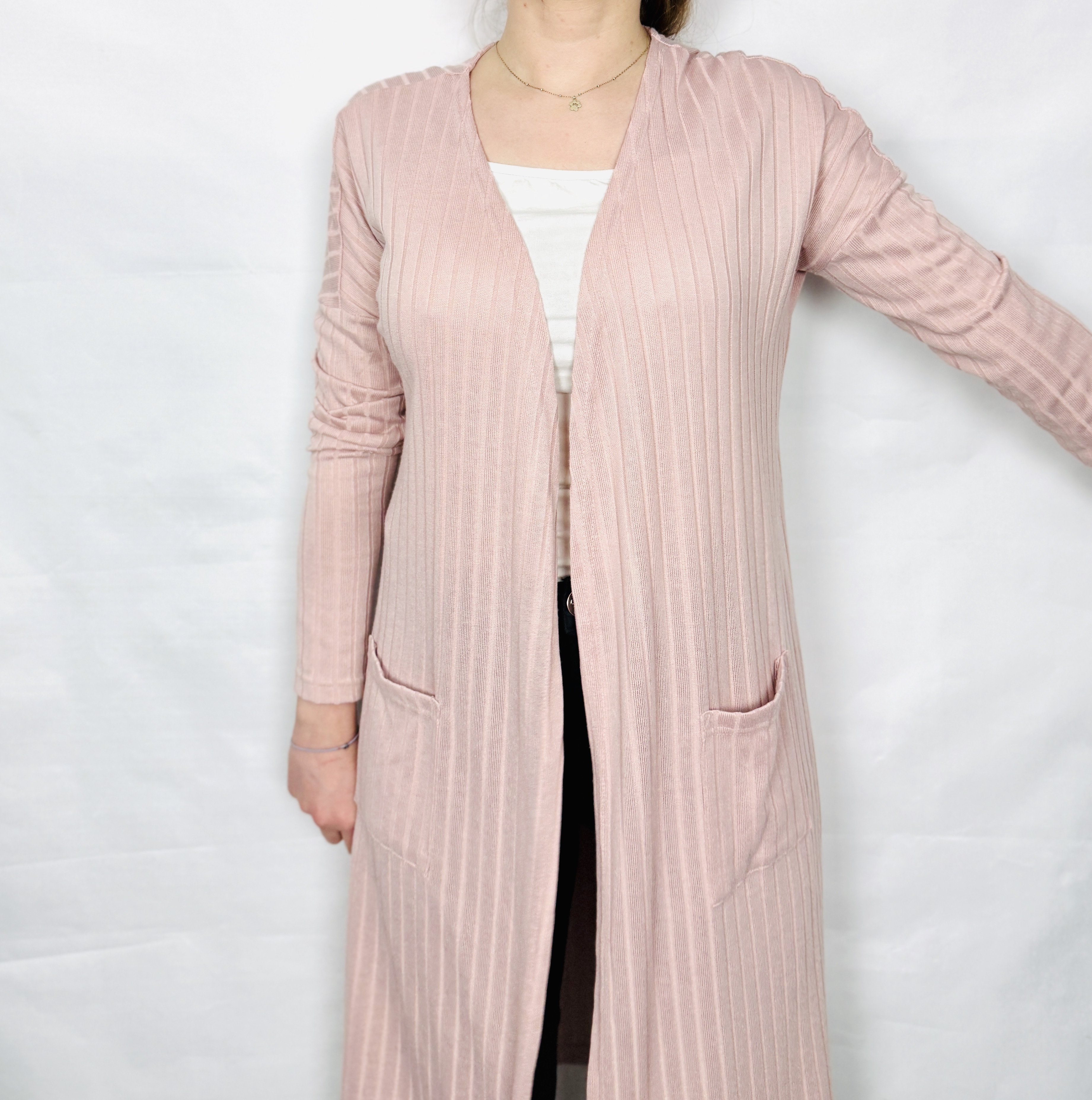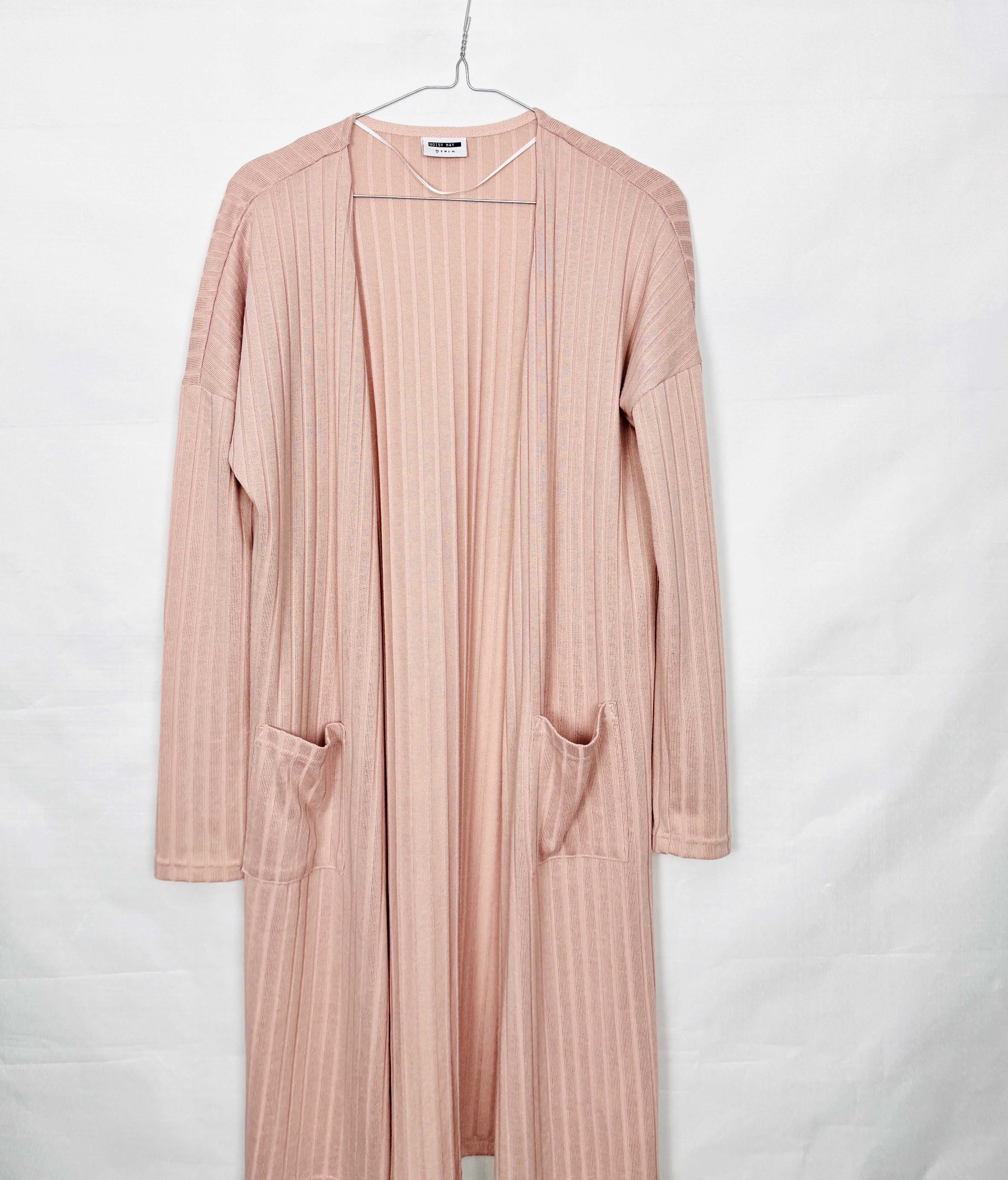Różowa długa narzutka prążkowana XS 34