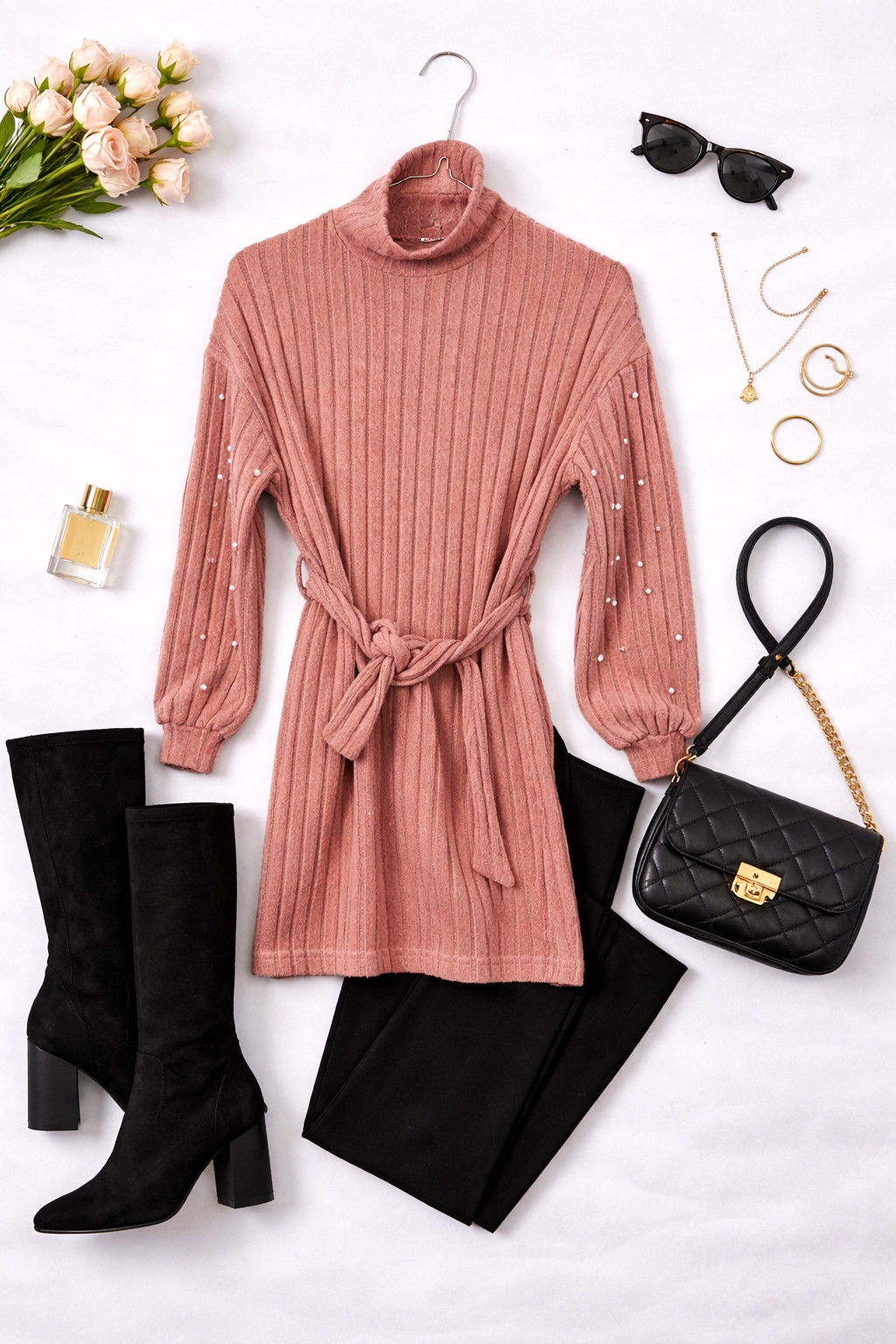 W stylizacjach warto łączyć tunikę z dopasowanymi spodniami lub legginsami oraz z botkami na niski lub średni obcas dla codziennego, przytulnego looku; z eleganckimi cygaretkami i czółenkami zyskasz bardziej formalną odsłonę do biura, a z długimi kozakami stworzysz kobiecy zestaw na chłodniejsze wieczory. Różowy kolor pięknie współgra z neutralnymi tonacjami: kremem, beżem, camel oraz z klasyczną czernią i ciemnym denimem; delikatna biżuteria i prosta torebka dopełnią romantyczny, a jednocześnie nowoczesny charakter tej tuniki.