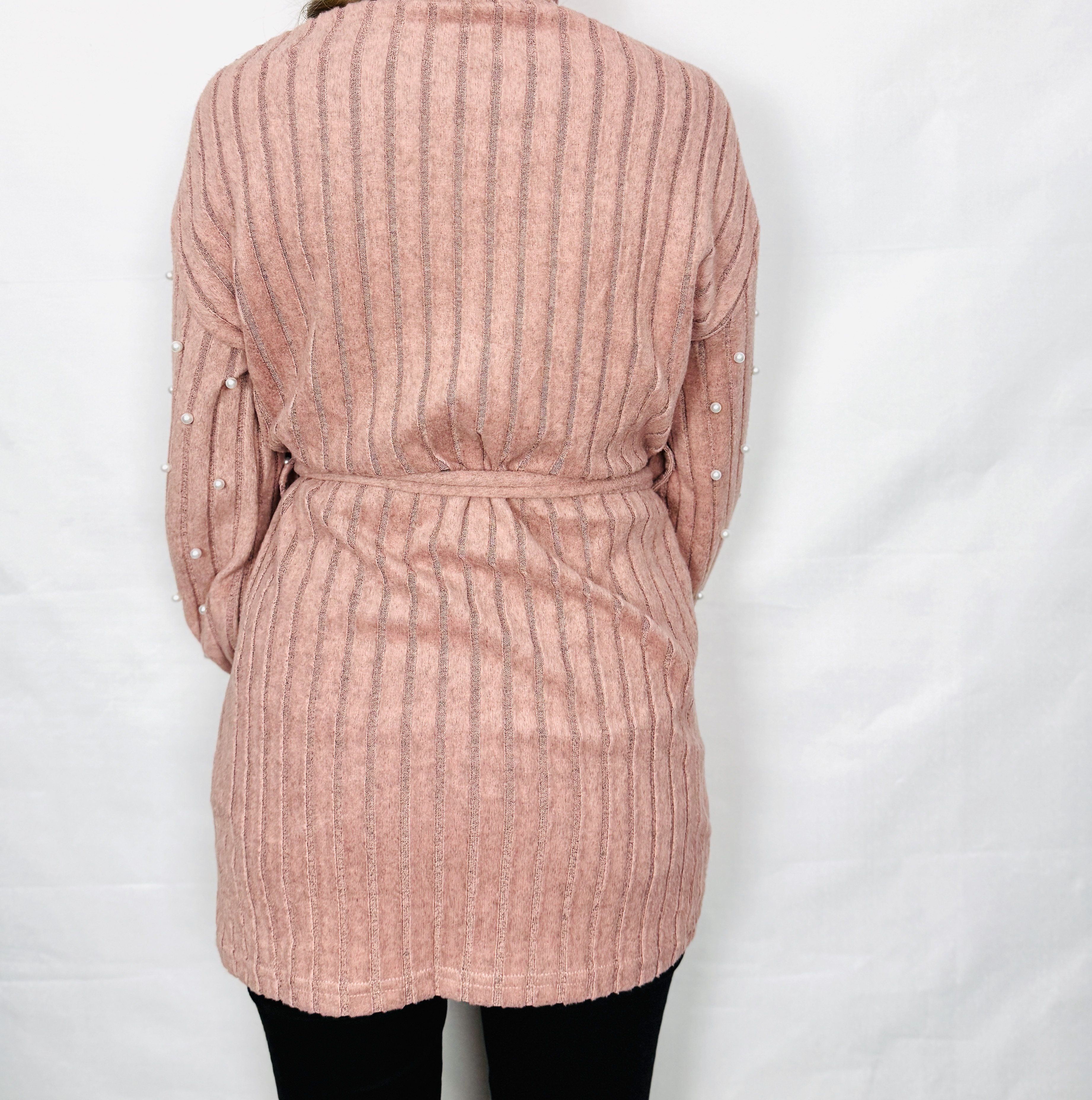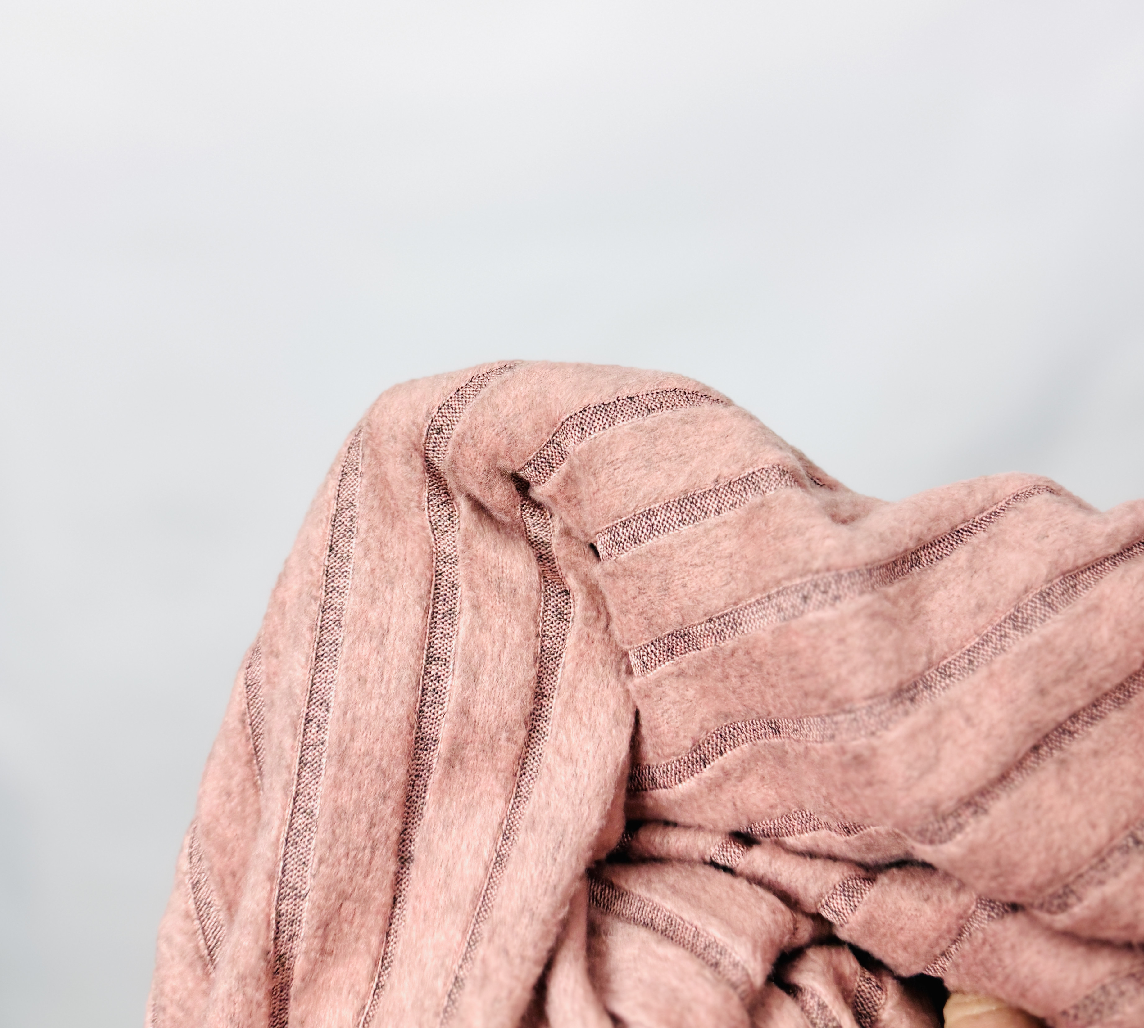 To subtelna i kobieca tunika, która łączy przytulny charakter z delikatnym, eleganckim akcentem. Ciepły, różowy odcień emanuje łagodnością, a pionowe prążkowanie nadaje formie uporządkowaną, wysmuklającą linię. Całość sprawia wrażenie przemyślanej prostoty z nutą romantyzmu — idealna na chłodniejsze dni, kiedy chcesz poczuć się otulona, a jednocześnie zachować elegancki, kobiecy wyraz.