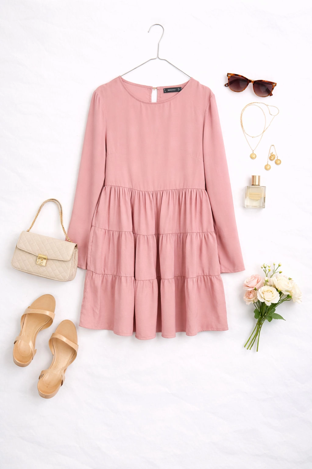 W kwestii stylizacji różowa sukienka z falbanami oferuje mnóstwo inspirujących możliwości. Na co dzień stworzy bezbłędny i uroczy zestaw z białymi trampkami lub balerinkami, co podkreśli jej swobodny charakter. Do pracy można zestawić ją z eleganckimi botkami i klasyczną torebką, nadając stylizacji bardziej uporządkowanego wyrazu. Przygaszony róż przepięknie komponuje się z bielą, szarością, beżem oraz wszelkimi odcieniami denimu. Na popołudniowe spotkanie czy rodzinną uroczystość sukienka zaprezentuje się zjawiskowo z delikatną biżuterią, tworząc look pełen klasy i kobiecego ciepła, który z pewnością przyciągnie wiele komplementów.